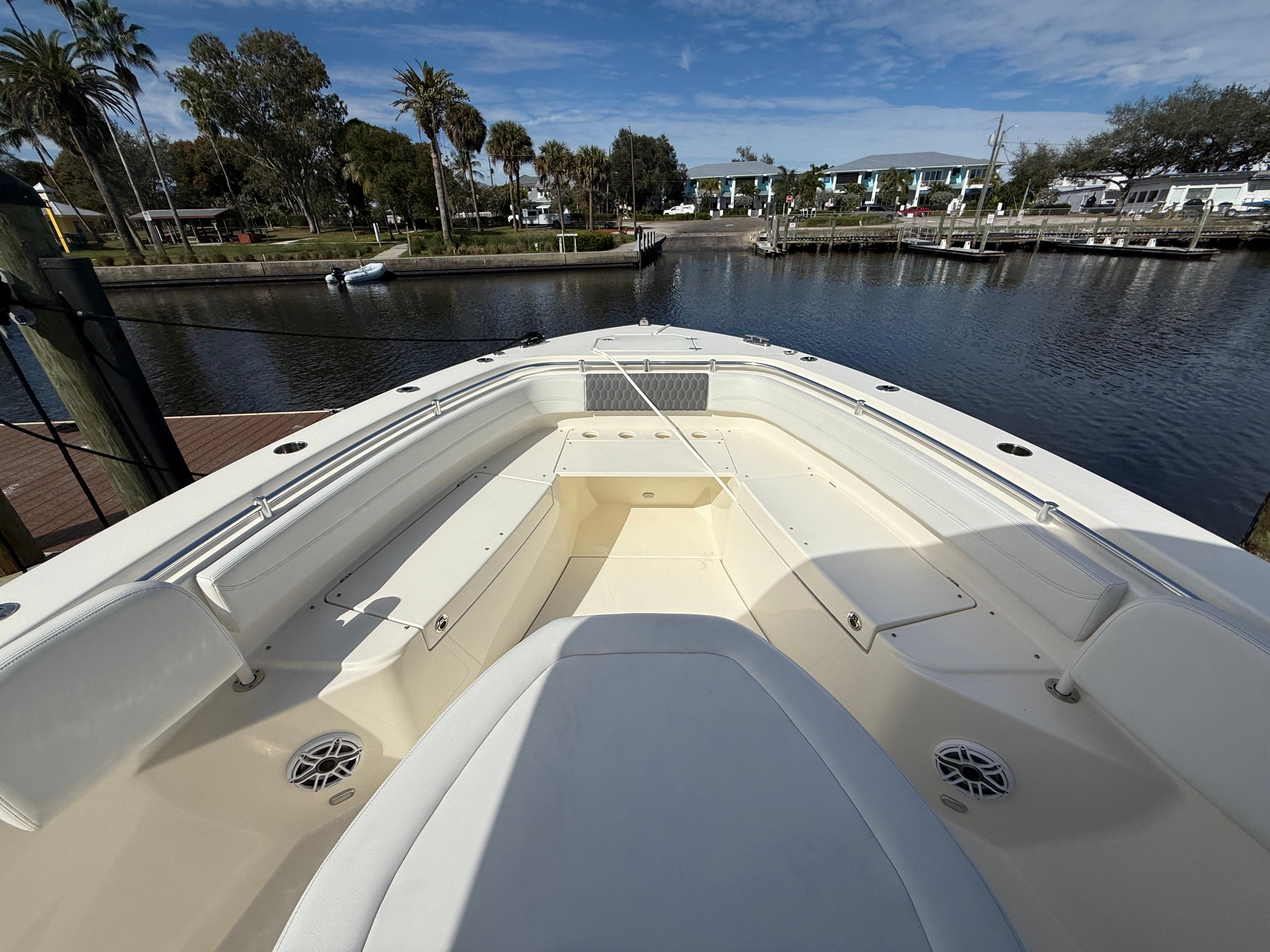 The Cobia 350 CC is packed with features that cater to both serious anglers and those seeking leisurely days on the water. Its expansive Center Console layout offers ample space for movement, making it easy to navigate the deck whether you are casting lines or entertaining guests. The ergonomic helm station is designed for maximum visibility and control, allowing you to operate the boat with confidence and ease. The thoughtful arrangement of seating and storage ensures that everyone on board has a comfortable place to relax, while gear and equipment are kept organized and accessible.This Cobia boat for sale is engineered with high-quality materials and attention to detail, ensuring durability and longevity. The spacious deck provides plenty of room for fishing, sunbathing, or socializing, while the Center Console design offers protection from the elements and convenient access to all areas of the boat. Every aspect of the Cobia 350 CC is crafted to enhance your experience on the water, from the intuitive controls to the stylish finishes.
