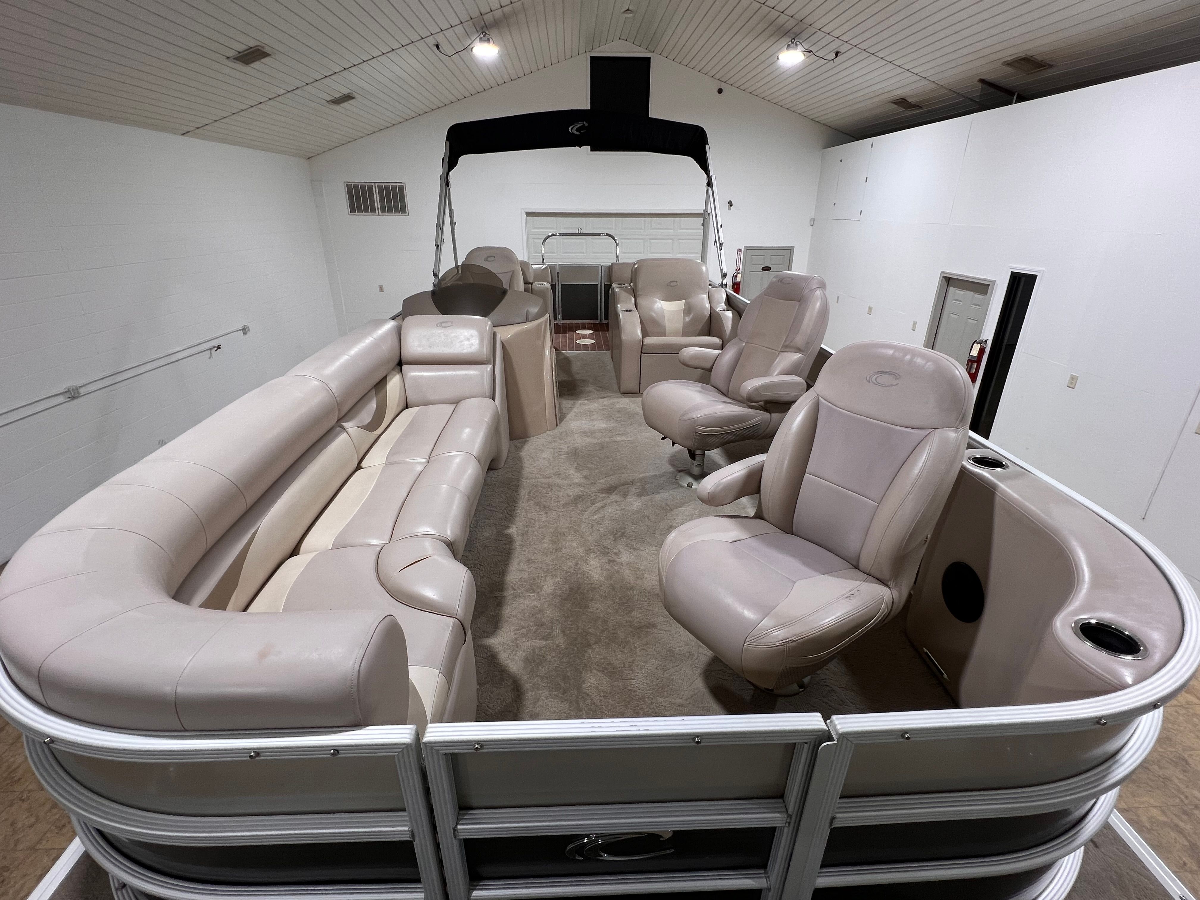 The 2013 Crest Classic 250 Pontoon boat for sale is a standout choice for anyone seeking a blend of performance, comfort, and versatility. With its spacious 26-foot layout, powerful 150 horsepower engine, and a host of special features—including a SNAP-ON COVER, BIMINI TOP, stainless ski tow bar, dual batteries with switch, docking lights, stainless steel prop, courtesy lights, stainless steel telescoping swim ladder, stereo with speakers, and impressive 14-person capacity—this Crest boat for sale offers everything you need for unforgettable days on the water.Don’t miss your chance to own a Crest Classic 250 and experience the joy, relaxation, and excitement that only a premium pontoon boat can provide. Contact the dealer today to learn more about this exceptional vessel and start planning your next adventure on the water!