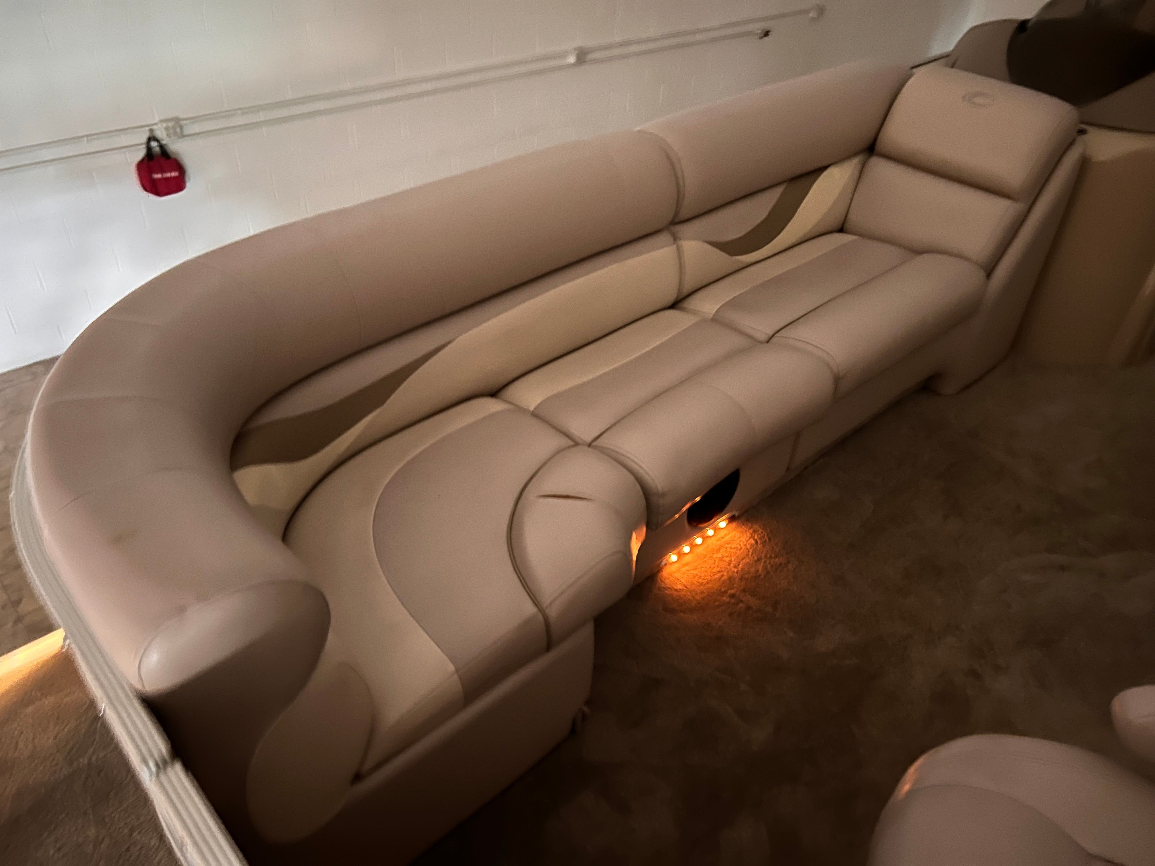 This Crest pontoon boat for sale is packed with features designed to elevate your boating experience. The SNAP-ON COVER offers protection from the elements, keeping your boat in top condition when not in use. The BIMINI TOP provides shade and comfort on sunny days, allowing you to relax and enjoy the scenery without worrying about harsh sun exposure. For water sports enthusiasts, the STAINLESS SKI TOW BAR is a standout feature, making it easy to tow skiers, wakeboarders, or inflatable tubes.Dual batteries with a switch ensure reliable power management, so you can enjoy extended outings without concern. Docking lights and courtesy lights enhance safety and convenience, making evening cruises and docking maneuvers a breeze. The stainless steel telescoping swim ladder offers easy access to and from the water, perfect for swimming and water play. The onboard stereo with speakers sets the mood for fun and relaxation, providing high-quality sound for your favorite tunes as you cruise.