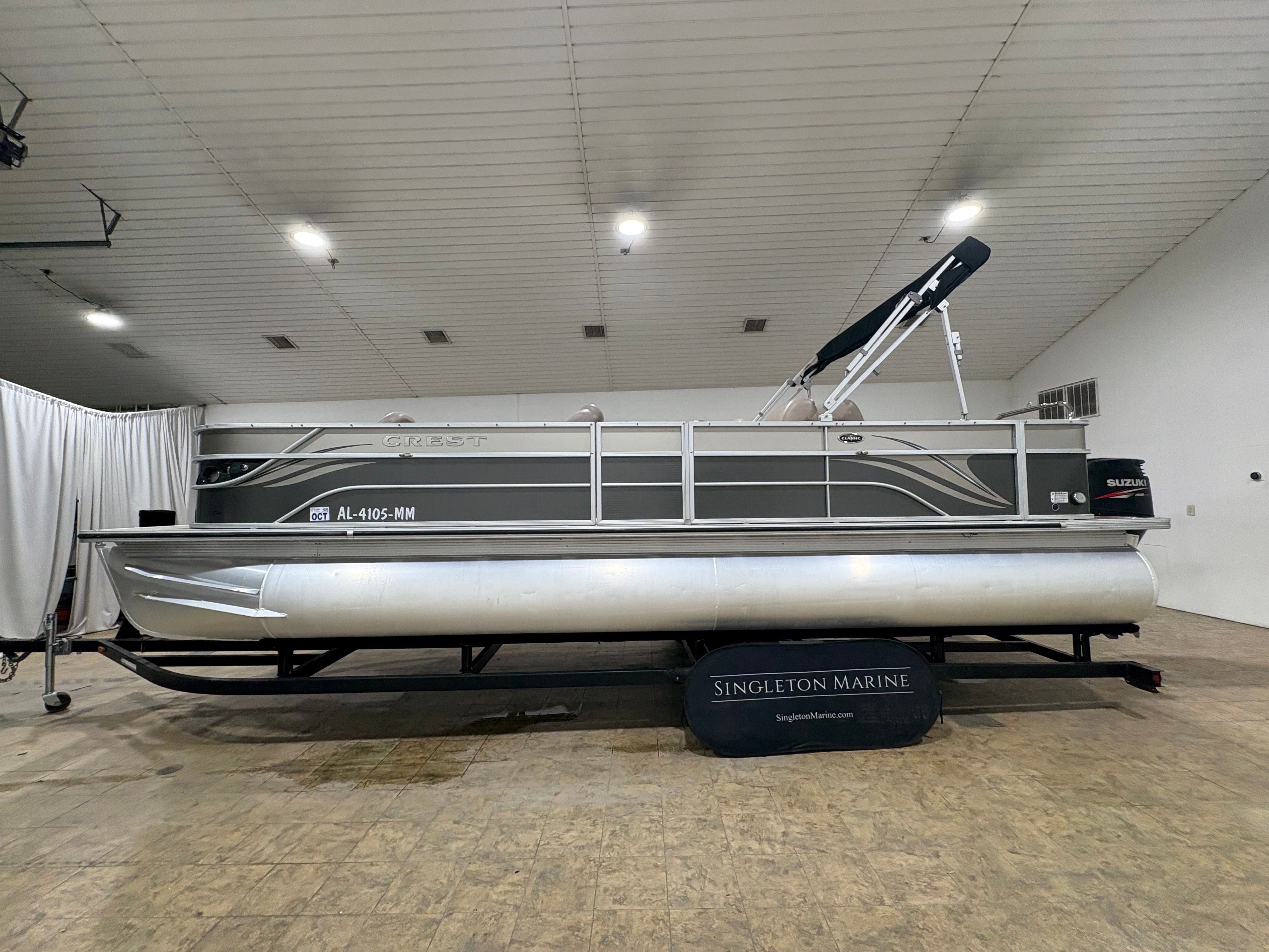 This Crest pontoon boat for sale shines in a variety of scenarios, making it a versatile choice for any boating enthusiast. Imagine hosting a lively family outing, with plenty of space for kids, adults, and gear. The Classic 250 is perfect for fishing trips, offering a stable platform and easy access to the water. For those who love water sports, the ski tow bar and powerful engine make towing effortless and fun.Luxury getaways are also within reach, thanks to the comfortable seating, shade from the BIMINI TOP, and entertainment provided by the stereo system. Whether you’re exploring new lakes, enjoying sunset cruises, or anchoring at your favorite swimming spot, the Crest Classic 250 adapts to your needs and elevates every experience.