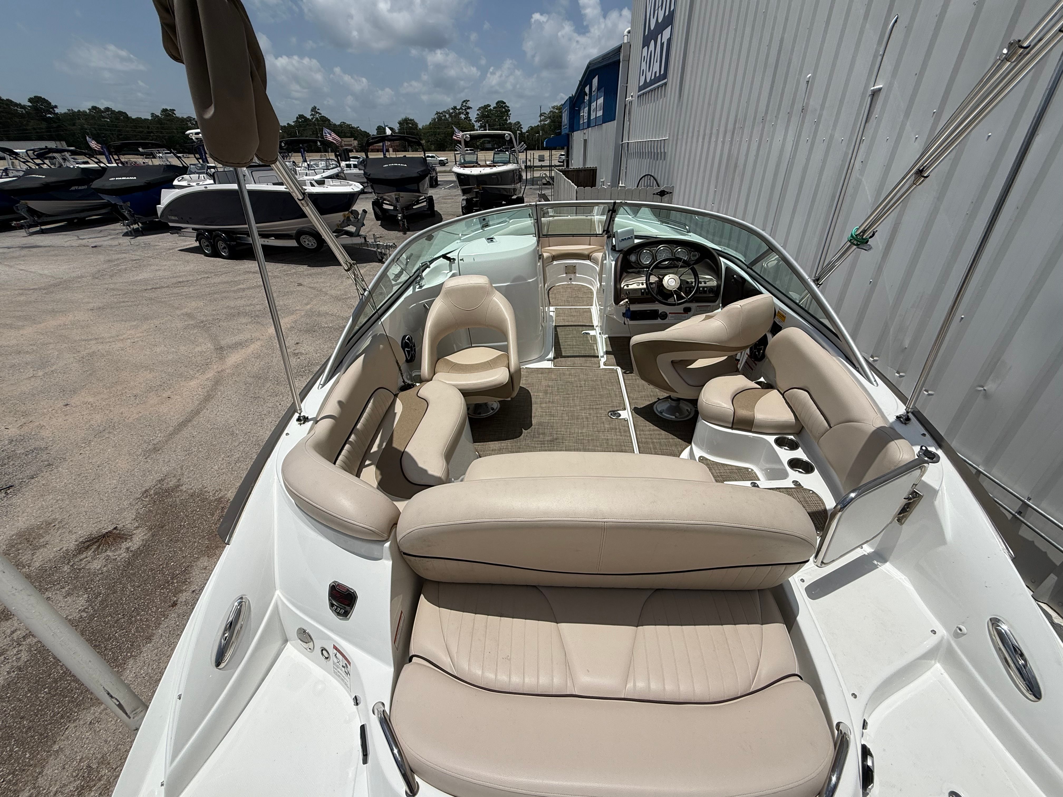 This used Bowrider comes equipped with a tandem axle trailer, adding significant value and convenience for owners who want to explore new waterways or transport their boat with ease. The trailer’s sturdy construction and dual axles make launching, retrieving, and storing the boat a breeze, while also enhancing safety during transport. The 21-foot length of the Cruisers 238 BR offers generous seating and deck space, allowing you to bring along family and friends for a day of fun. The open bow design is perfect for lounging, sunbathing, or enjoying panoramic views of your favorite destinations.