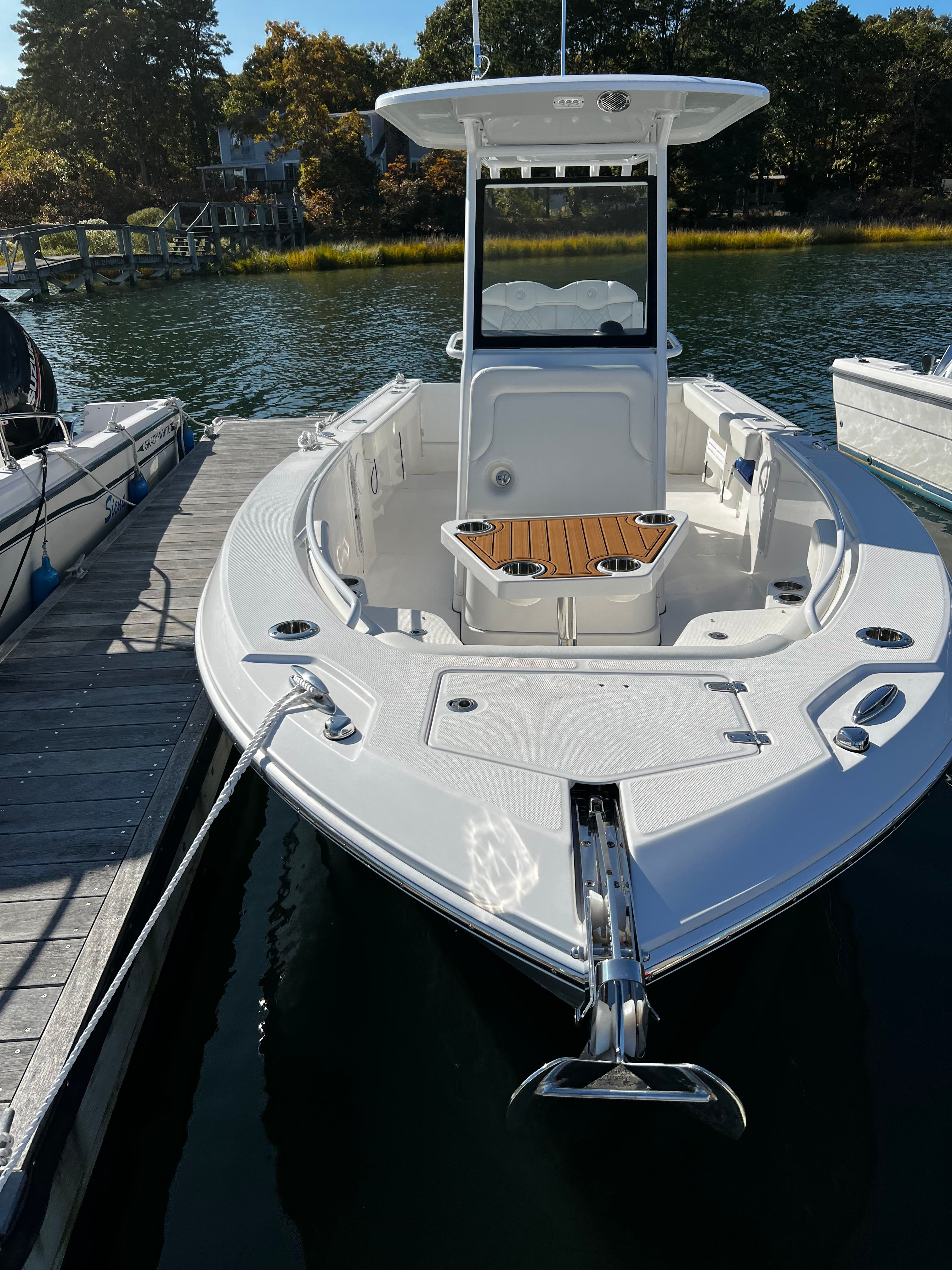 The 2023 Edgewater 230 CC is a 24.5-foot Center Console boat that embodies the spirit of adventure and freedom on the water. Built with Edgewater’s renowned attention to detail and quality craftsmanship, this model is designed to handle a variety of conditions while providing comfort and safety for everyone on board. As a used boat in excellent condition, with only 25 engine hours, this Edgewater 230 CC offers the rare opportunity to own a nearly-new vessel at a great value. Its impressive length provides ample space for fishing, relaxing, or entertaining, making it a versatile choice for any boating enthusiast.