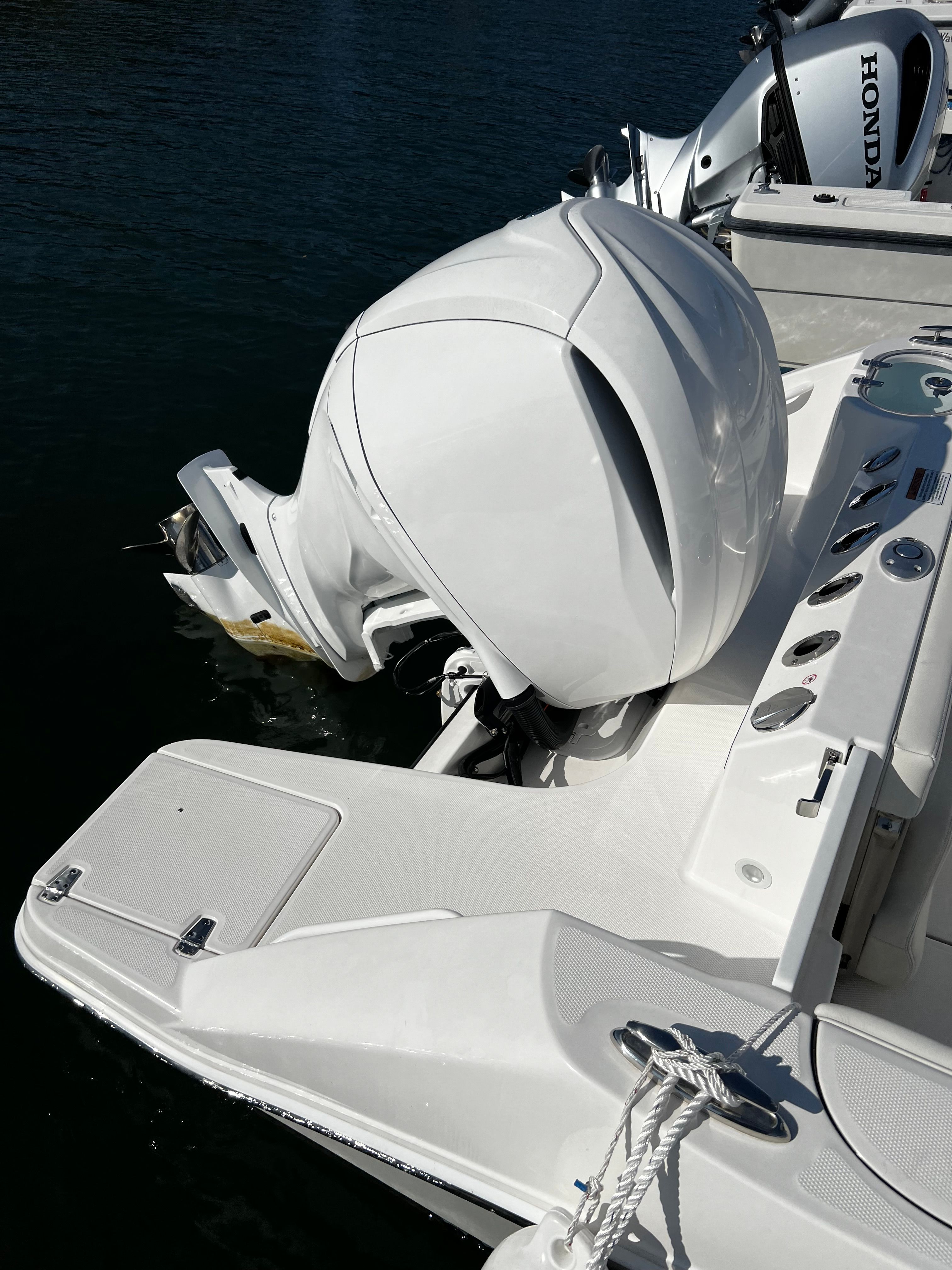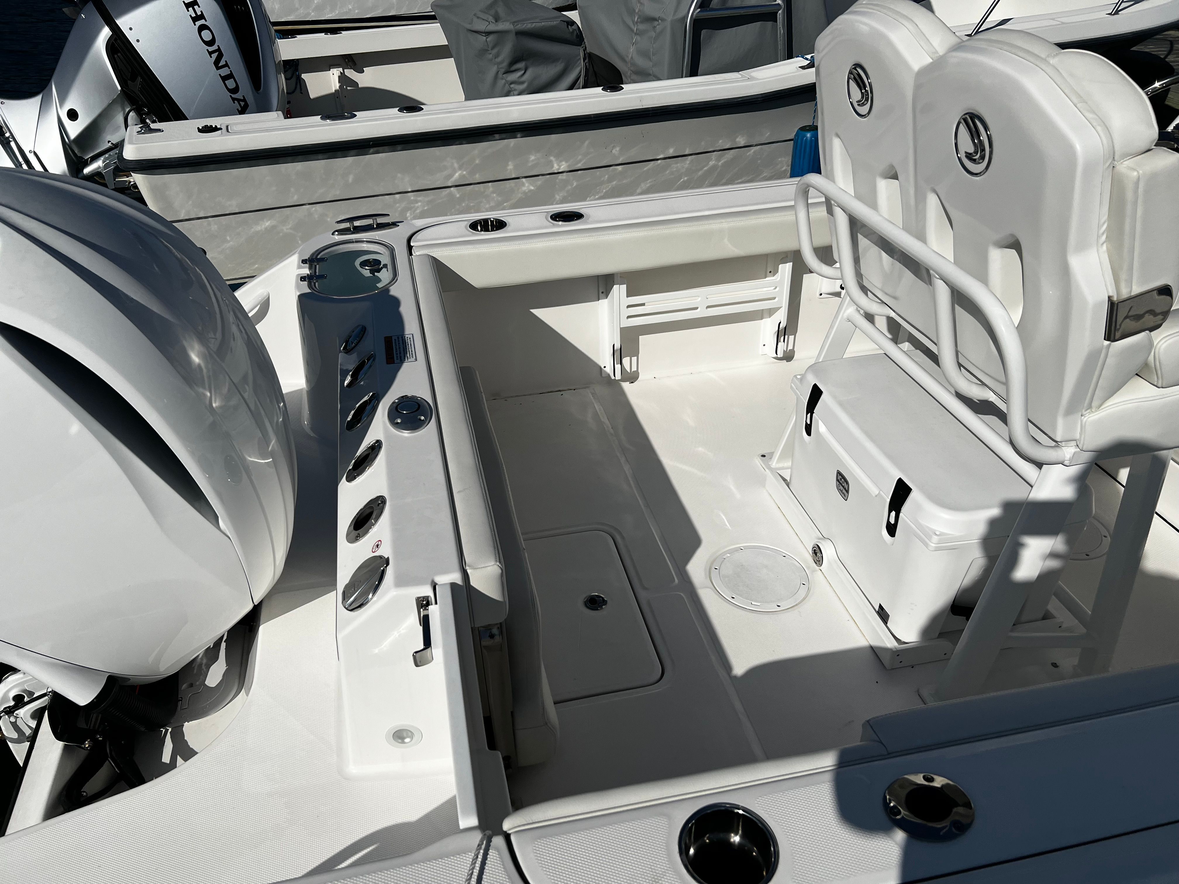 At the heart of this Edgewater 230 CC is a single, robust engine delivering an impressive 300 horsepower. With only 25 engine hours, this powerplant is barely broken in, ensuring many seasons of reliable performance ahead. The engine’s design offers smooth acceleration, responsive handling, and the ability to reach exhilarating speeds, making it ideal for everything from offshore fishing trips to leisurely cruises along the coast. Whether you are chasing the next big catch or enjoying a day of water sports, the Edgewater 230 CC’s performance capabilities ensure you are always in control and ready for adventure.