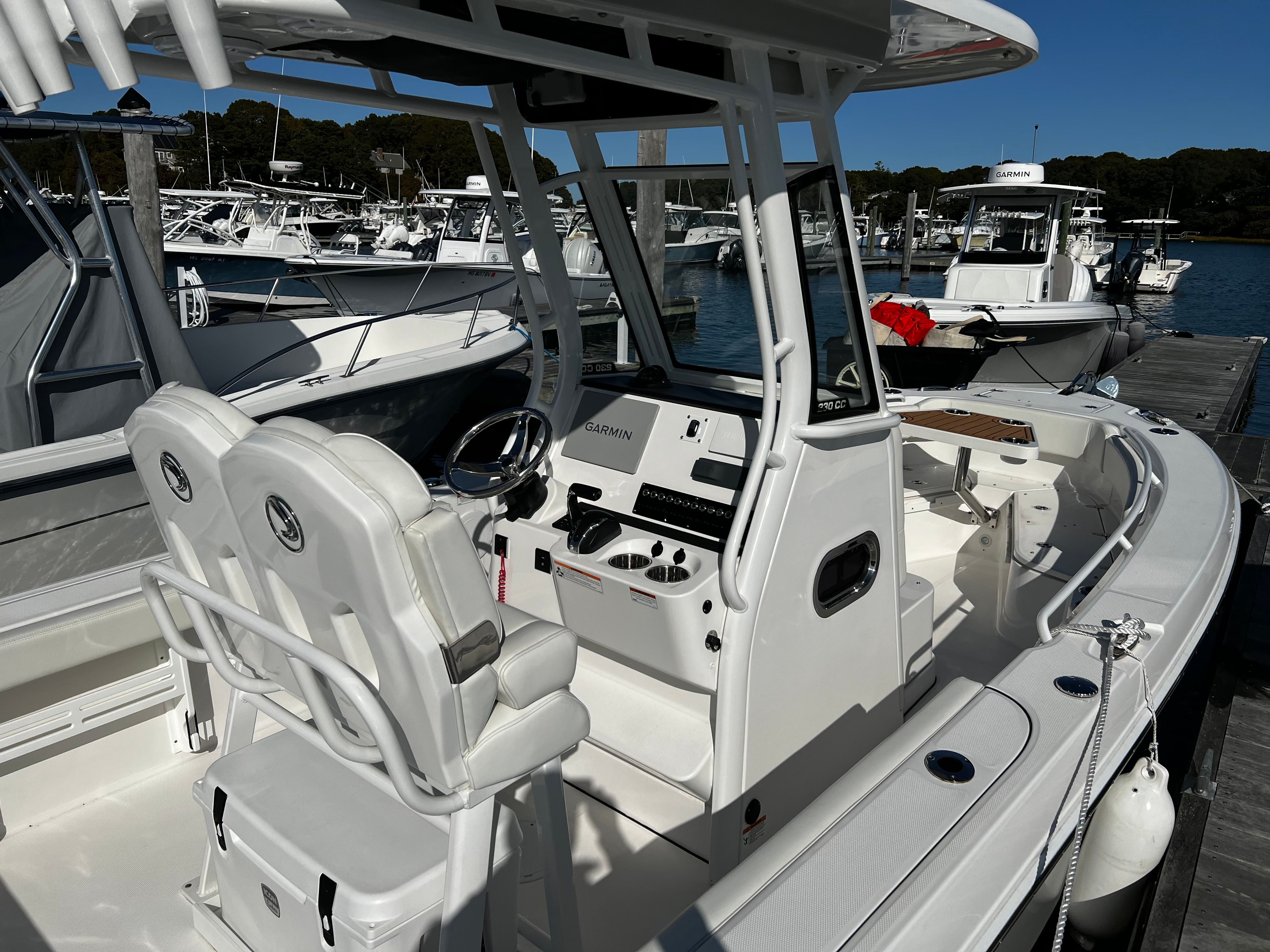 This Center Console boat for sale is packed with features that enhance both its functionality and comfort. The spacious deck layout allows for easy movement around the boat, making it perfect for casting lines or socializing with friends and family. The Center Console design provides excellent visibility and control, while the ergonomic helm ensures a comfortable and intuitive driving experience. The 24.5-foot length offers generous space for seating and storage, so you can bring along all the gear and supplies you need for a day on the water. Every detail of the Edgewater 230 CC is crafted to maximize your enjoyment and convenience, from the durable construction to the thoughtful placement of every feature.