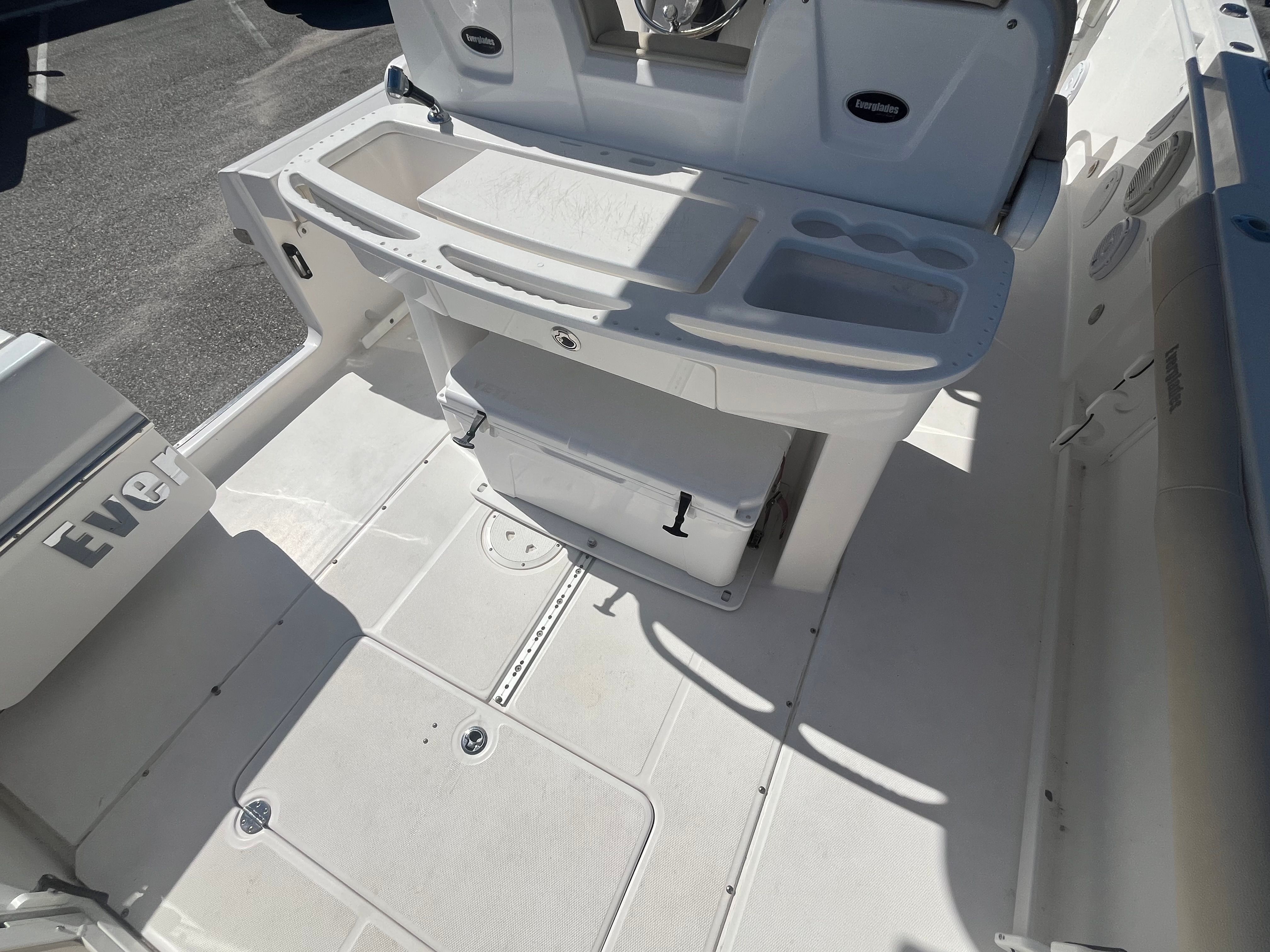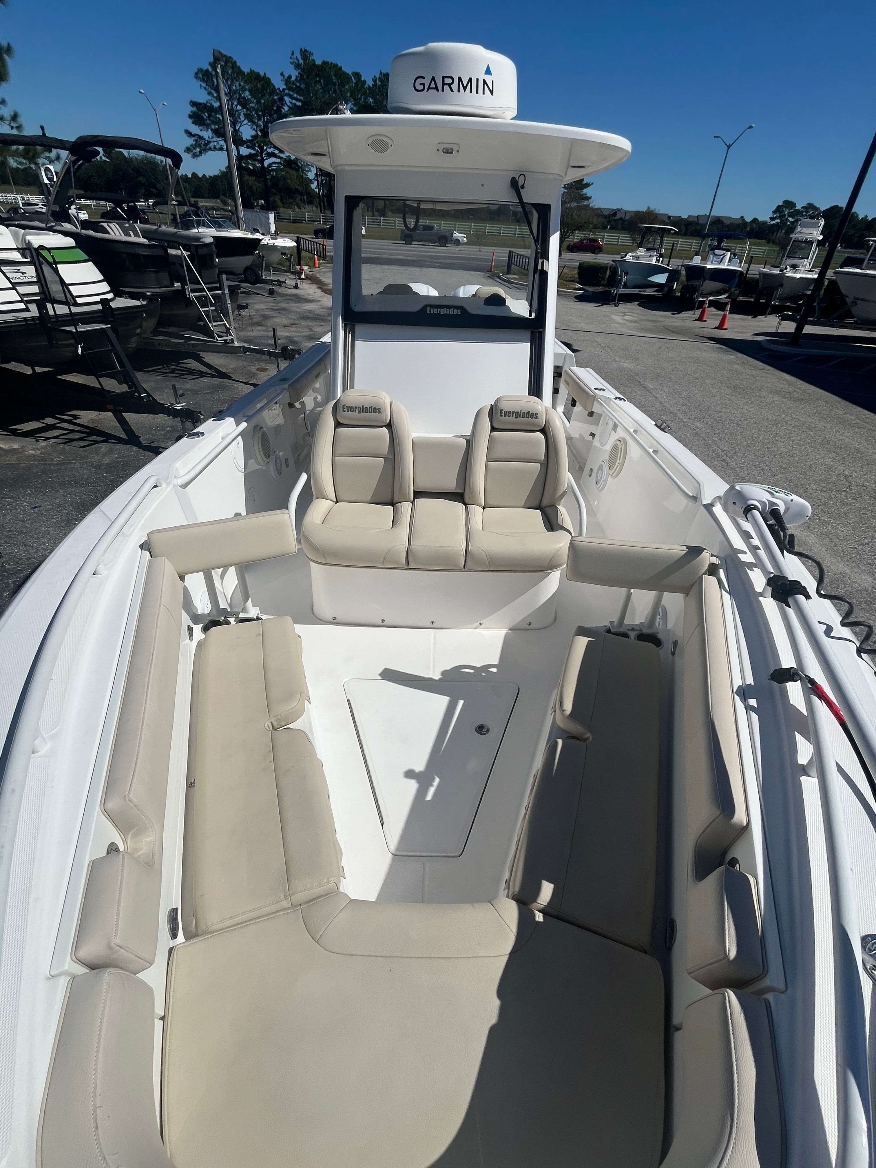 The Everglades 295 CC is designed with both functionality and comfort in mind. Its center console layout maximizes deck space, allowing for easy movement around the boat and unobstructed access to all areas. The helm is thoughtfully arranged, offering clear visibility and intuitive controls for a seamless boating experience. The boat’s construction reflects Everglades’ commitment to durability and safety, with high-quality materials and attention to detail evident throughout.Special features of the 295 CC enhance its appeal for both fishing enthusiasts and recreational boaters. The spacious cockpit provides plenty of room for casting lines or setting up gear, while the forward seating area offers a comfortable spot to relax and enjoy the view. Storage compartments are strategically placed to keep your equipment organized and out of the way, ensuring a clutter-free environment on board. The boat’s design also incorporates features that make maintenance and cleaning straightforward, so you can spend more time enjoying the water and less time on upkeep.