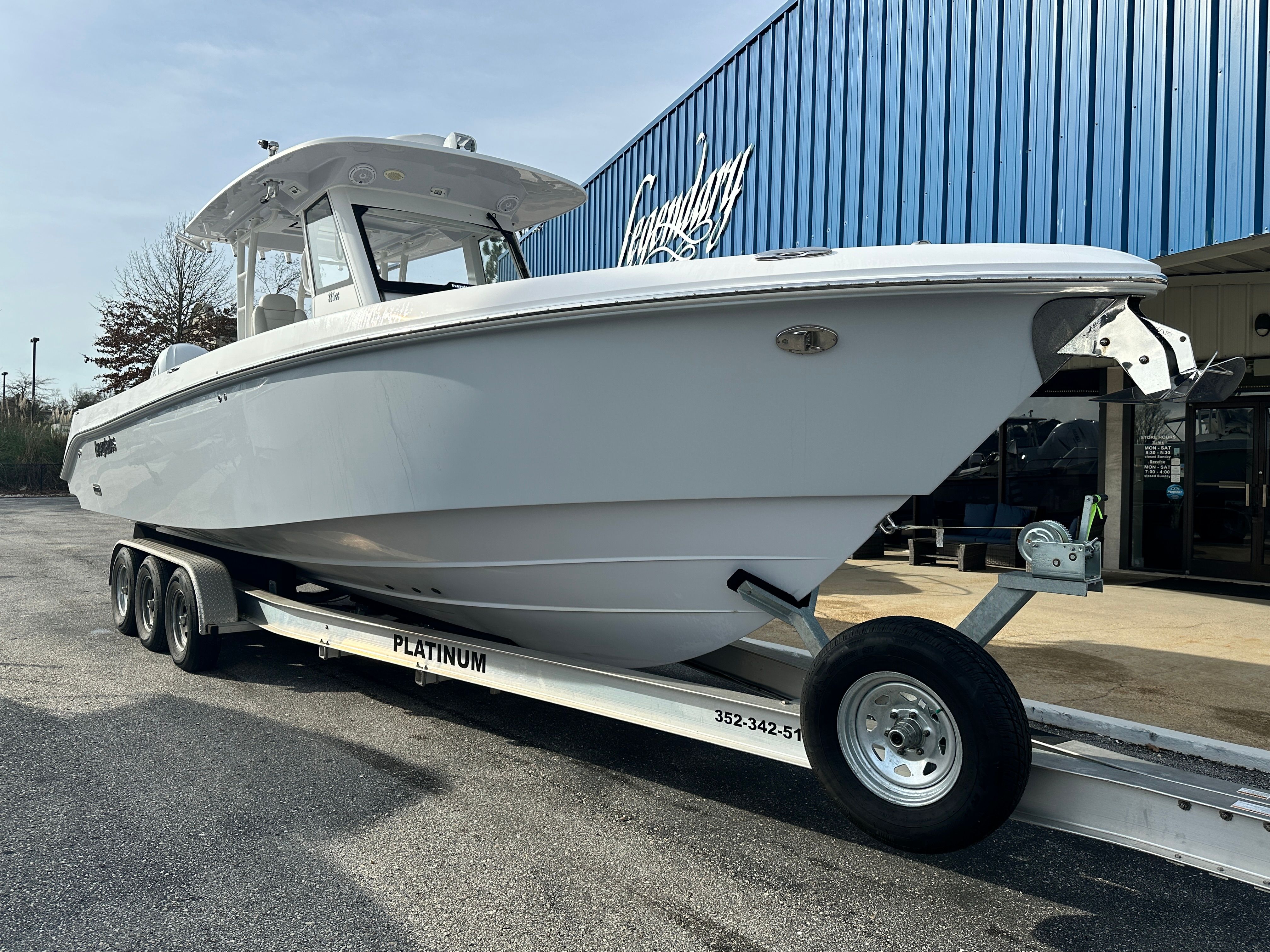 The 2019 Everglades 335 CC is a striking Center Console boat measuring an impressive 34.67 feet in length. This used Everglades boat for sale is meticulously maintained, ensuring you receive a vessel that is both reliable and ready for countless adventures. The sleek lines, modern hull design, and commanding presence of the 335 CC make it a standout on any waterway. With a reputation for durability and innovation, Everglades has crafted this model to deliver both style and substance, making it a sought-after choice among Center Console enthusiasts.