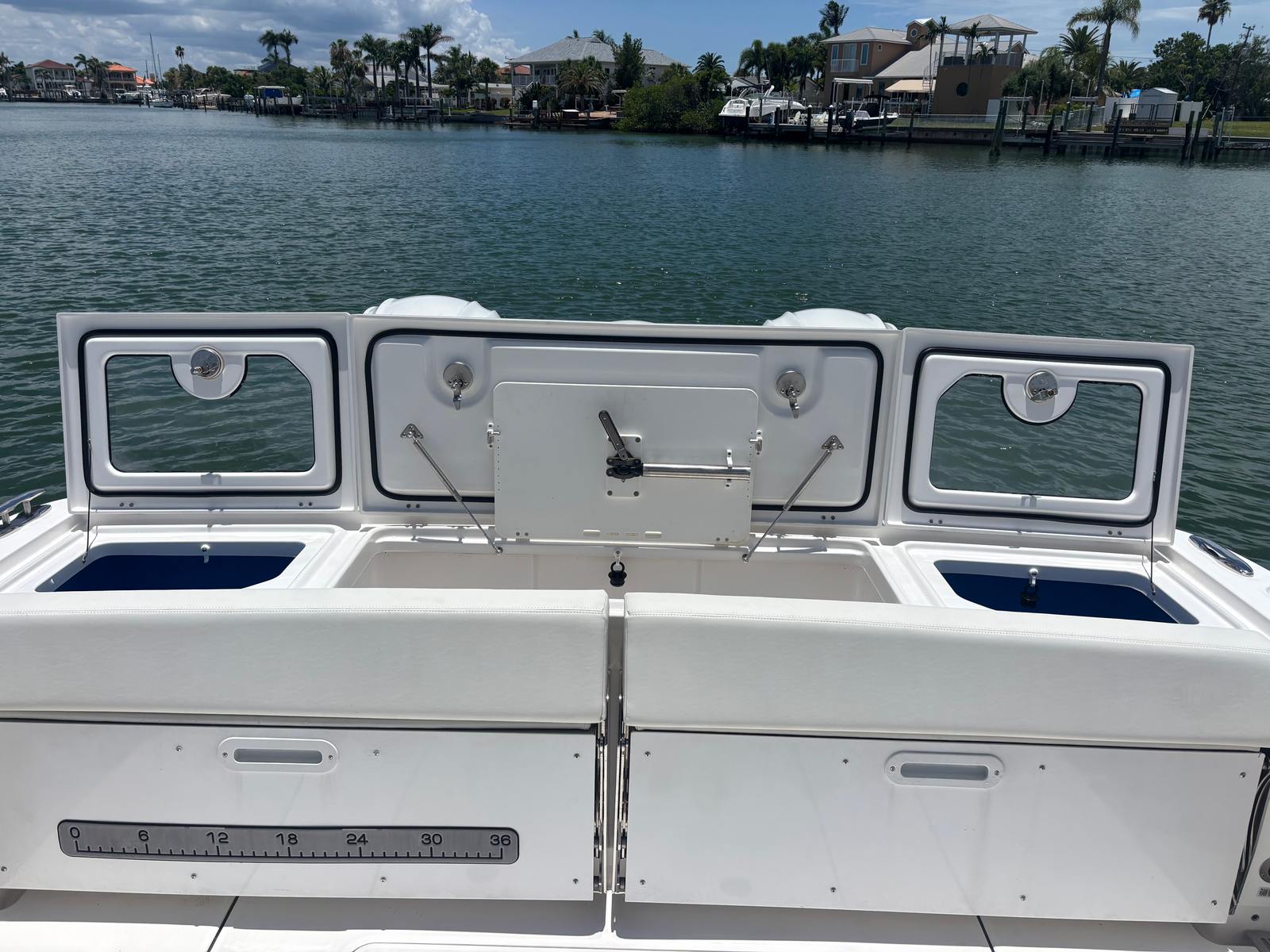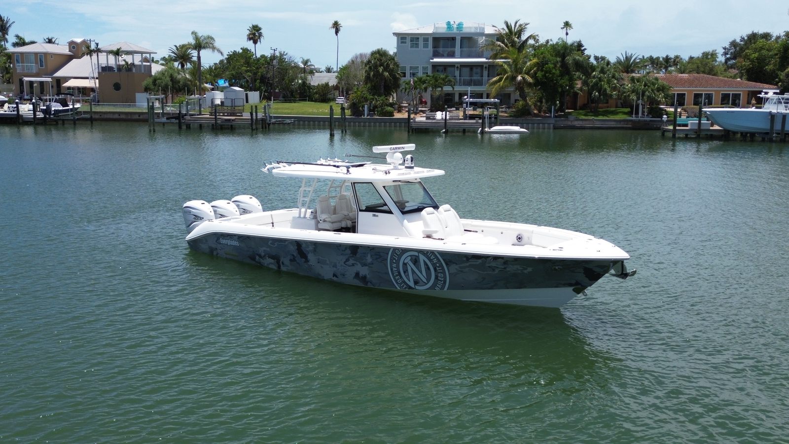 Powering the Everglades 395 CC are three high-performance engines, delivering a combined 1,275 horsepower. With only 265 engine hours, these engines offer plenty of life and reliability for years to come. The triple-engine setup ensures rapid acceleration, impressive top speeds, and smooth handling even in challenging conditions. Whether you’re cruising along the coastline, heading offshore for a fishing expedition, or enjoying a day of water sports, the Everglades 395 CC provides the power and agility you need for a thrilling ride. The advanced engineering behind this Center Console boat for sale guarantees optimal fuel efficiency and responsive maneuverability, making every journey enjoyable and stress-free.