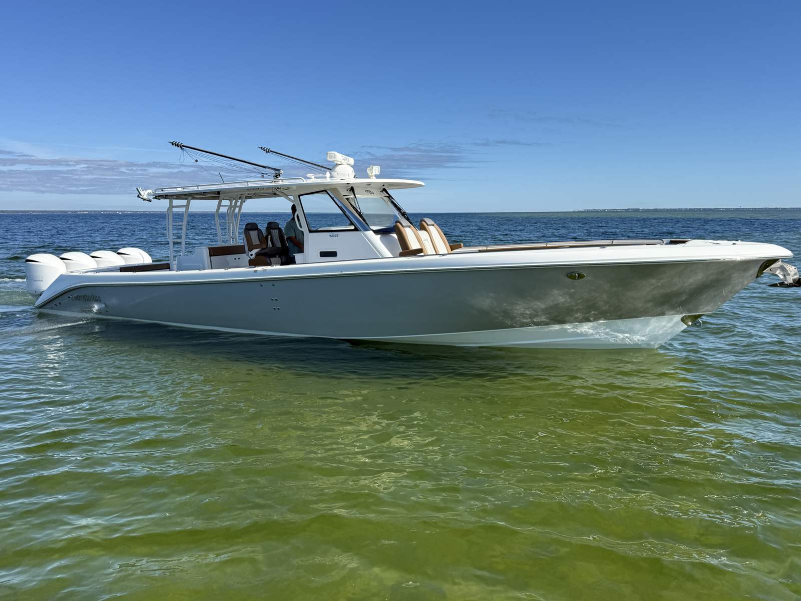 Power and performance are at the heart of the Everglades 435 CC. Equipped with four high-performance engines delivering a combined 1,400 horsepower, this center console boat is built to conquer the open seas with confidence and speed. The quad-engine setup provides exceptional acceleration, smooth cruising, and impressive top-end speed, making it ideal for long offshore runs, tournament fishing, or simply enjoying a thrilling ride with friends and family. With 500 engine hours, these engines have been maintained to ensure reliable performance and longevity. The advanced hull design ensures a dry, stable, and comfortable ride, even in challenging conditions, so you can focus on the adventure ahead.