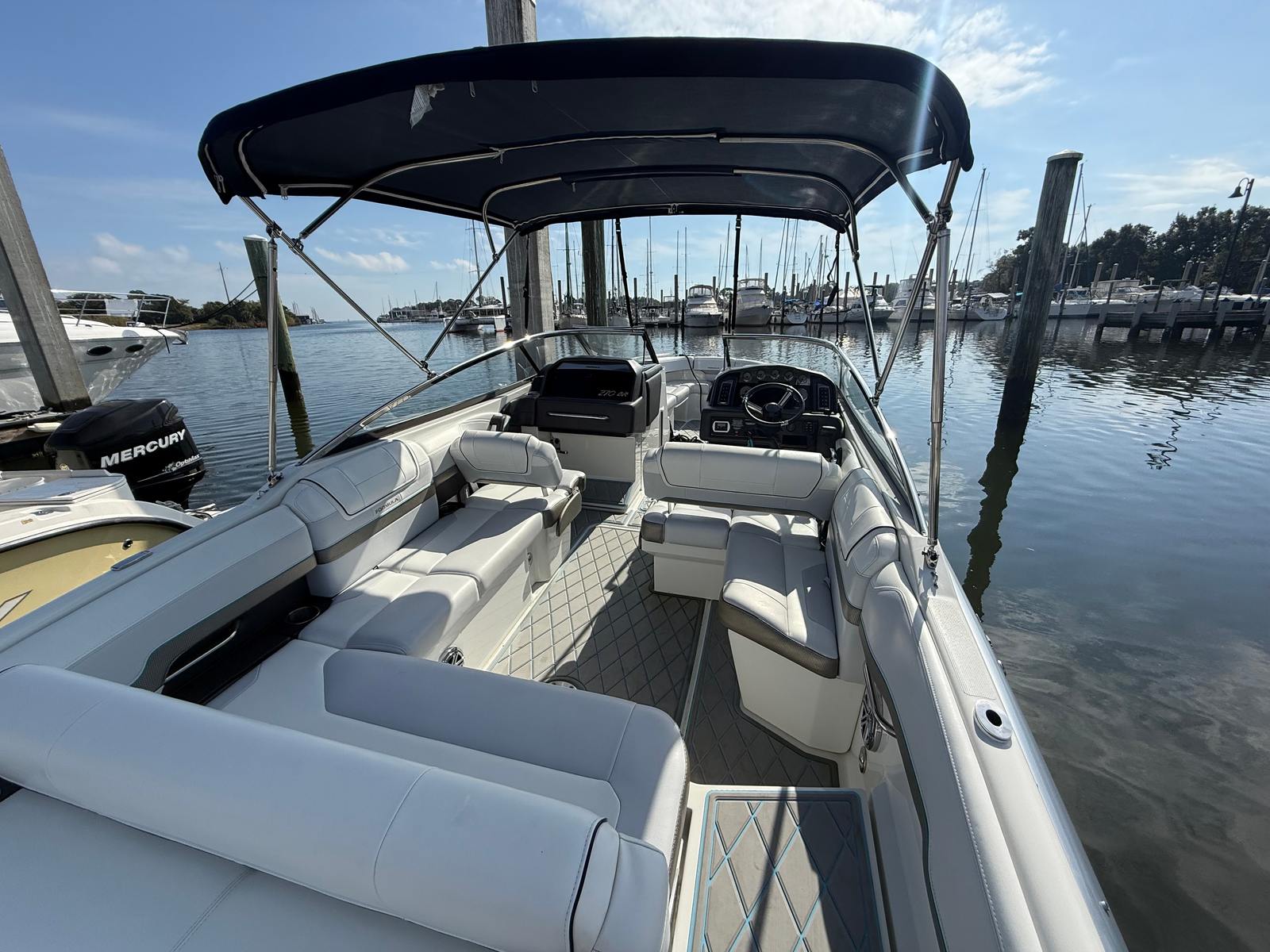 Owning a Formula 270 BR means embracing a lifestyle of fun, relaxation, and adventure. This bowrider boat for sale is designed to maximize enjoyment on the water, with comfortable seating arrangements that encourage conversation and connection. The open layout allows for easy movement throughout the boat, making it simple to transition from sunbathing on the bow to enjoying refreshments in the cockpit. The 270 BR’s thoughtful design ensures that every passenger can find their perfect spot to unwind, whether you are anchored in a quiet cove or cruising along the shoreline.The 430-horsepower engine provides the thrill of speed and the confidence to explore new destinations. With its responsive handling and smooth ride, the Formula 270 BR is equally suited for water sports, leisurely cruises, or spirited runs across the lake. The boat’s versatility means you can tailor each outing to your preferences, creating lasting memories with family and friends.