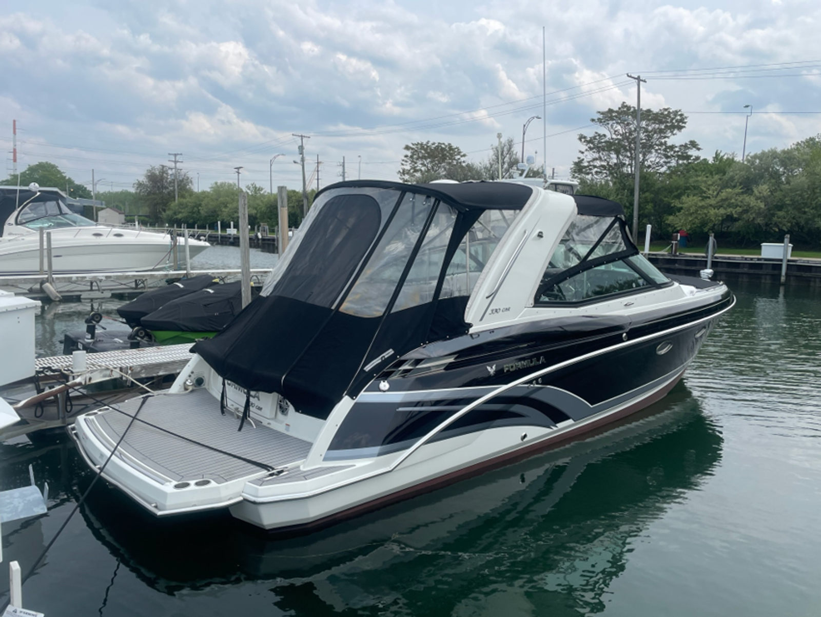 Owning the Formula 330 CBR cruiser means embracing a lifestyle of fun, relaxation, and adventure. The spacious layout is perfect for entertaining friends and family, offering ample seating and room to move about. The comfortable cabin and climate control features ensure everyone stays cozy, whether you’re escaping the summer heat or enjoying a crisp autumn evening on the water. The premium sea grass flooring in the cockpit adds both style and practicality, making cleanup after a day of fun effortless. Socializing is a breeze on this cruiser boat for sale, with plenty of space for dining, lounging, and enjoying the company of loved ones. The bimini top and camper enclosure provide flexible options for sun and shade, so you can tailor your experience to suit the weather and your preferences. Whether you’re hosting a sunset cocktail party or embarking on a weekend adventure, the Formula 330 CBR delivers the perfect setting for memorable moments.
