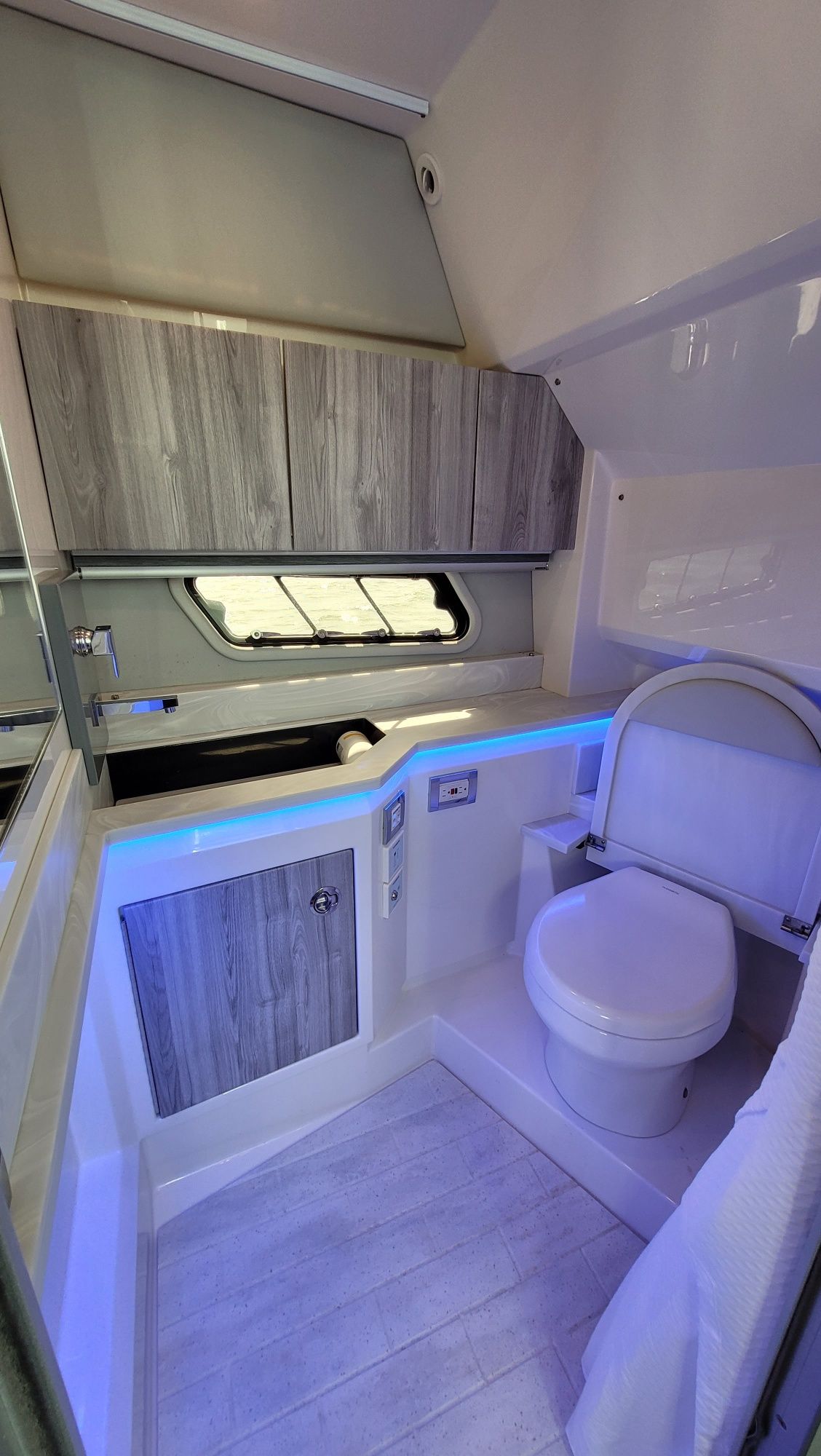 Waterproof rocker switches: These intuitive switches feature liquid black panels with metallic, bold accents.