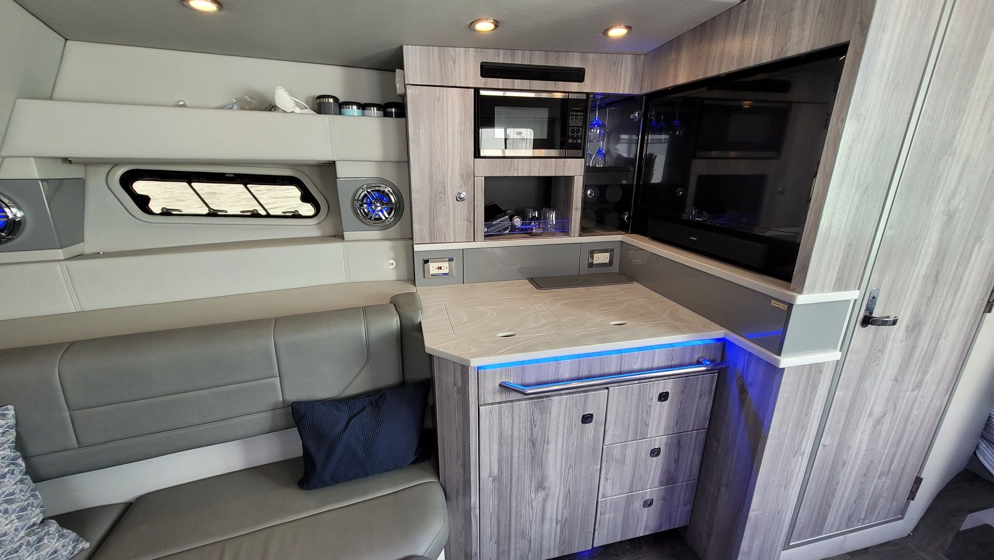 Reverse-cycle air conditioner: The 30,000-BTU cockpit AC features vents in the seatbacks and helm.