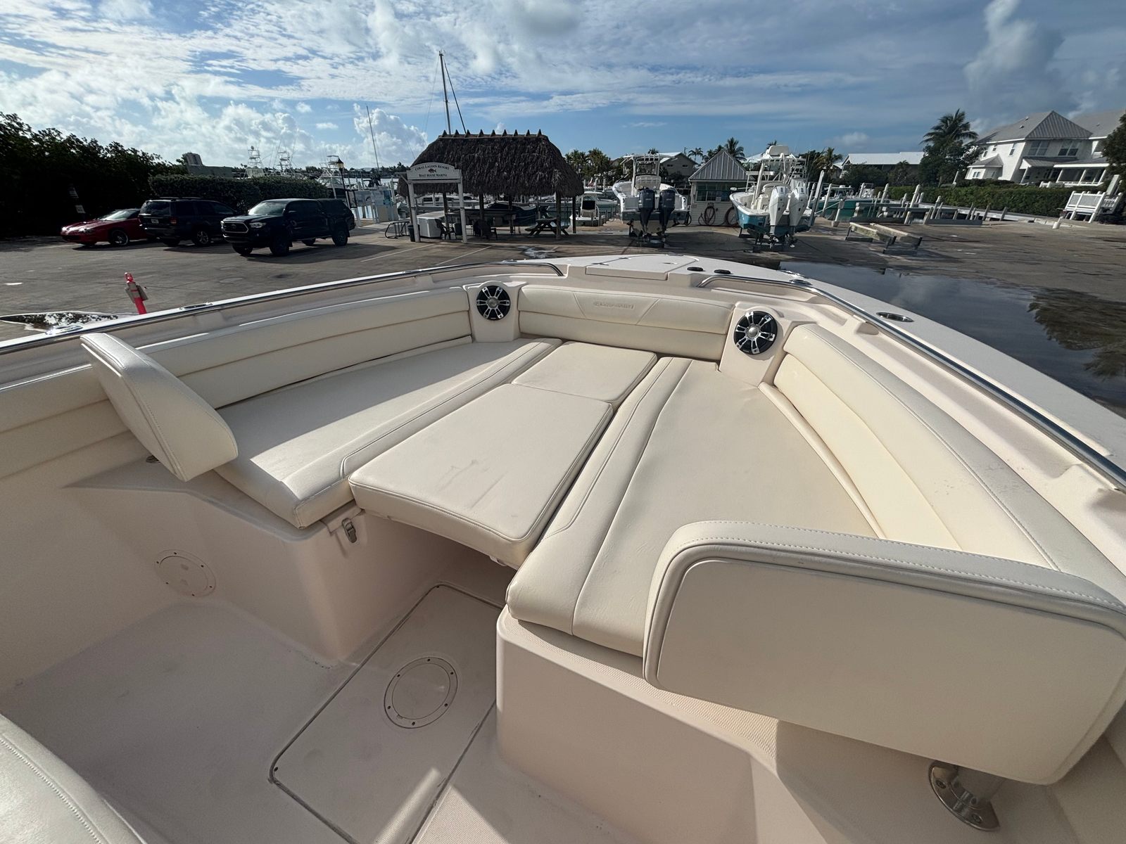 Owning the Grady-White Canyon 326 means enjoying the best of both worlds—serious fishing capabilities and luxurious comfort. The open deck layout is perfect for socializing, allowing friends and family to gather and enjoy the water together. The generous seating arrangements provide comfort during long days on the water, while the spacious deck ensures everyone has room to move and relax.This Center Console boat for sale is designed to make every outing enjoyable, whether you are chasing trophy fish offshore or cruising to your favorite waterfront destination. The combination of power, space, and thoughtful amenities makes the Canyon 326 a versatile choice for boaters who demand both performance and comfort.
