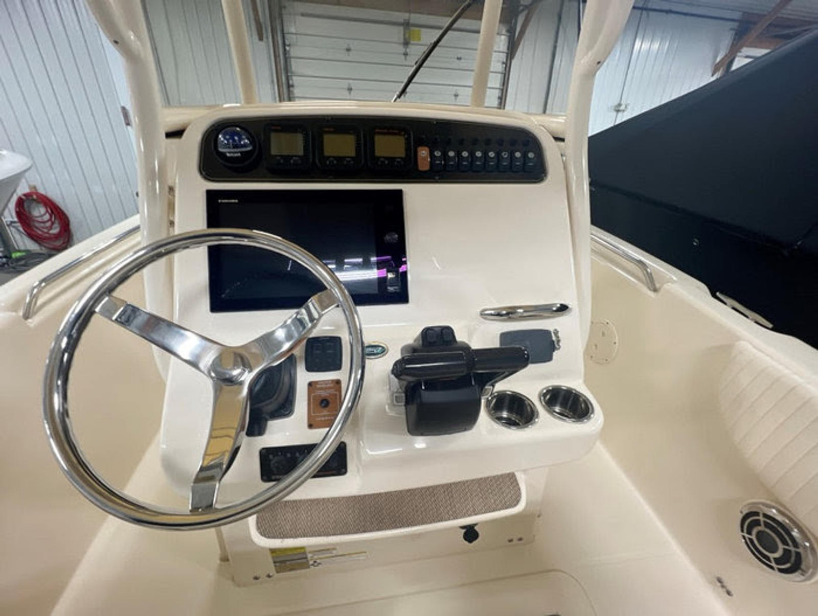 The Grady-White 257 Fisherman is equipped with a range of special features designed to enhance your boating experience. The aft bench seat and forward seating provide comfortable options for relaxing and socializing, while the bow seating offers a perfect spot to soak up the sun or enjoy the breeze. Cockpit coaming bolsters add extra comfort during long days on the water, and the cockpit storage ensures your gear stays organized and out of the way.For navigation and safety, this center console boat includes a compass, a depth sounder, and a state-of-the-art 12" GPS/chart plotter, making it easy to explore new waters with confidence. The gray hull color not only adds a touch of style but also helps the boat stand out in any marina.