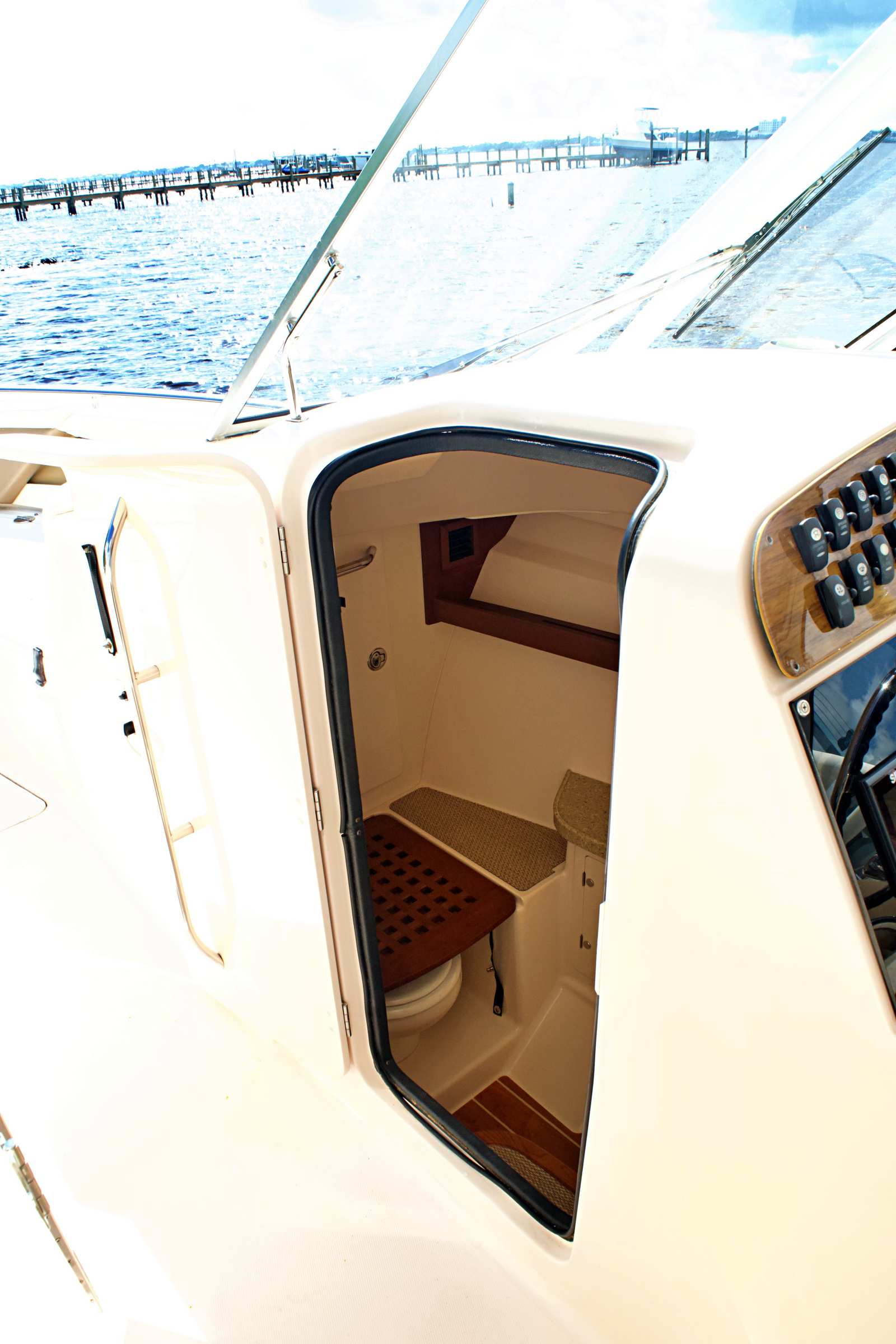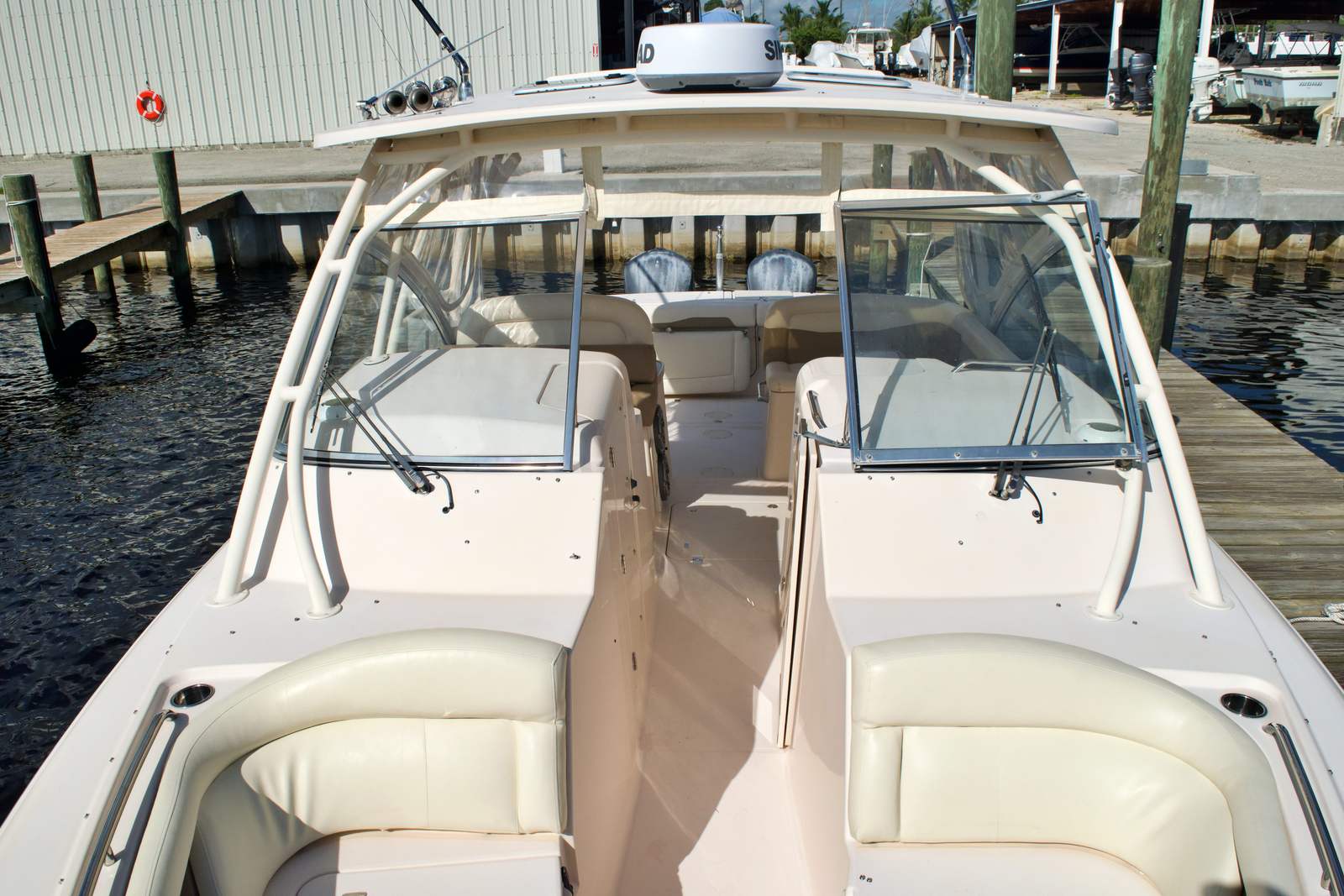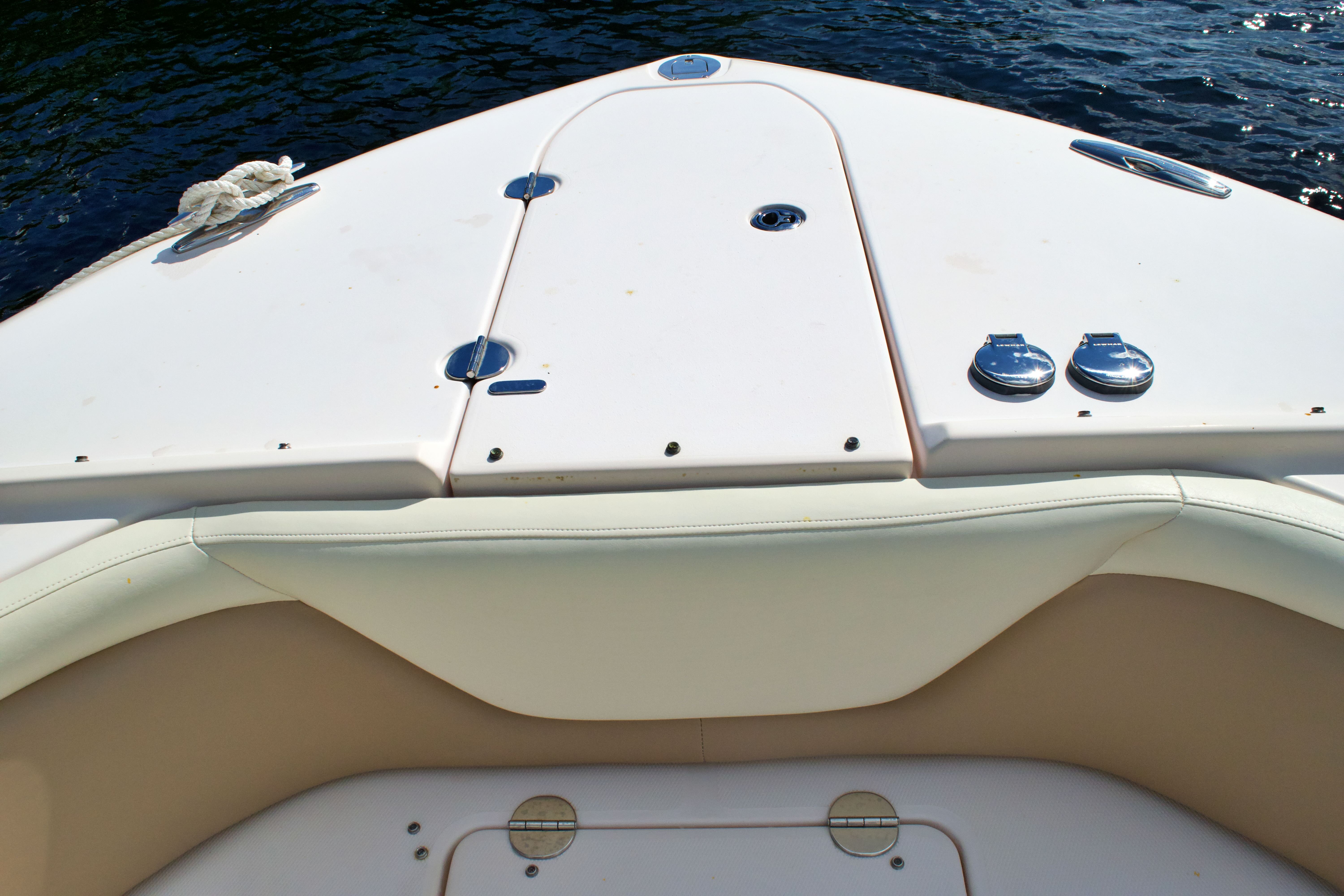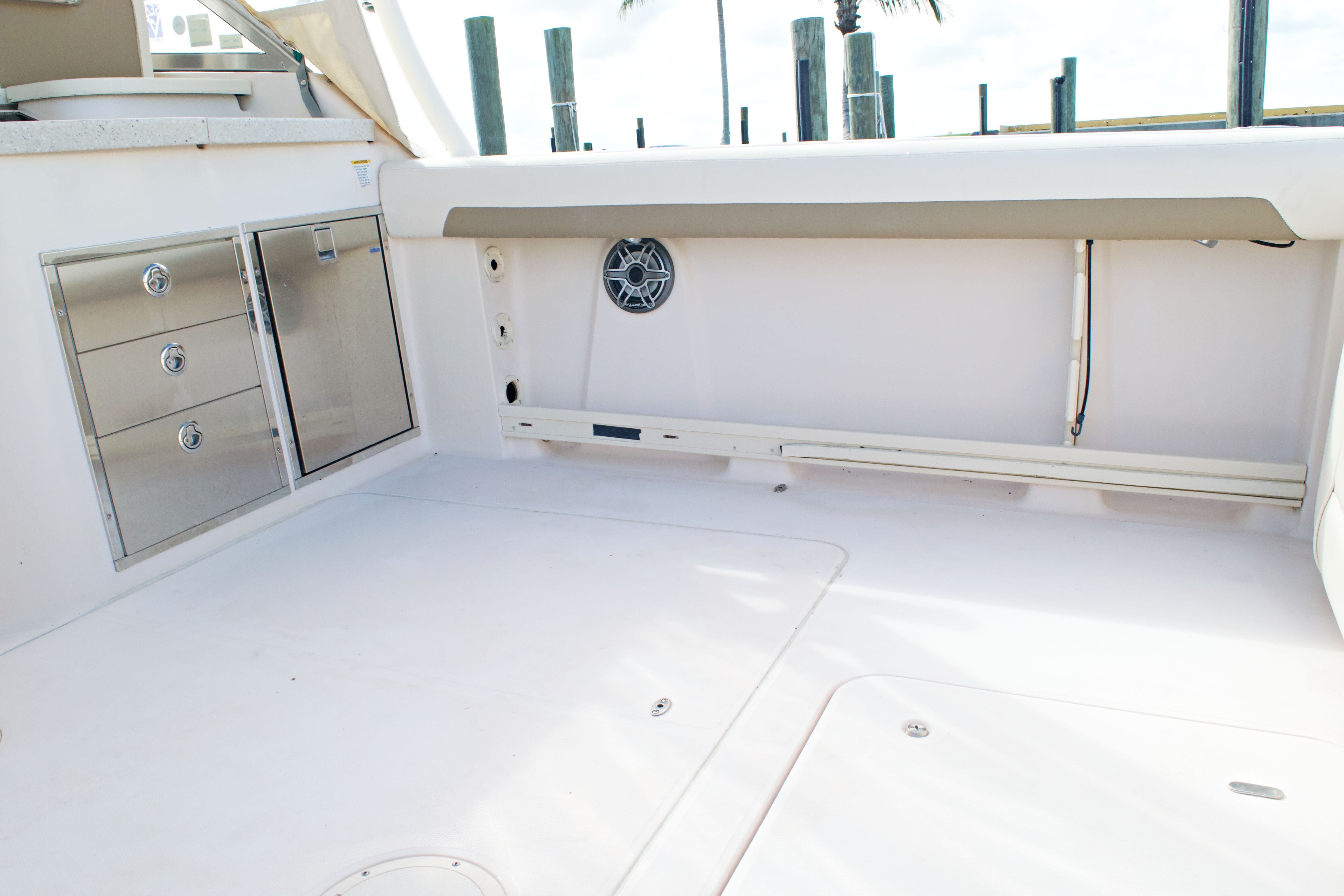 The Grady-White 335 Freedom is as practical as it is enjoyable. Its thoughtful design includes ample storage for gear, water toys, and personal items, keeping the deck clutter-free and organized. The dual console layout makes docking and maneuvering easier while using the joy-stick controlled bow thruster giving you confidence in tight marinas or when approaching the dock after a day on the water. Fuel efficiency is another highlight, thanks to the advanced engineering of the twin Yamaha engines. You can spend more time exploring and less time refueling, making every outing more enjoyable. The boat’s robust construction and quality materials ensure durability and low maintenance, so you can focus on making the most of your time on the water.