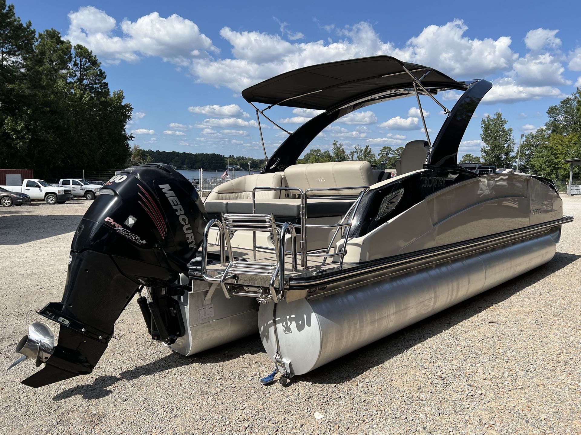 The Harris Crowne 250 is designed with both luxury and functionality in mind. Its spacious deck layout allows for comfortable seating and easy movement, making it ideal for entertaining guests or spending quality time with family. The high-quality construction and attention to detail are evident in every aspect of the boat, from the plush seating to the stylish railings and fixtures. The pontoon’s generous length provides ample room for lounging, dining, and enjoying the sun, while the sturdy build ensures a safe and stable ride in various water conditions.