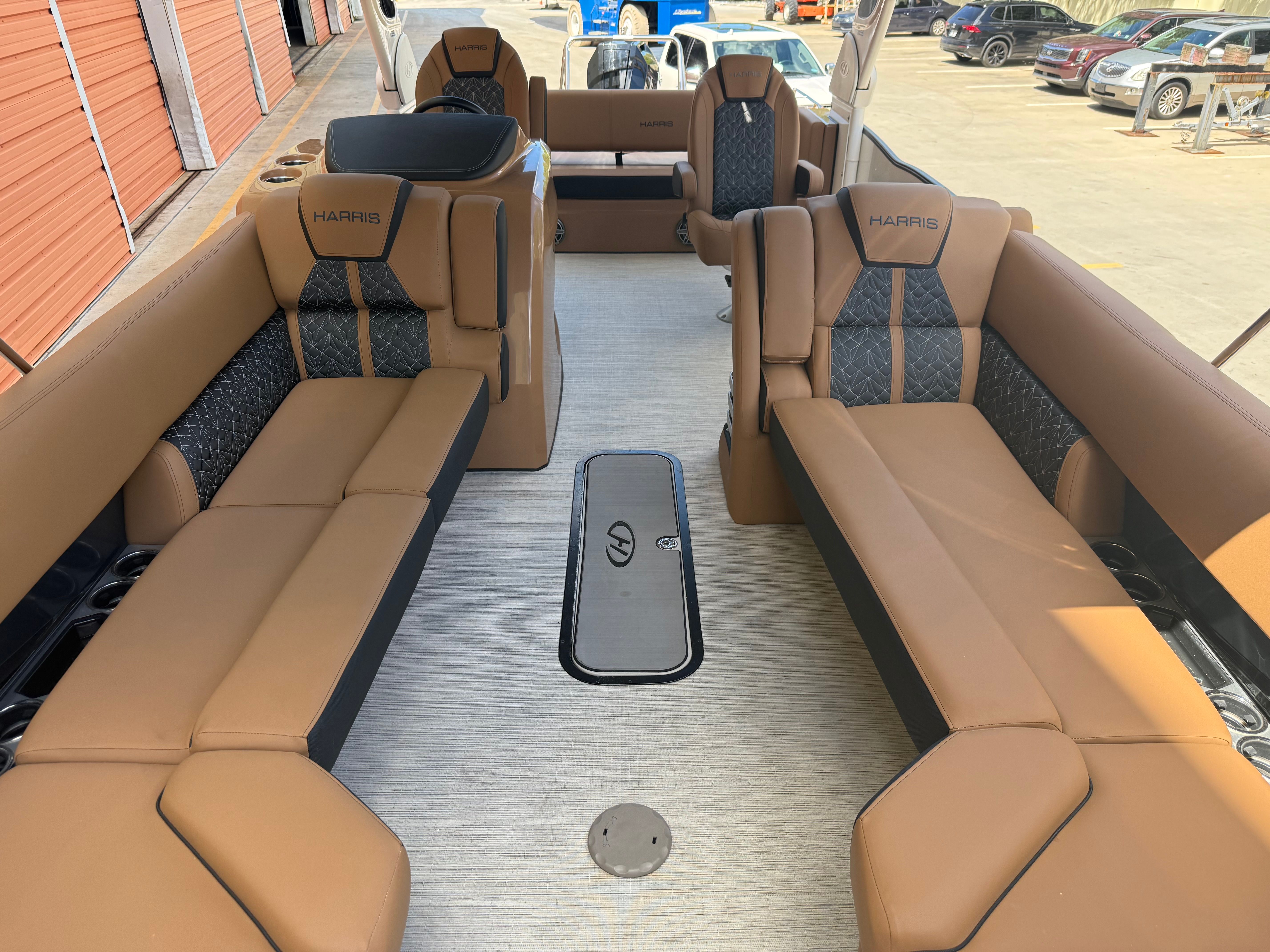 New to the market (9/2025), this 2024 Harris Grand Mariner 250 does not disappoint!! She is powered by a Mercury 350L V10 Verado with only 38 HOURS. She has a Collapsible Tower with Power Lift...press of a button at the Helm. Her Chestnut Brown upholstery with ONYX accents is stunning. She has double Captains Chairs with U-Lux (Hiback) and elevated Helm. Operating this GEM is extremely smooth with her Mercury Power Assist Steering.