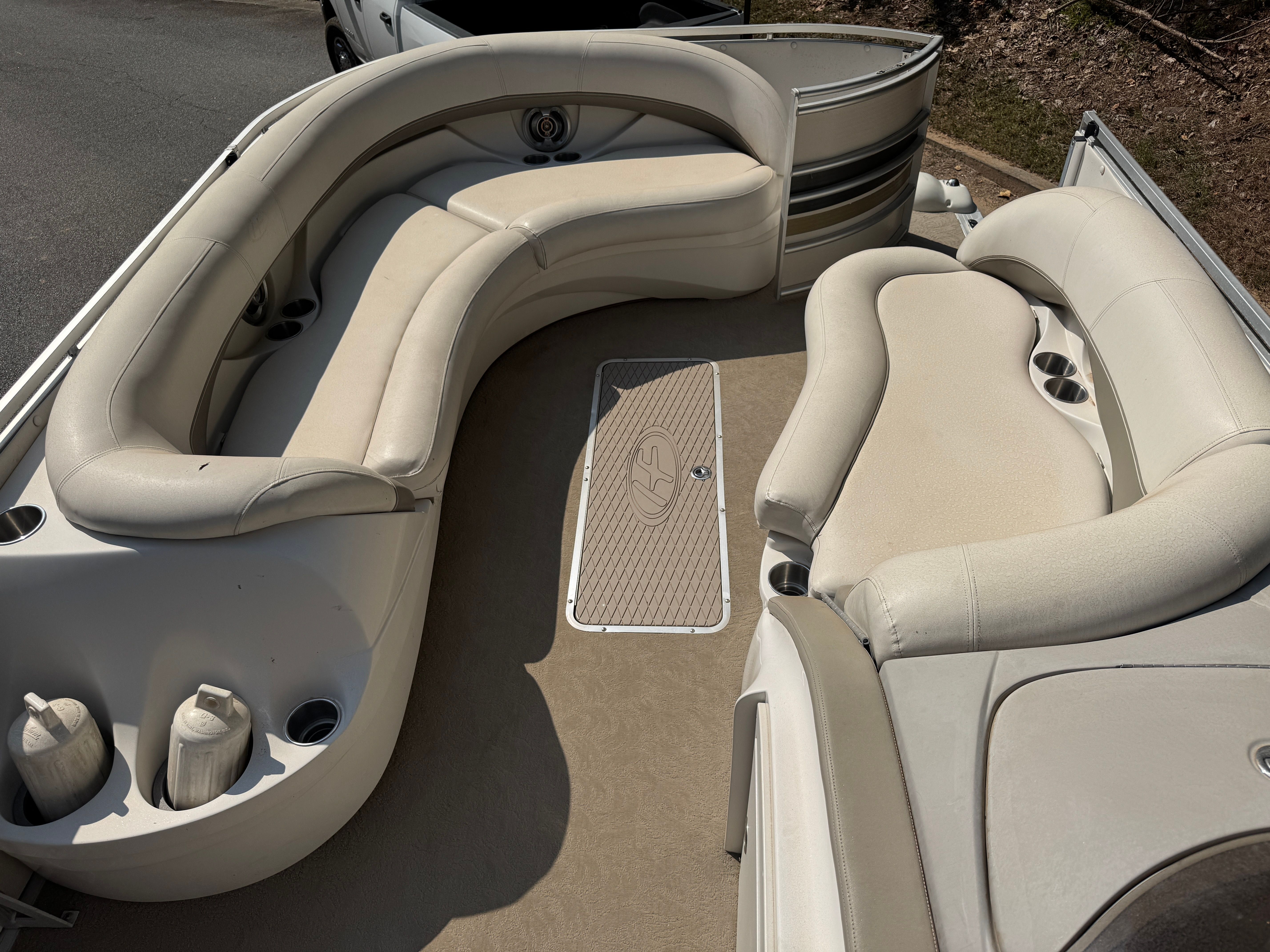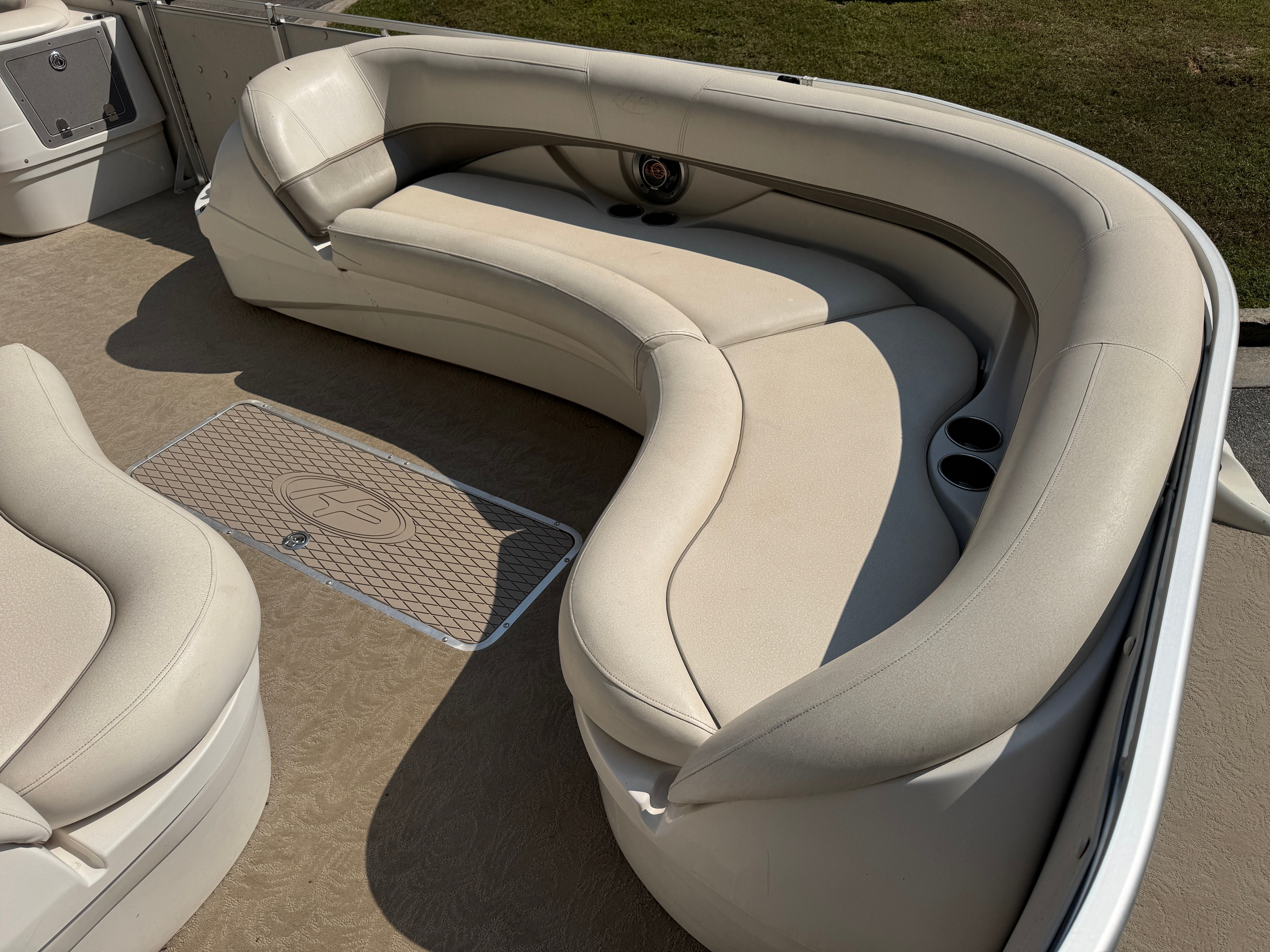 Under the hood, the Harris Royal Heritage 250 is powered by a single engine boasting an impressive 250 horsepower. With only 400 engine hours, this pontoon boat for sale has plenty of life left to deliver thrilling rides and smooth handling. The robust engine ensures reliable acceleration and steady cruising, making it easy to navigate lakes, rivers, and coastal waters. Whether you’re towing water toys or simply enjoying a brisk ride, the Royal Heritage 250’s performance capabilities stand out among used pontoon boats.