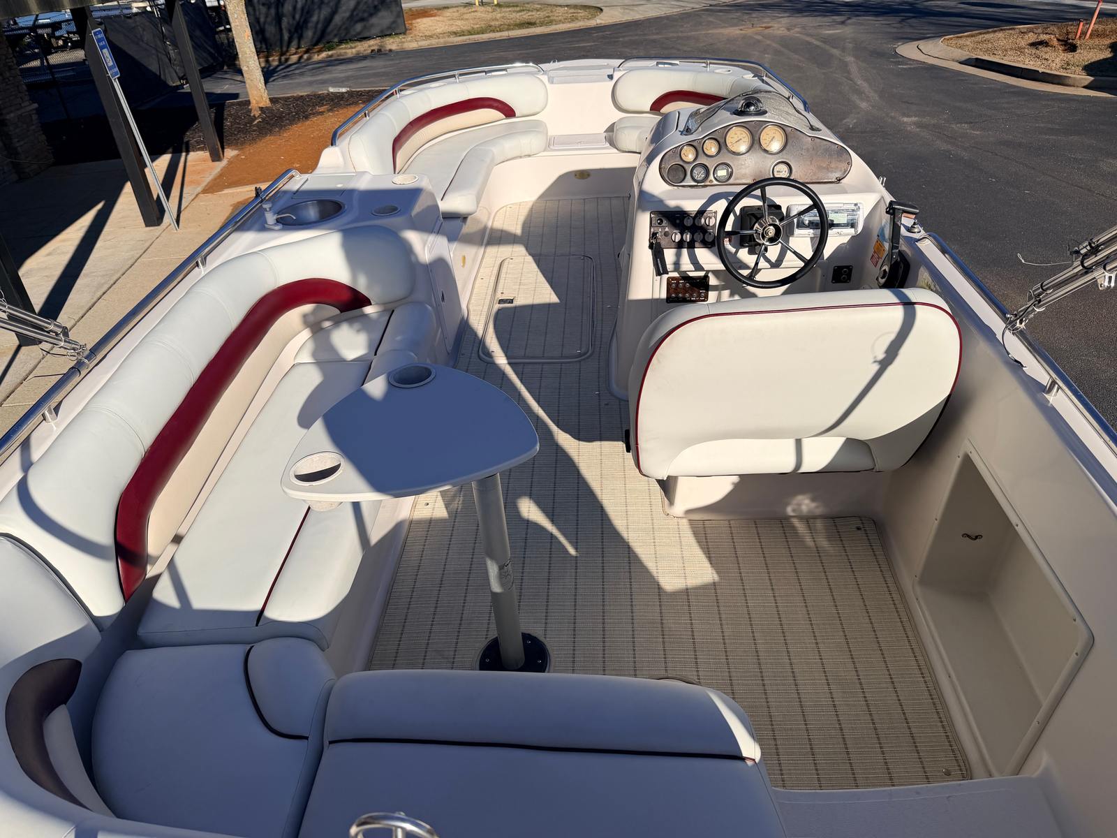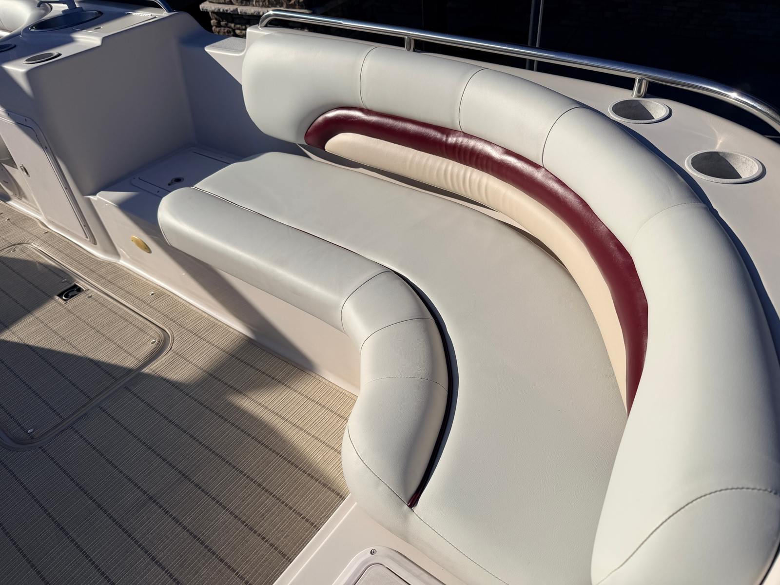 Powered by a single engine with 130 horsepower and 577 engine hours, the Hurricane Fun Deck 232 GS delivers a smooth and responsive ride. The engine’s proven reliability ensures that you can count on consistent performance, whether you are cruising at a leisurely pace or picking up speed for watersports activities. The 130-horsepower engine provides just the right balance of power and efficiency, making it easy to navigate lakes, rivers, and coastal waters with confidence.With its well-maintained engine, this deckboat boat for sale offers peace of mind for both new and experienced boaters. The manageable horsepower makes it accessible for those who are new to boating, while still offering enough power to satisfy more seasoned enthusiasts. The engine’s 577 hours reflect its history of use and care, indicating that it has been enjoyed but not overworked, and is ready for many more seasons of fun.
