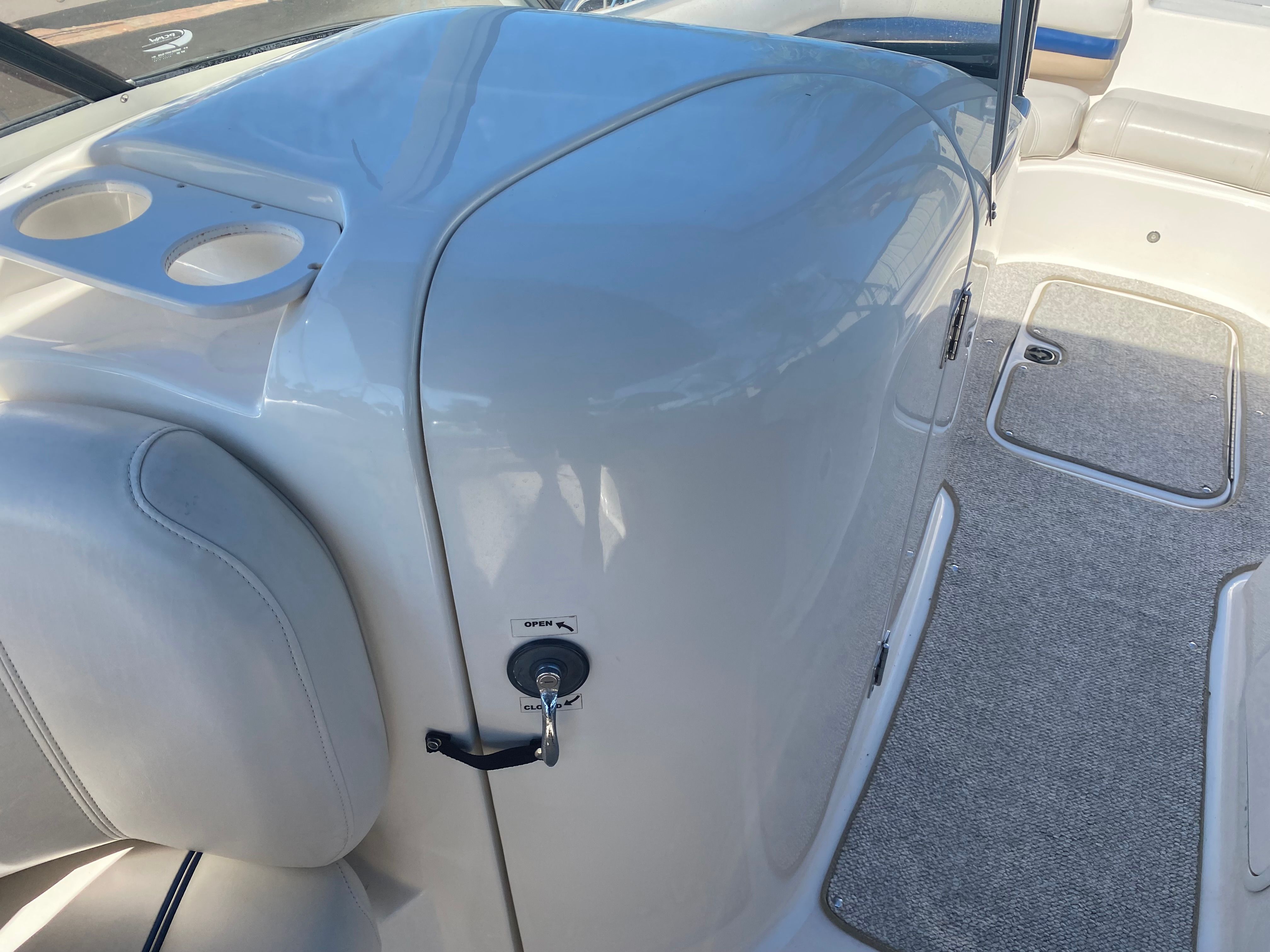 Powering the Hurricane Sundeck 237 is a robust single engine with 225 horsepower and 723 engine hours. This powerful setup ensures that you have all the muscle you need for exhilarating rides, whether you are cruising across the lake, towing water toys, or heading out for a day of fishing. The engine’s reliable performance delivers smooth acceleration and responsive handling, making it easy to navigate through various water conditions. With its impressive horsepower, this bowrider boat for sale offers the perfect blend of speed and efficiency, allowing you to make the most of every outing.