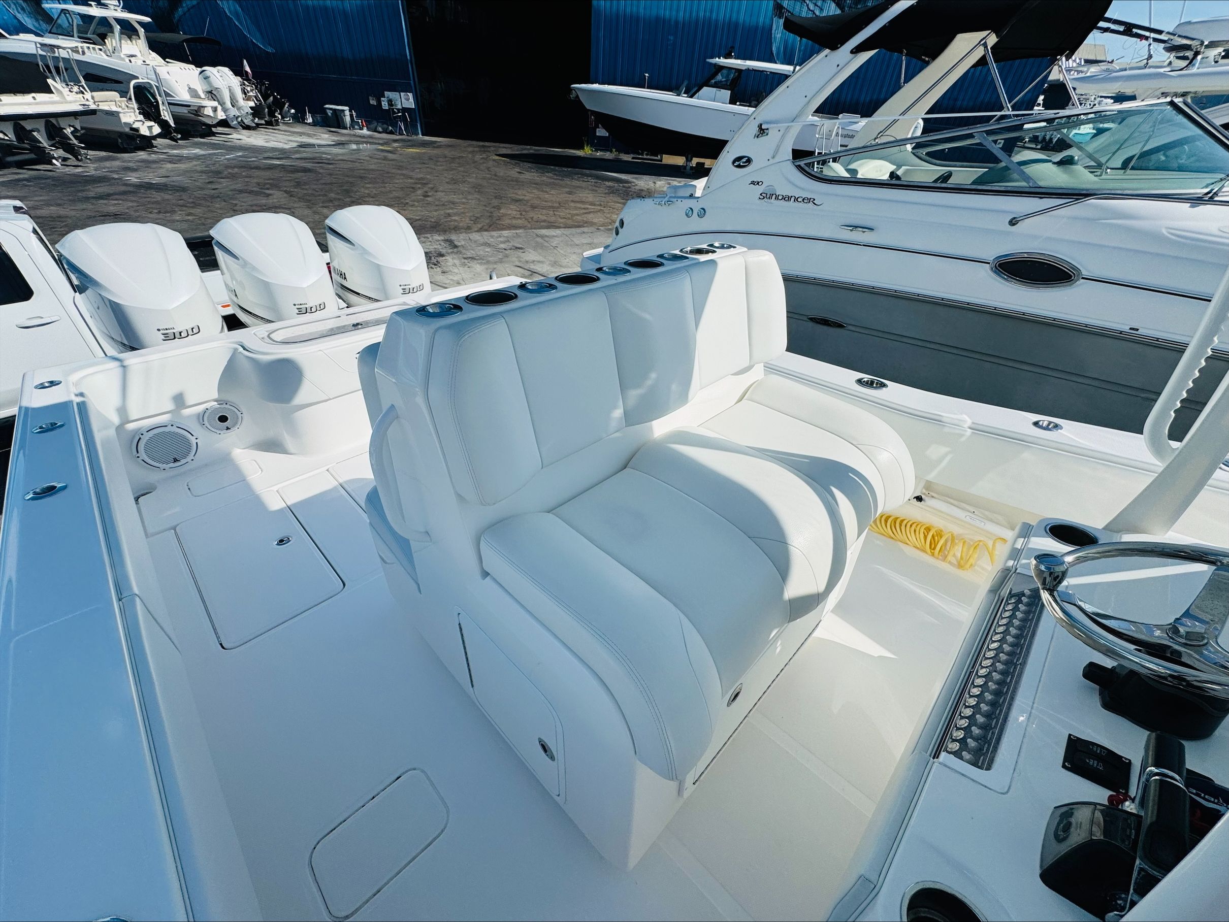 Equipped with three powerful engines delivering a combined 900 horsepower, the Invincible 36 Open Fisherman is built for speed and agility. With only 585 engine hours, these motors have plenty of life left, offering reliable performance for years to come. Whether you’re chasing game fish offshore or cruising along the coastline, this Center Console boat responds with impressive acceleration and smooth handling. The triple-engine setup ensures you have the power to tackle rough waters, reach distant fishing grounds, and enjoy exhilarating rides with confidence.