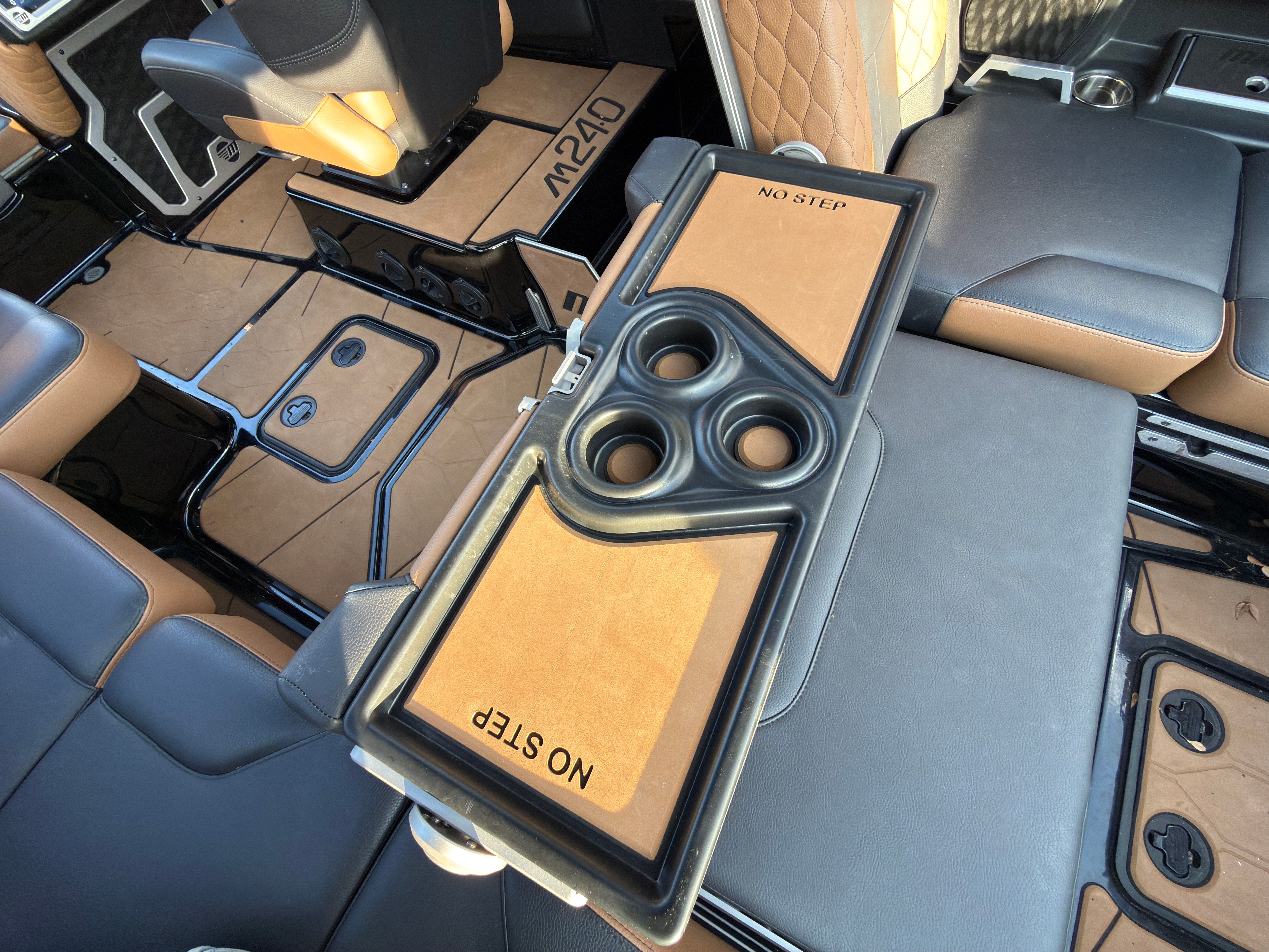 At the heart of the Malibu M240 is a single, high-performance engine boasting an impressive 606 horsepower. This powerhouse delivers exceptional acceleration, smooth handling, and the torque needed to create massive wakes and waves for all your favorite water sports. Whether you’re wakeboarding, waterskiing, or simply enjoying a fast-paced cruise, the M240’s engine ensures a responsive and thrilling ride every time. With only 119 engine hours, you can trust in its reliability and longevity, making this Ski & Wakeboard boat for sale a smart investment for years of aquatic adventures.