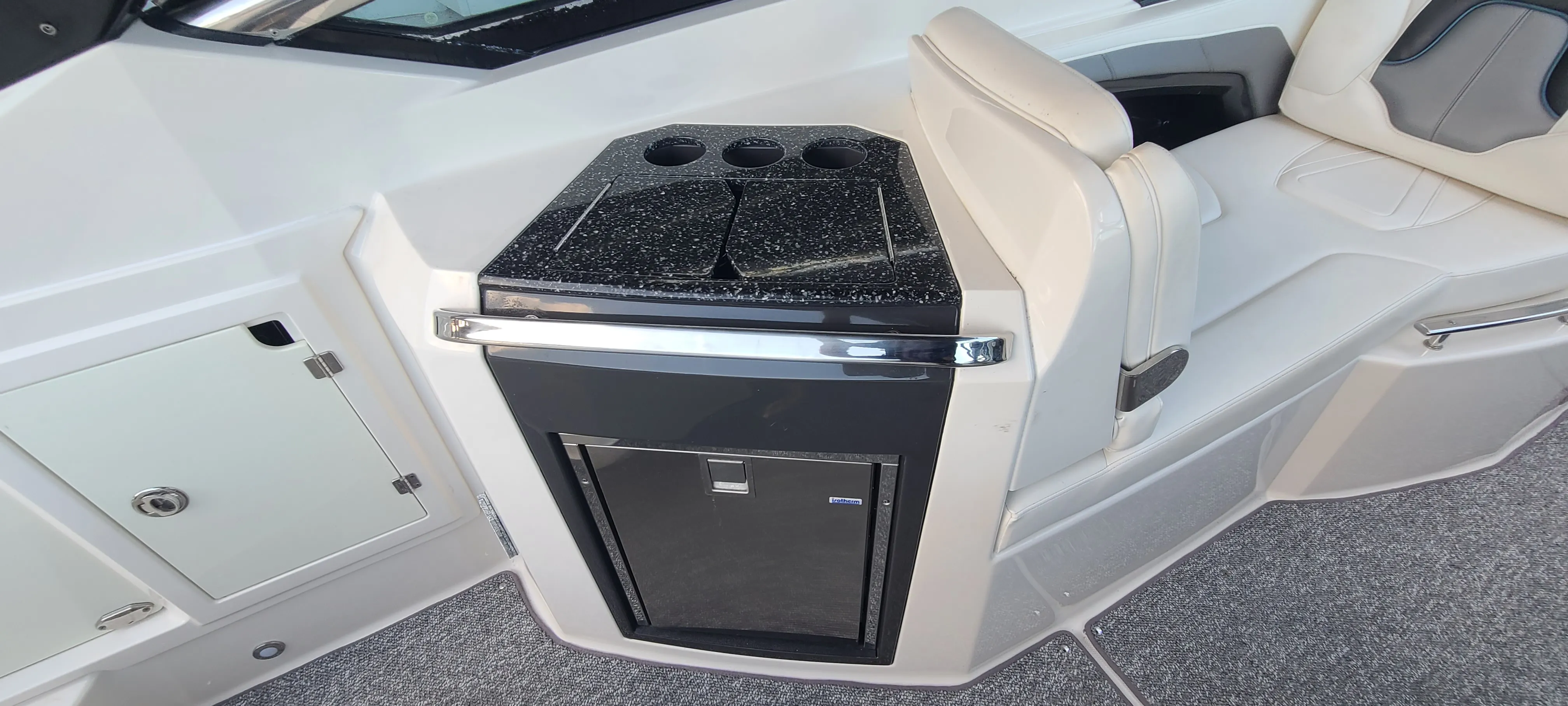 Practicality is a hallmark of the Monterey 328SS. The thoughtful storage options allow you to keep the deck clutter-free, making it easy to move around and enjoy every inch of space. Docking is a breeze thanks to the responsive handling and dual engines, giving you confidence in tight marinas or busy docks. The efficient design helps maximize fuel economy, so you can spend more time on the water and less time refueling.The durable construction and quality materials ensure that this bowrider boat for sale is built to last, providing peace of mind for years to come. Whether you are planning a weekend getaway, a day trip with friends, or a spontaneous adventure, the 328SS is ready to deliver a memorable experience every time.
