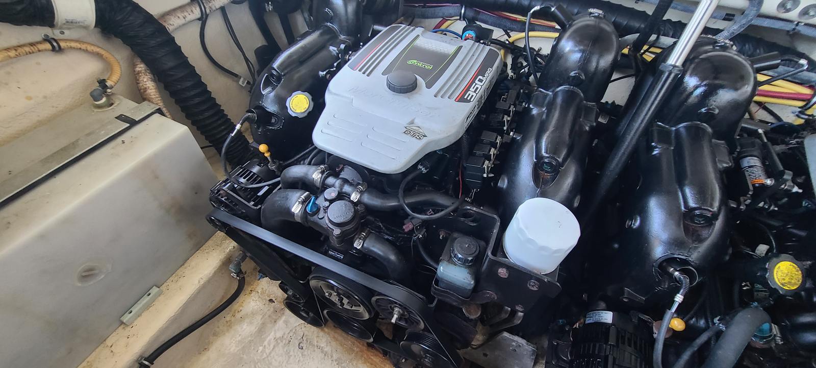 Power and performance are at the heart of the Monterey 328SS. Equipped with twin engines delivering a combined 600 horsepower, this bowrider is built to impress. Whether you are cruising along the coastline, pulling water toys, or making quick trips between destinations, the 328SS offers exhilarating acceleration and smooth handling. With 710 engine hours, these engines have been well-maintained and are ready to provide many more seasons of reliable service. The dual engine setup not only enhances speed and agility but also offers added confidence and control, making every outing a pleasure.