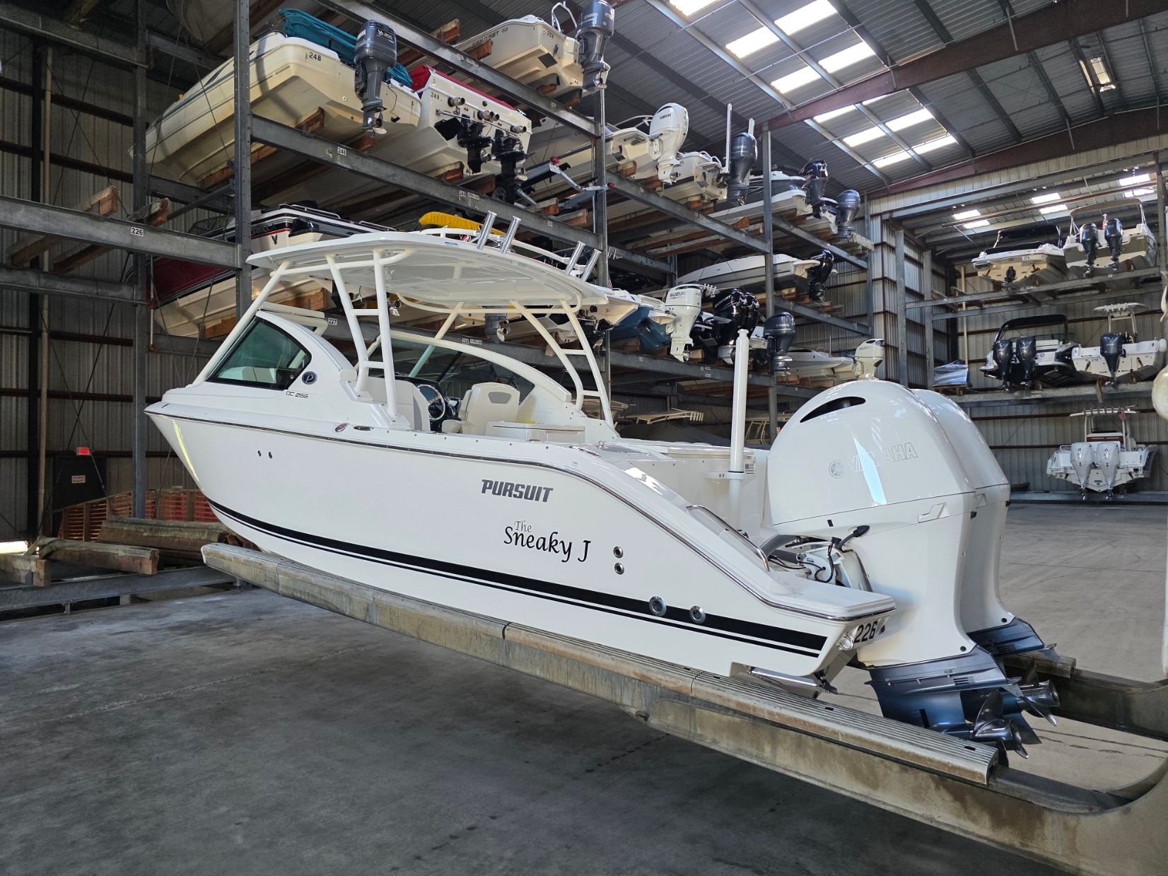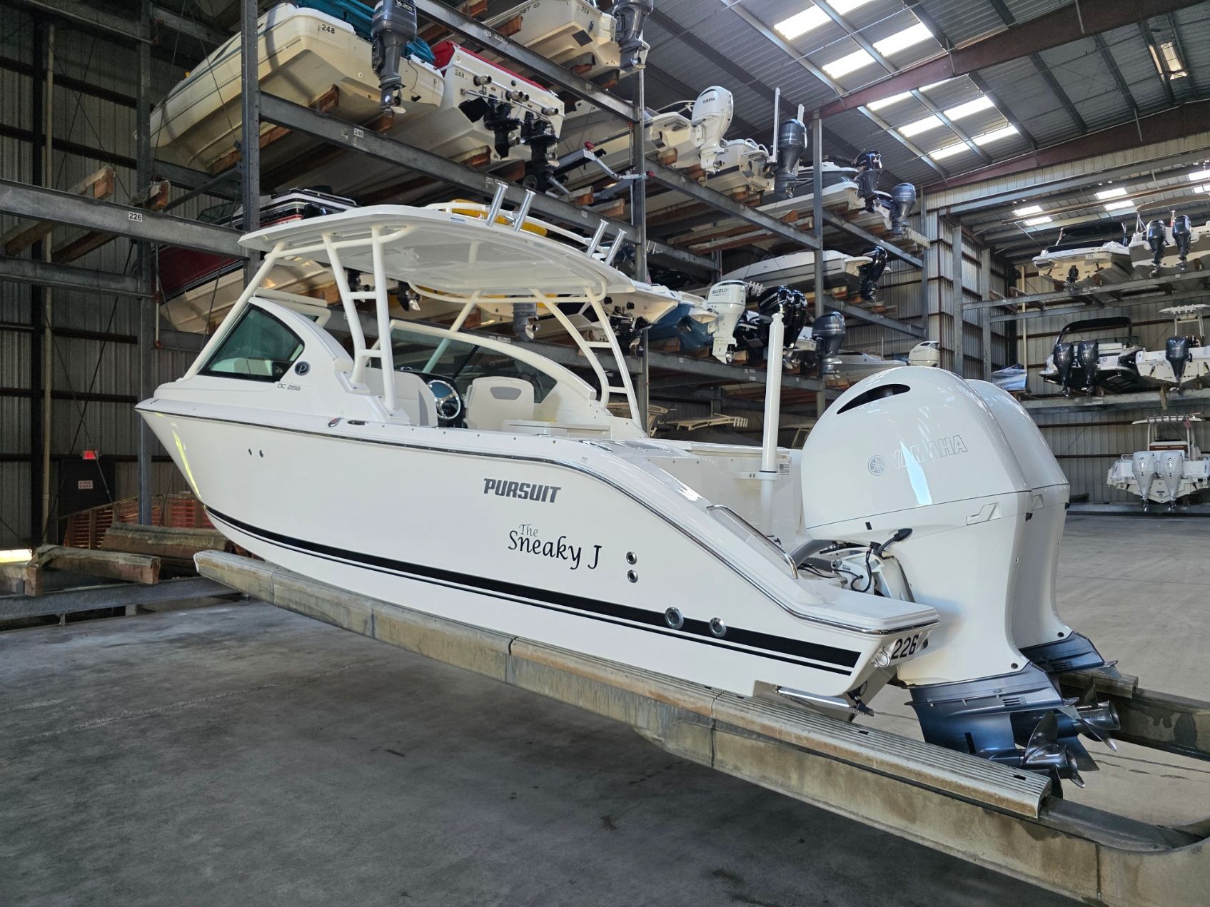 The Pursuit DC 266 Dual Console boat is thoughtfully designed to maximize comfort, convenience, and versatility. Its spacious deck layout allows for easy movement and socializing, while the dual console configuration provides protection from the elements and flexible seating options. The boat’s generous length of 27.33 feet ensures plenty of room for passengers, gear, and recreational equipment. Pursuit’s attention to detail is evident in every aspect of the DC 266, from the quality of the materials to the ergonomic design of the helm and seating areas. With two powerful engines and a robust hull, this boat is ready to tackle a variety of activities, from fishing and water sports to leisurely cruises and entertaining guests.