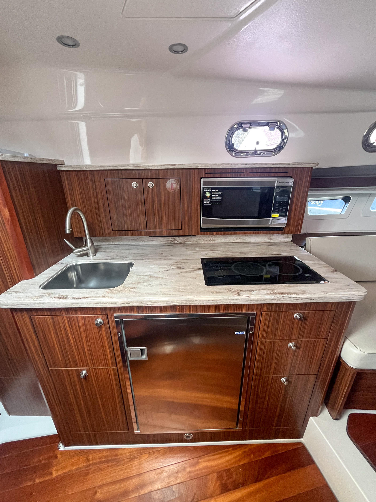 The Pursuit OS 355 is packed with features that enhance both its functionality and comfort. Its generous length of nearly 38 feet provides a spacious deck and cabin area, allowing for effortless movement and relaxation. The cruiser’s design incorporates high-quality materials and finishes, reflecting Pursuit’s commitment to excellence. The layout is thoughtfully arranged to maximize both social and private spaces, making it ideal for entertaining guests or enjoying quiet moments on the water. With its dual engines, robust horsepower, and low engine hours, this Pursuit boat for sale is ready for countless memorable journeys.
