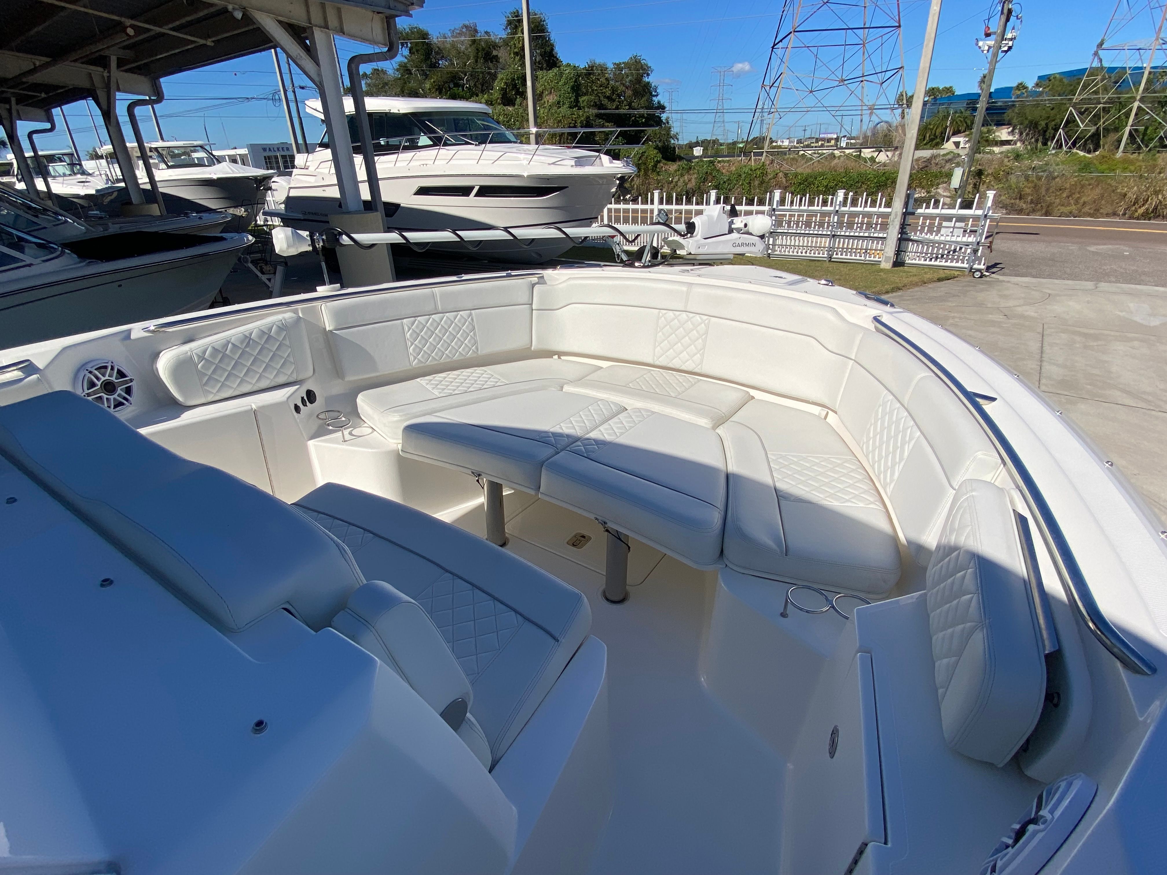 The versatility of the Pursuit S 328 Center Console makes it suitable for a wide range of activities. For families, it’s the perfect platform for memorable days on the water, whether you’re cruising to a secluded beach, enjoying water sports, or simply relaxing in the sun. Anglers will appreciate the unobstructed deck space and easy access to all areas of the boat, making it a great choice for both casual and serious fishing trips. If luxury getaways are more your style, the S 328’s comfortable seating and elegant design create an inviting atmosphere for entertaining friends or enjoying a romantic sunset cruise. No matter how you choose to spend your time on the water, this Pursuit boat for sale is ready to deliver unforgettable experiences.