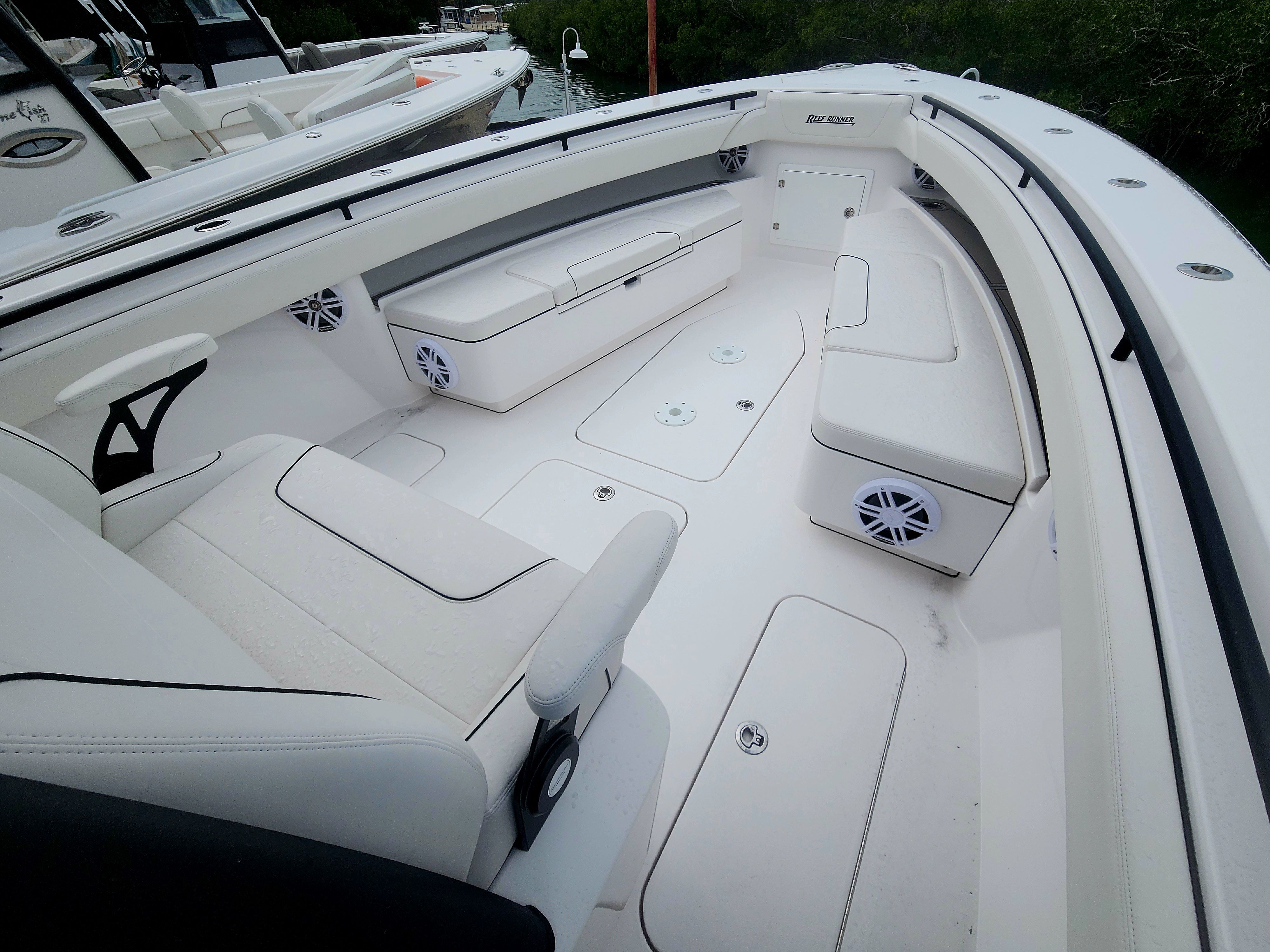 The 2025 Reef Runner 340 is a 34-foot Center Console boat that commands attention both at the dock and on the water. Built for those who appreciate quality craftsmanship and innovative design, this used Reef Runner boat for sale is in excellent condition, with only 50 engine hours logged. Its spacious layout and modern aesthetics make it a versatile platform for a variety of activities, from fishing expeditions to leisurely cruises. The Reef Runner 340’s streamlined hull and ergonomic deck configuration ensure smooth navigation and optimal comfort for all passengers.