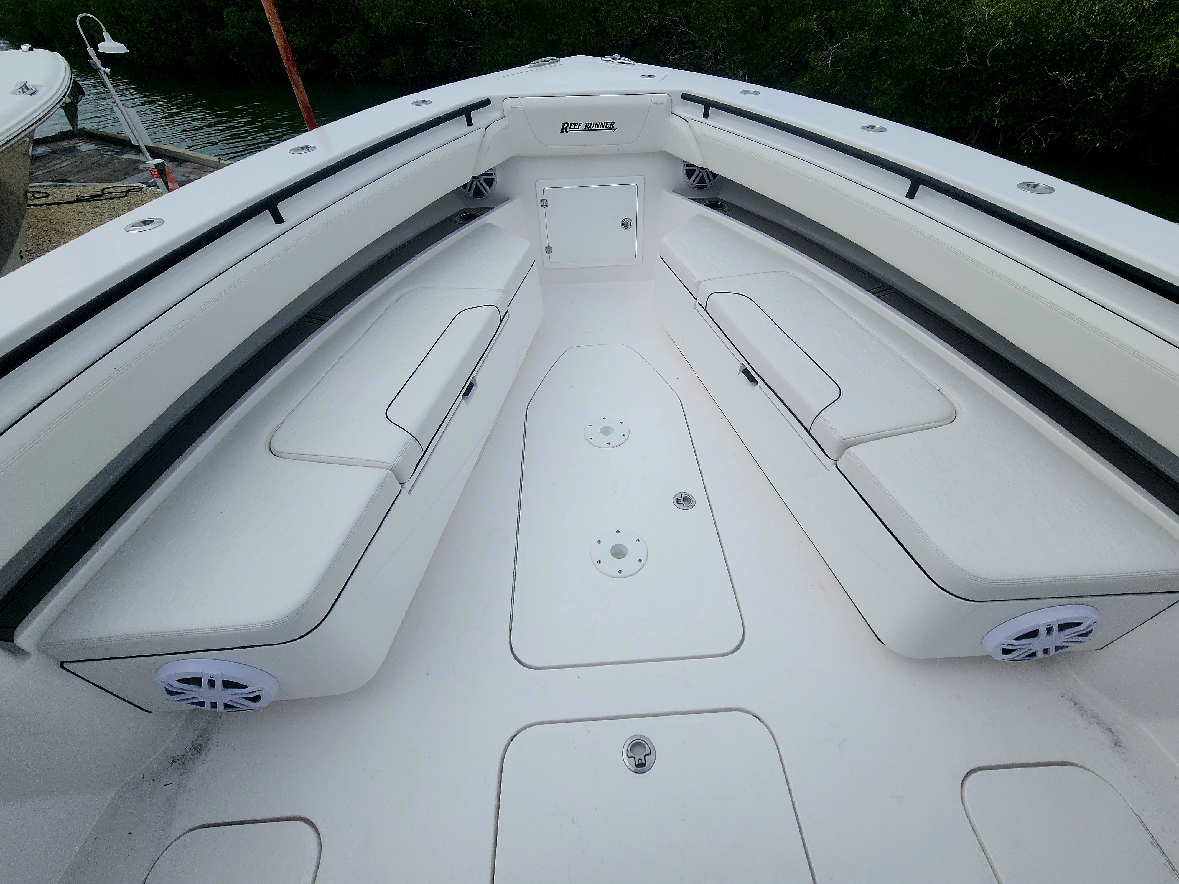 Powering the Reef Runner 340 are twin engines, delivering a combined 800 horsepower. This formidable setup provides exhilarating acceleration, impressive top speeds, and responsive handling, making every journey a thrill. With only 50 engine hours, these motors are barely broken in, offering reliability and longevity for years to come. The dual-engine configuration enhances maneuverability, allowing for precise control whether you’re docking in tight spaces or navigating choppy waters. The Reef Runner 340’s performance pedigree ensures you’ll enjoy a dynamic boating experience, whether you’re chasing fish or cruising with friends and family.