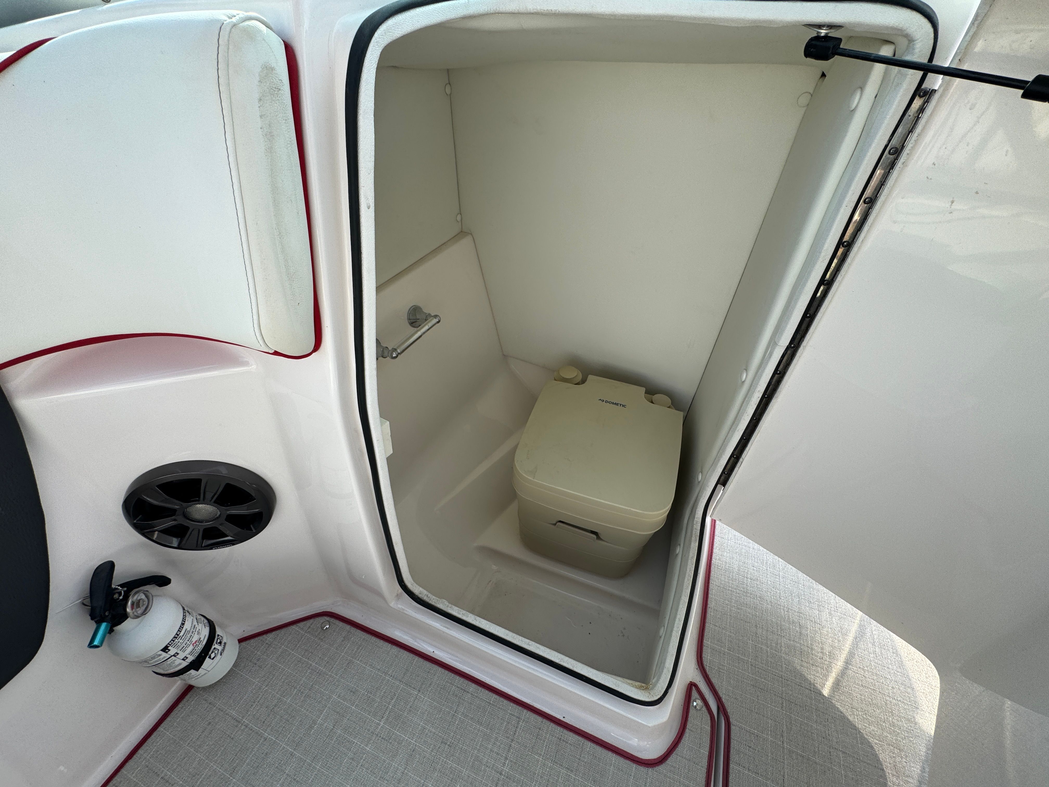 At the heart of the Regal 22 Fasdeck is a powerful single engine delivering an impressive 280 horsepower. This robust engine ensures exhilarating acceleration and smooth cruising, whether you’re gliding across calm lakes or tackling choppier waters. With only 59 engine hours, the performance of this Bowrider remains fresh and reliable, promising many more adventures ahead. The 22 Fasdeck’s hull design is engineered for stability and agility, making it a joy to pilot for both seasoned boaters and those new to the water. Whether you’re towing water toys, racing across the bay, or enjoying a leisurely cruise, the performance capabilities of this Regal boat for sale will not disappoint.