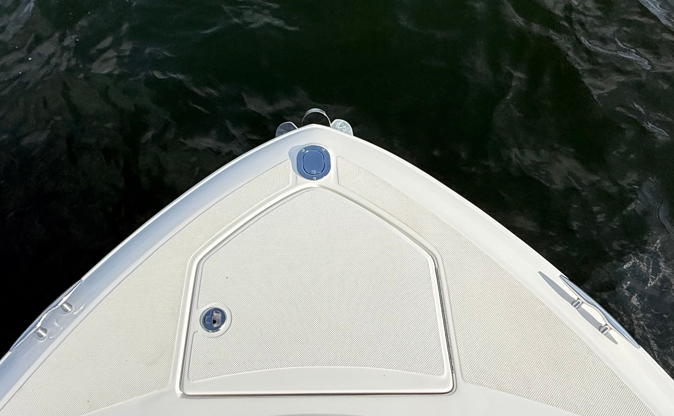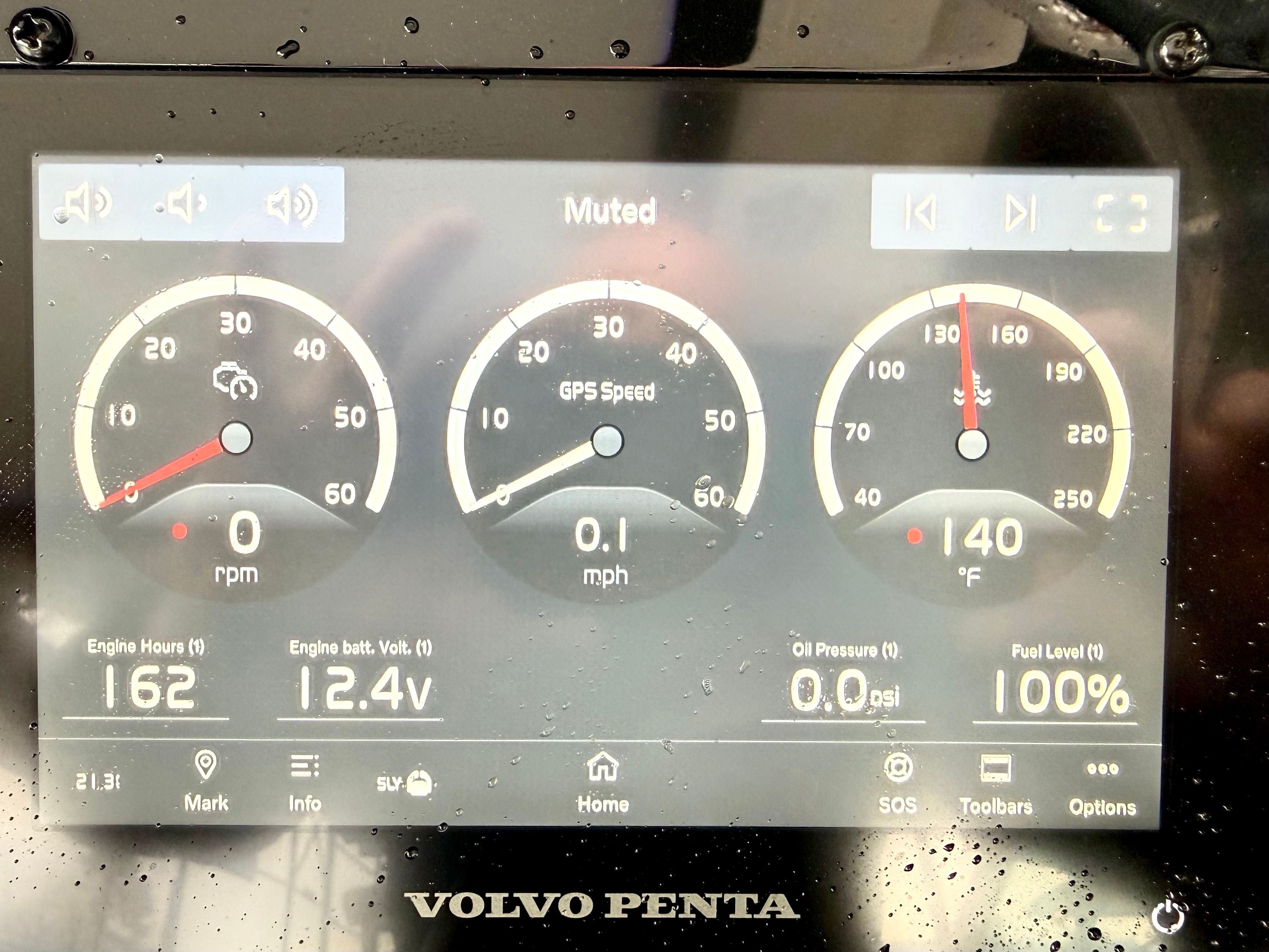 Step aboard and experience the many premium features, including dual 7” Volvo glass cockpit displays for full control and intuitive navigation, a hardtop for shade and style, and comfortable bow and cockpit seating with cockpit sea grass mats. Convenience and safety are built in, from the bow thruster and trim tab indicators to the electric sunshade and automatic fire extinguisher. Anchoring is effortless with the all-chain windlass and included anchor, while fender clips, stainless steel flagpole, and bow and cockpit covers add to the complete package.