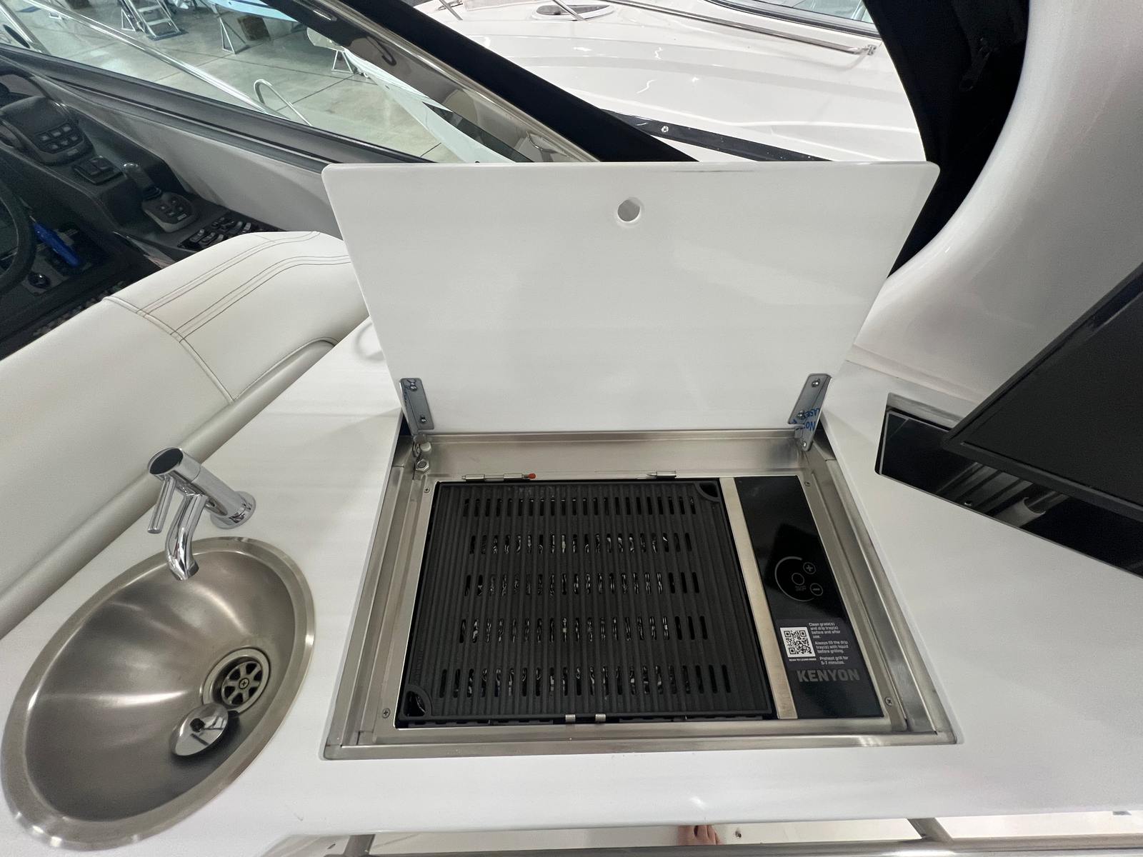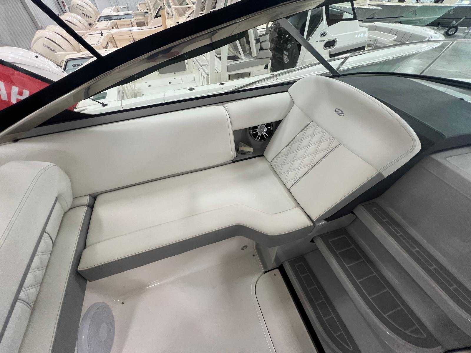 Equipped with twin engines delivering a combined 600 horsepower, the Regal 33 Express promises exhilarating performance and smooth handling. Whether you’re cruising along the coastline or exploring hidden coves, this cruiser boat for sale offers the power and reliability you need for extended journeys and spontaneous getaways. The dual-engine setup enhances maneuverability and responsiveness, allowing you to navigate with confidence in various water conditions.