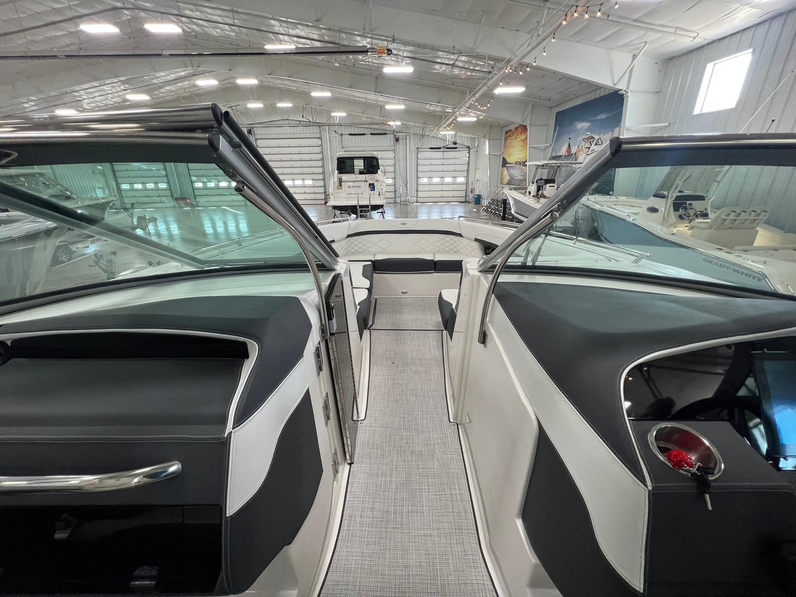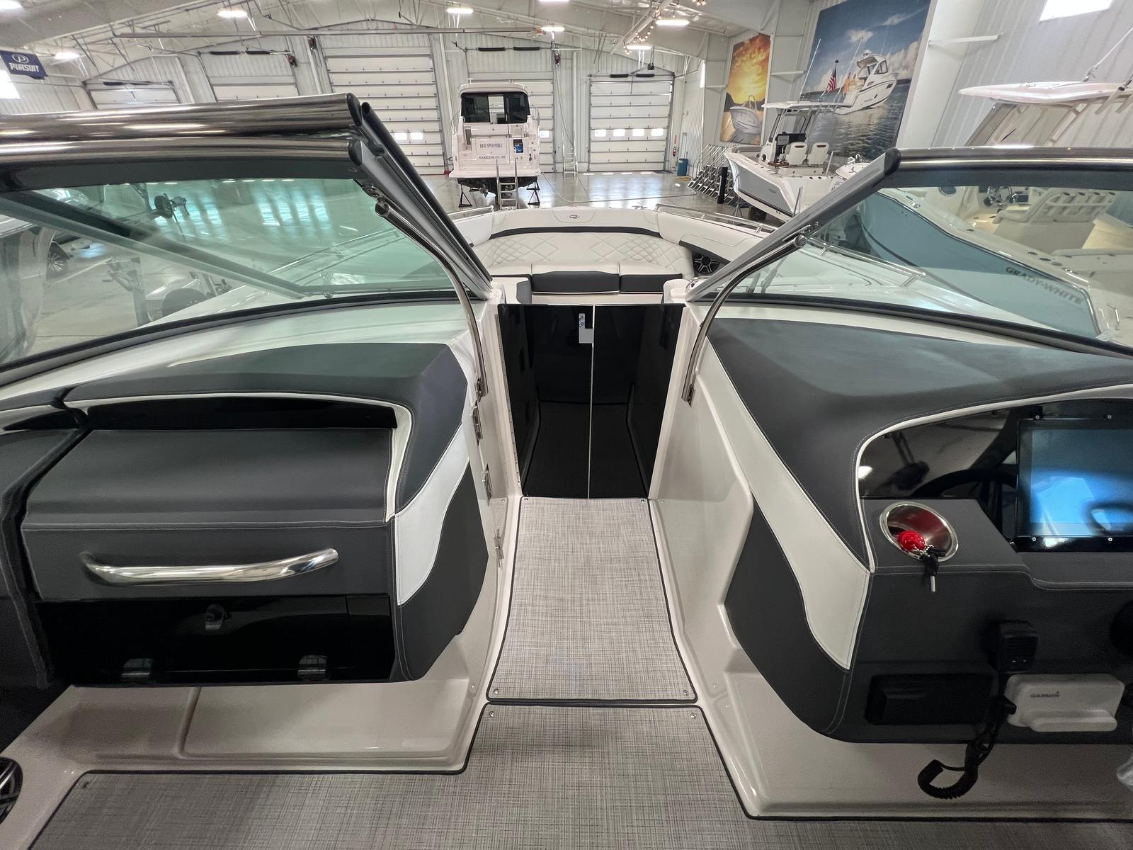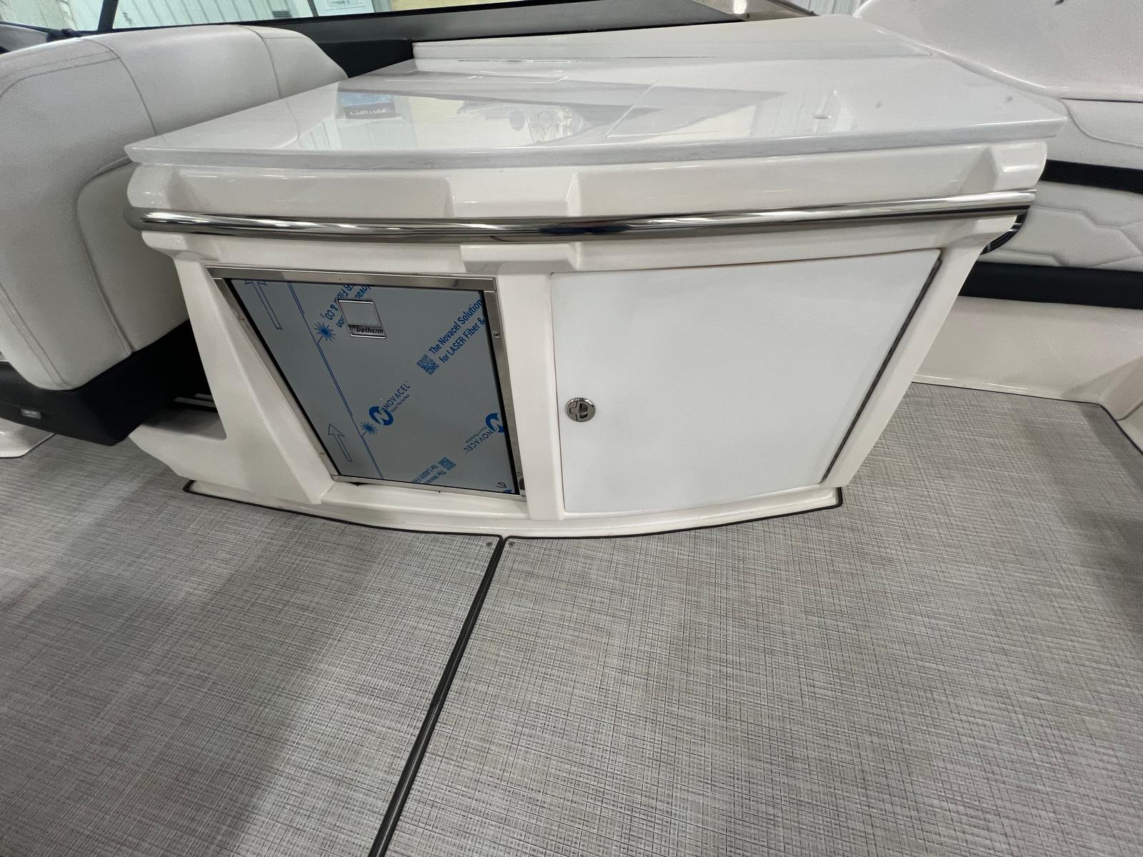 The 2026 Regal 3300 Bowrider is loaded with premium features designed to maximize comfort, convenience, and enjoyment. The Aft Cockpit Electric Sureshade for the hard top provides adjustable shade at the touch of a button, allowing you to relax in comfort no matter the weather. The anchor windlass with all-chain operation simplifies anchoring, giving you peace of mind when you want to stop and enjoy the scenery.Safety is a top priority, with an automatic fire extinguisher system offering added protection for you and your guests. The bow and cockpit covers keep your boat protected from the elements, while the bow walk-thru doors make moving between the bow and cockpit safe and easy. The cockpit refrigerator ensures your favorite refreshments are always within reach, and the cockpit seagrass mat adds a touch of luxury underfoot, enhancing the overall ambiance of the boat.