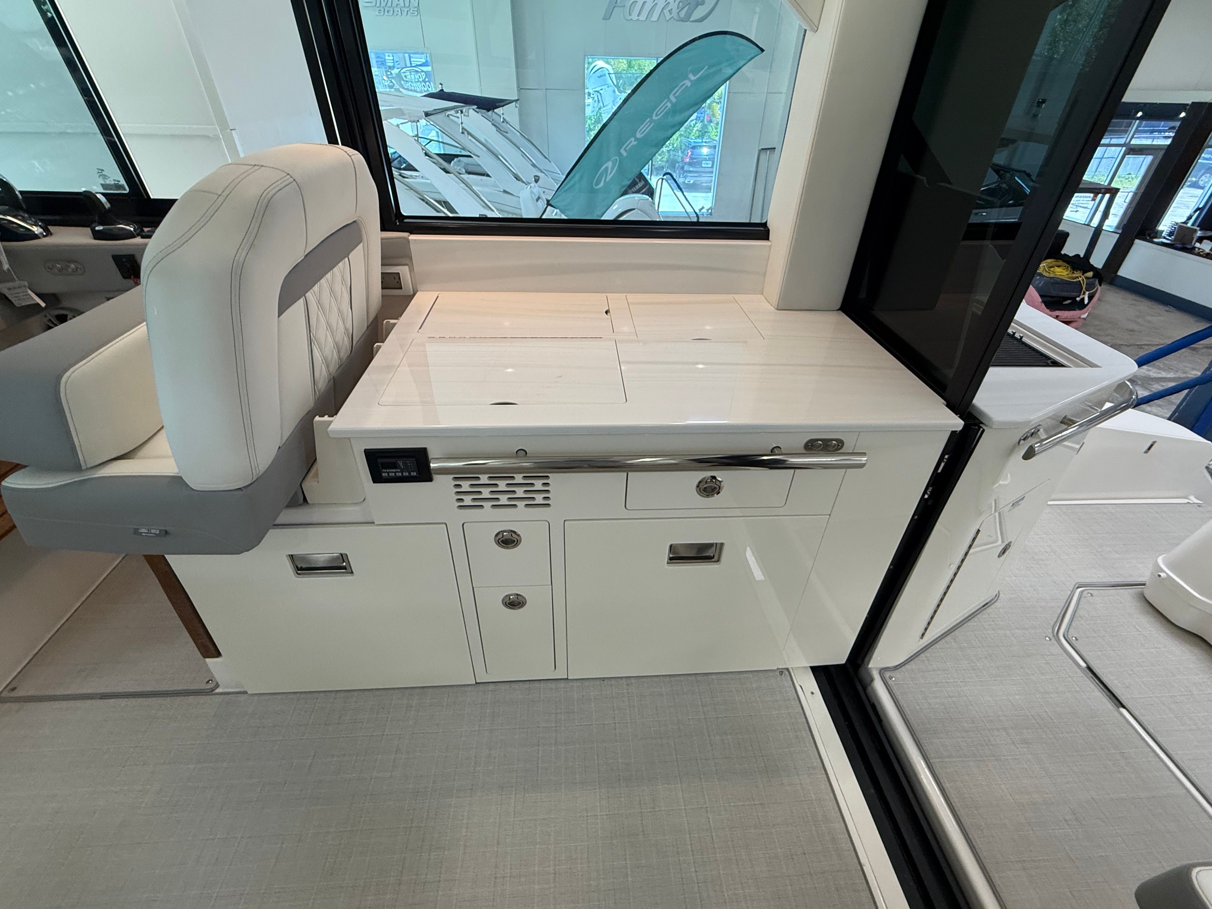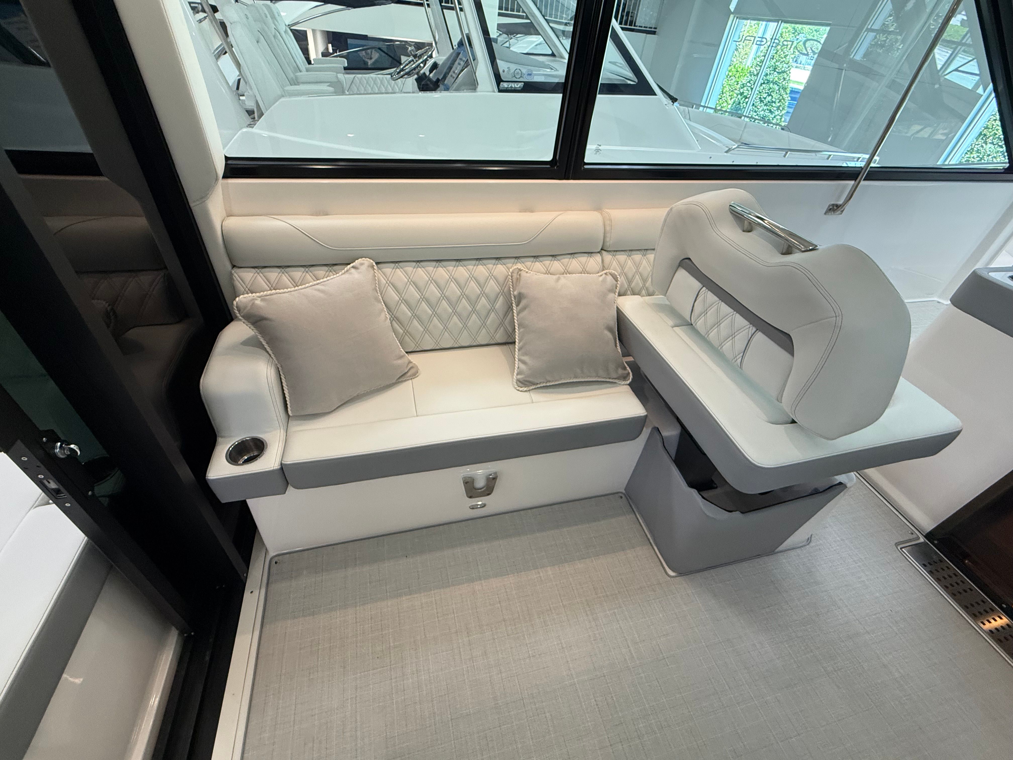 The Regal 36 XO is designed with practicality in mind, making ownership effortless and enjoyable. The yacht’s generous storage options allow you to stow gear, supplies, and personal items with ease, keeping the deck clutter-free and organized. Docking is simplified thanks to the yacht’s responsive handling and advanced navigation systems, ensuring stress-free arrivals and departures.Fuel efficiency is a hallmark of the Regal 36 XO’s engineering, allowing you to spend more time on the water and less time refueling. The onboard generator provides reliable power for all your appliances and electronics, so you can enjoy modern conveniences wherever you go. The durable cockpit upholstery and seagrass mat are easy to maintain, ensuring your yacht remains in pristine condition for years to come.