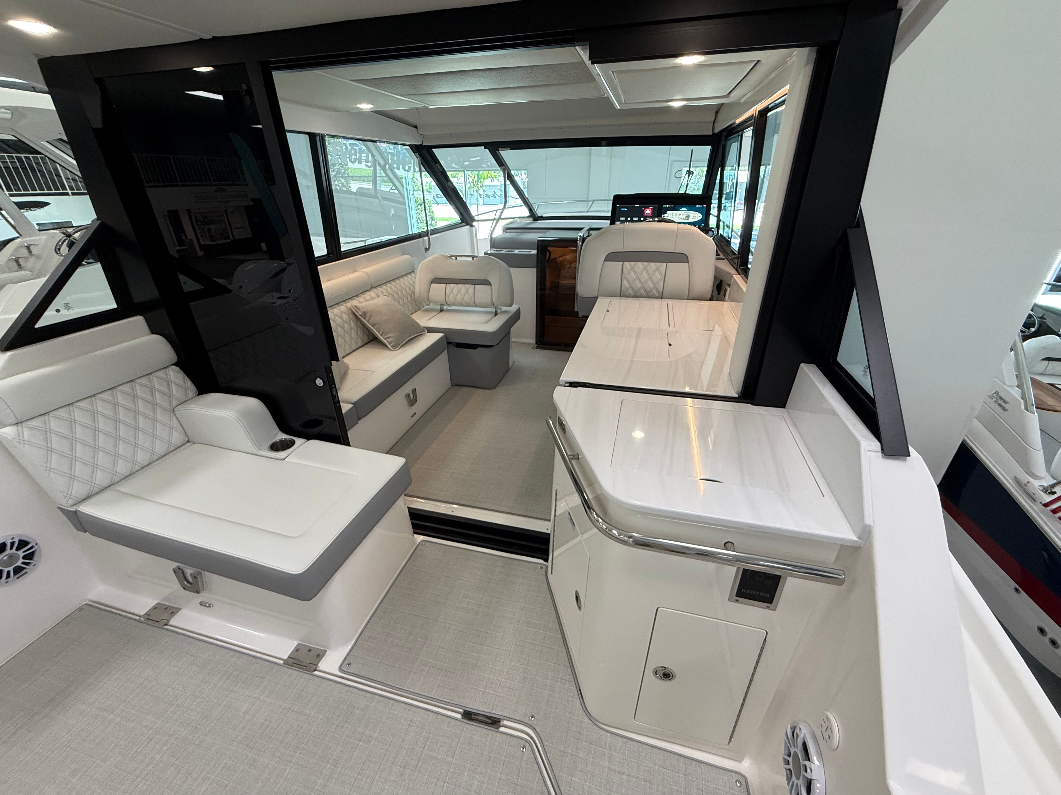 Step aboard the Regal 36 XO and immerse yourself in a world of premium features designed to elevate your boating experience. The Garmin HD Closed Array Radar offers state-of-the-art navigation and safety, allowing you to explore with peace of mind. The Electric Salon Door adds a touch of convenience and sophistication, seamlessly connecting indoor and outdoor spaces. Communication is effortless with the Garmin VHF Radio, ensuring you stay connected wherever your adventures take you.Enjoy uninterrupted comfort with the Diesel 110V Generator, providing reliable power for all your onboard needs. The cockpit is adorned with Titanium upholstery and a Seagrass Mat, creating a luxurious and inviting atmosphere for you and your guests. The Seakeeper 3 Stabilization System ensures a smooth and stable ride, even in choppy waters, so you can relax and enjoy every moment.Set the mood with customizable RGBW Lighting, perfect for evening cruises or lively gatherings. The Pillow Package Neutral adds a touch of elegance and comfort to the interior, while the Bow Sunshade System - Manual offers shade and protection on sunny days. Every detail of the Regal 36 XO is designed to enhance your enjoyment and make every outing memorable.