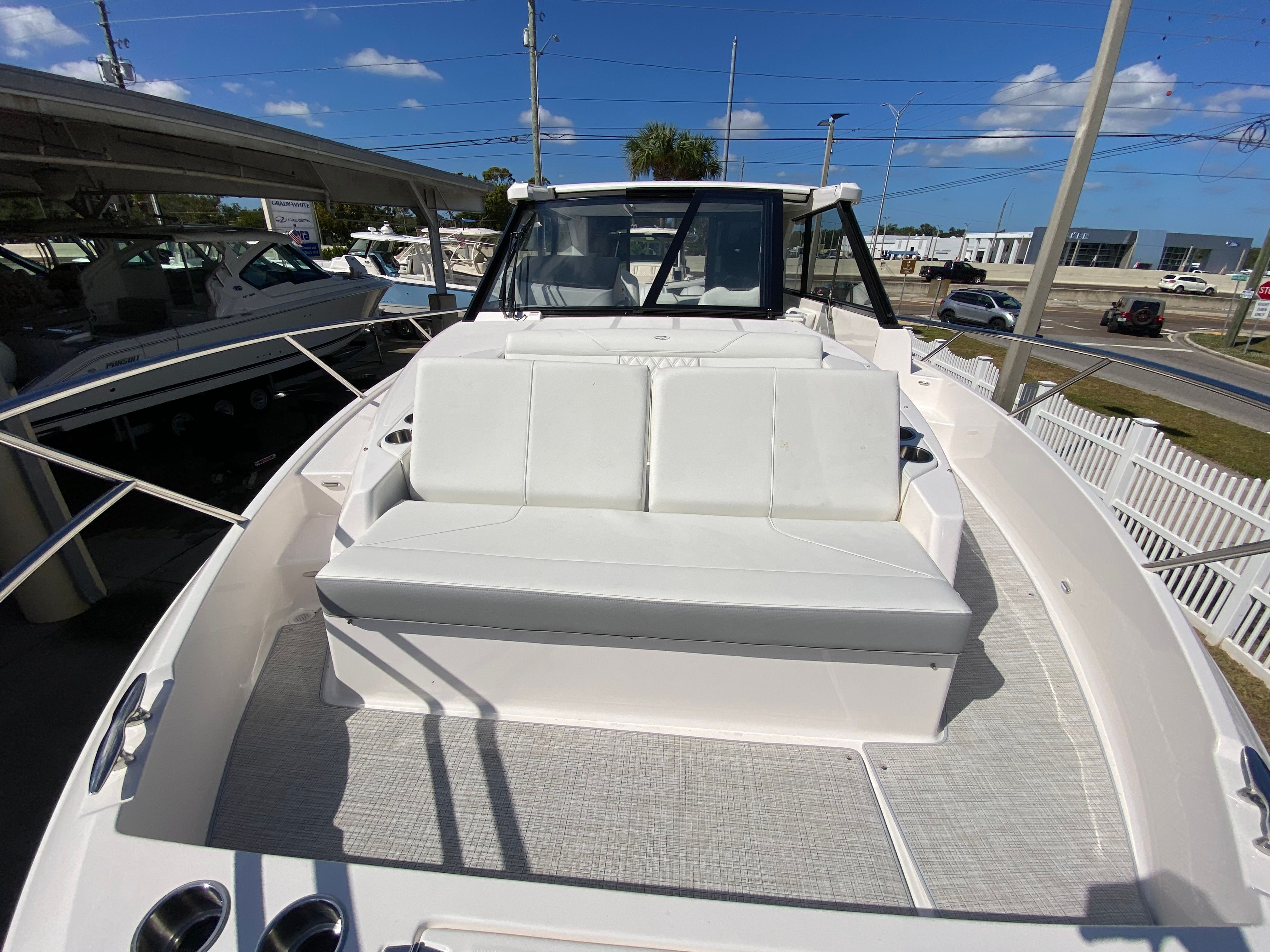 In summary, the 2026 Regal 36 XO is a remarkable yacht boat for sale that combines cutting-edge performance, sophisticated design, and a host of premium features. With its twin Yamaha F450 engines, striking Tahiti Beach White hull, Titanium interior, and thoughtful additions like the manual bow sunshade system, transom seat covers, windshield privacy cover, and black canvas, this Regal boat for sale is truly in a class of its own. Whether you're seeking adventure, relaxation, or a stylish platform for entertaining, the Regal 36 XO delivers on every front. Don't miss the opportunity to own this exceptional yacht—contact your dealer today to learn more and start your next adventure on the water.