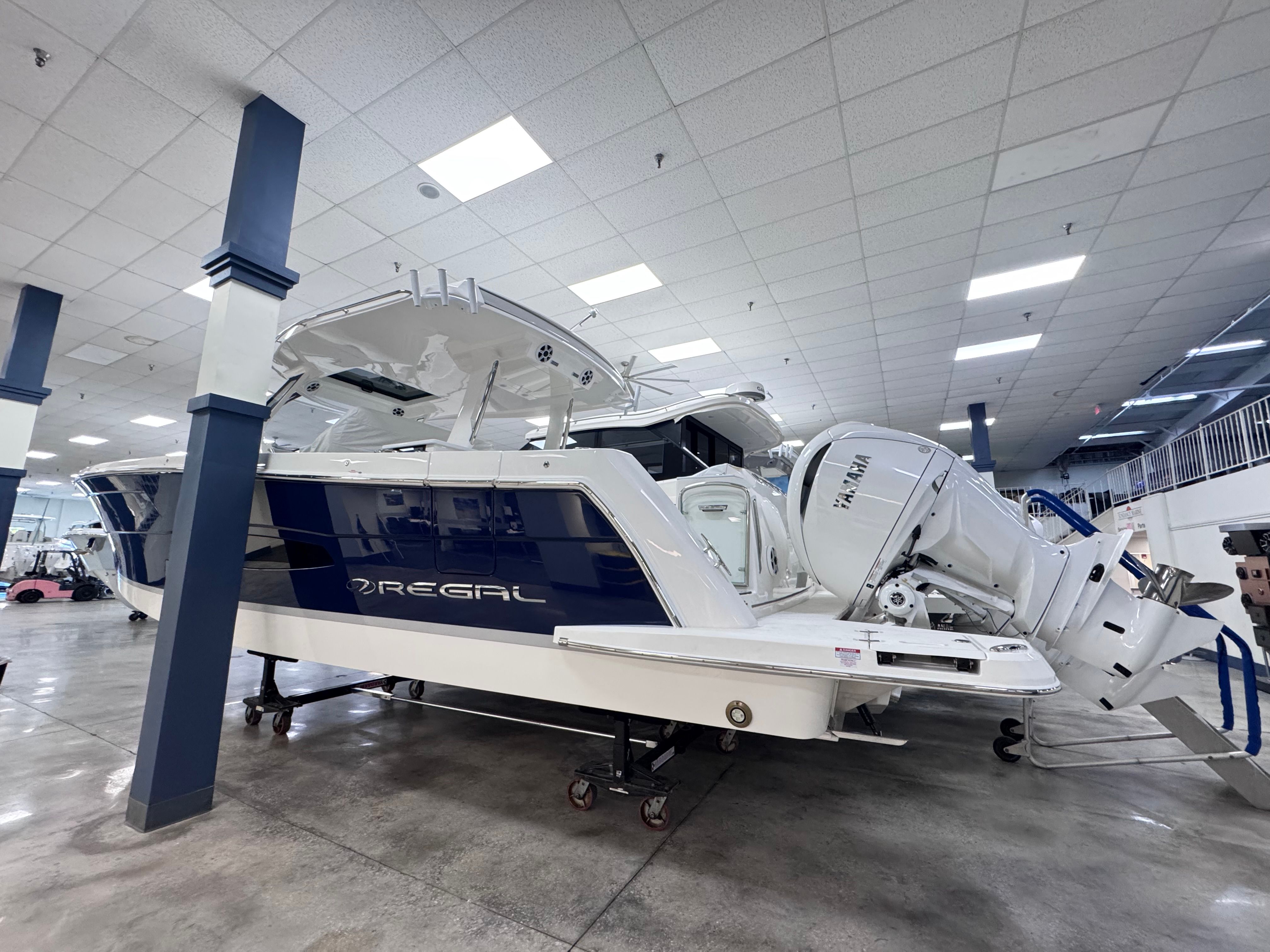 At the heart of the Regal 38 SAV’s exhilarating performance are three powerful Yamaha 300HP engines, delivering a combined 900 horsepower. This triple engine configuration ensures smooth, responsive handling and impressive acceleration, making it easy to navigate open waters or cruise along the coastline. The integrated steering system enhances maneuverability, allowing for precise control whether you are docking in a busy marina or exploring secluded coves. With this level of power and agility, the Regal 38 SAV is designed to satisfy both thrill-seekers and those who appreciate effortless cruising.