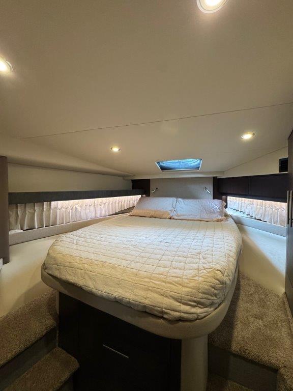 The Engines, PODs and Generator were serviced in May of 2025 and the bottom was freshly painted in June 2023. She is stored under a covered dock and shows exceptionally well.