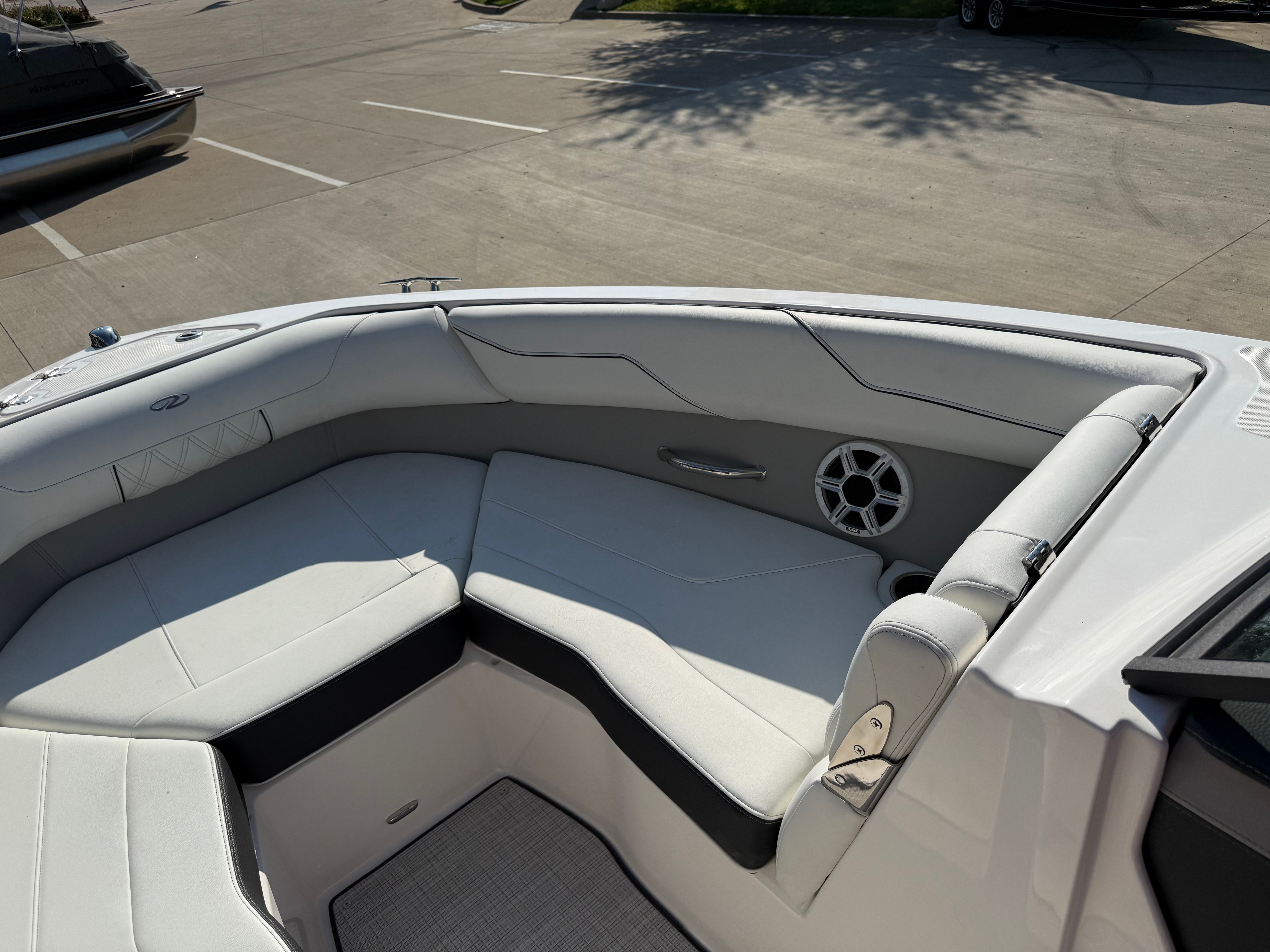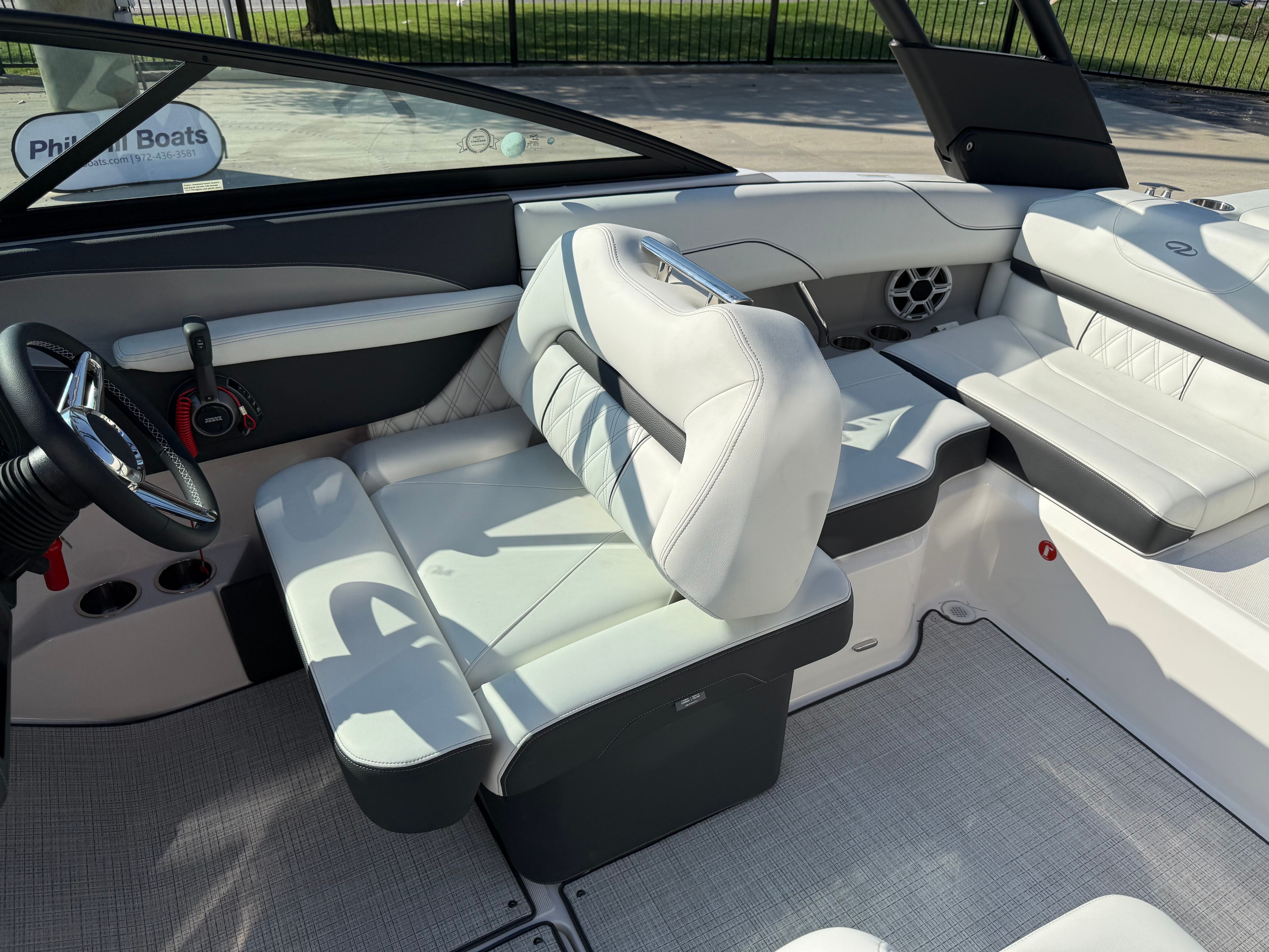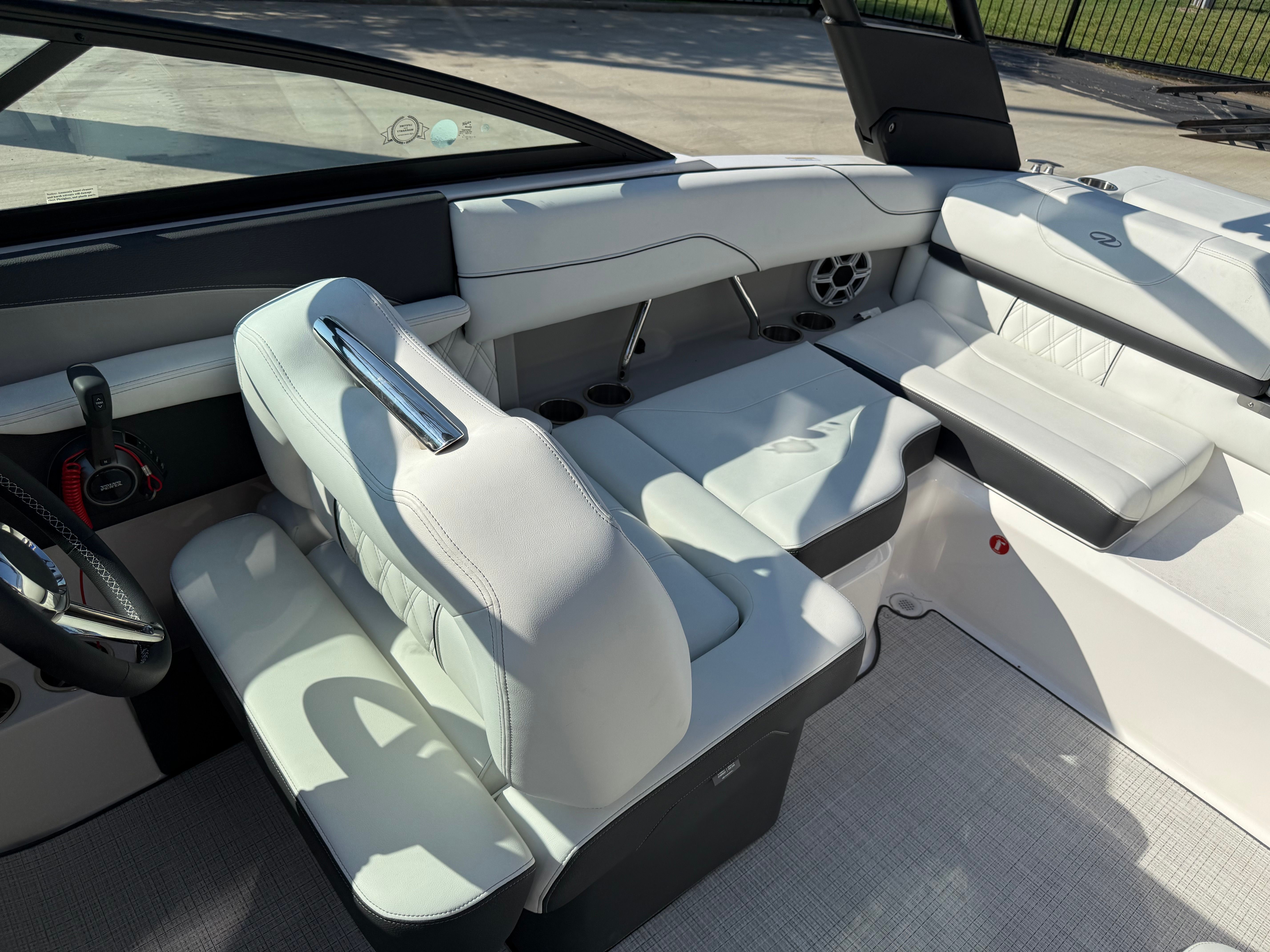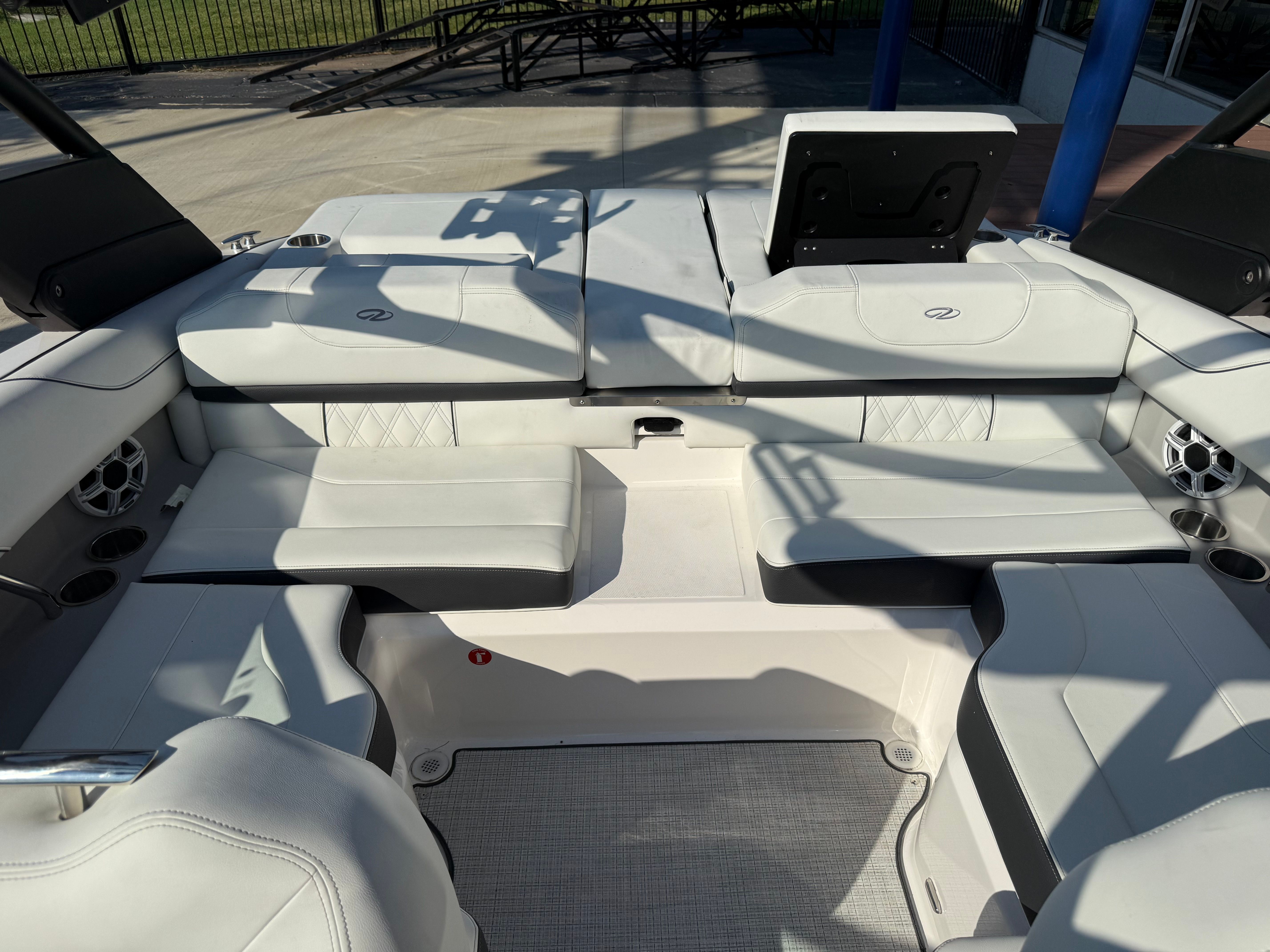 The Regal LS2 Surf is designed with practicality in mind, making ownership as enjoyable as the boating experience itself. The ample storage options throughout the boat provide plenty of space for gear, water toys, and personal belongings, keeping the deck clutter-free and organized. The forward drive system not only enhances performance but also simplifies docking and maneuvering in tight spaces. The dual battery system ensures you have reliable power for extended outings, while the durable travel cover and canvas protect your investment from the elements. The SeaDek Swim Platform and Seagrass Mat add both comfort and safety, making it easy to transition from water to deck and vice versa.