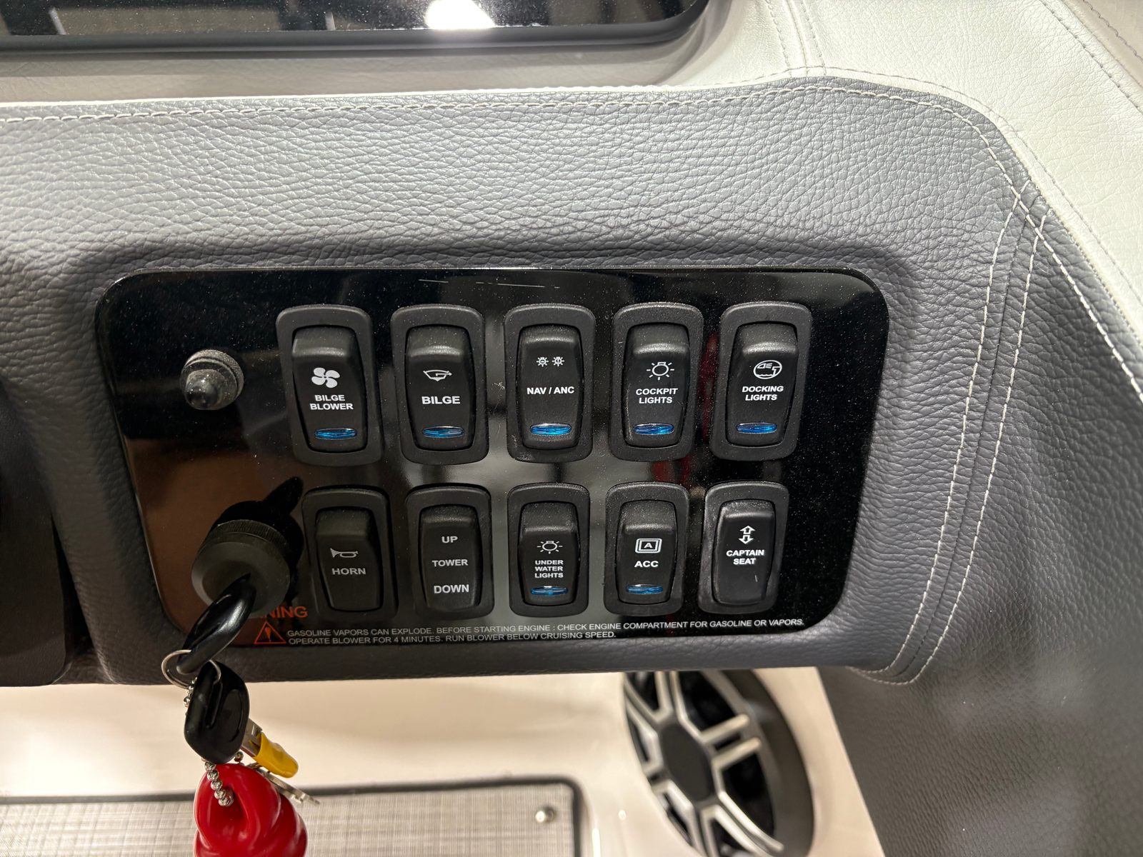 The 2026 Regal LS4 comes equipped with a range of special features designed to enhance your time on the water. The striking exterior is finished in a sophisticated palette of Black, Graphite, Tahiti Beach White, and Titanium, giving the boat a modern and elegant appearance that stands out at any marina. The included travel storage cover in Black ensures your investment is protected from the elements when not in use, while the Black canvas adds a touch of style and durability.Step aboard and you will find a cockpit adorned with a Seagrass Mat, providing both comfort and a touch of luxury underfoot. The dual battery switch with tray and cables offers peace of mind, ensuring reliable power management for all your onboard systems. Docking lights are thoughtfully integrated, making evening arrivals and departures safer and more convenient.