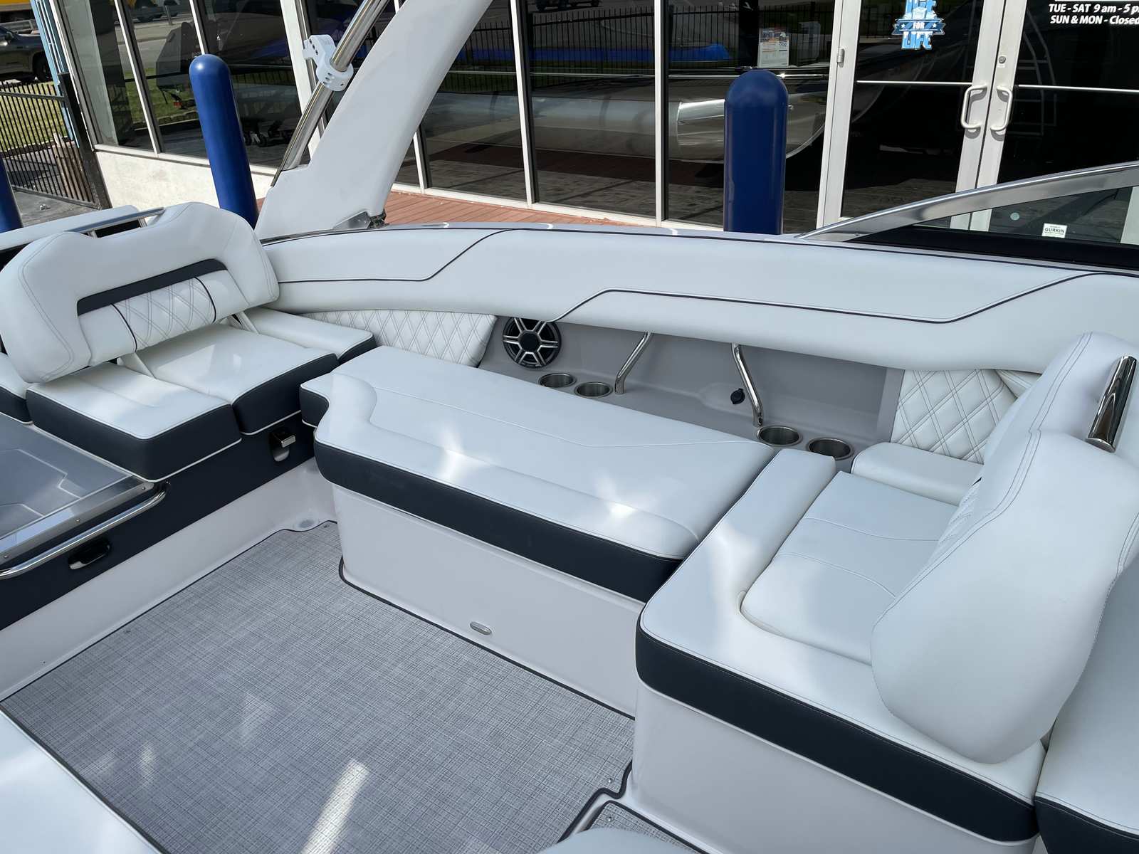 Owning the Regal LS6 Surf means embracing a lifestyle of fun, relaxation, and connection. The spacious bowrider layout offers plenty of room for family and friends, making it easy to host gatherings, celebrate special occasions, or simply enjoy a day on the water. The plush seating and thoughtful design details create an inviting atmosphere, while the advanced engine and hull design promise excitement for watersports lovers. The SeaDek swim platform and cockpit seagrass mat enhance comfort and safety, allowing everyone to move freely and enjoy every moment. With its eye-catching color scheme and premium finishes, the LS6 Surf is as stylish as it is functional, ensuring you make a statement wherever you go.