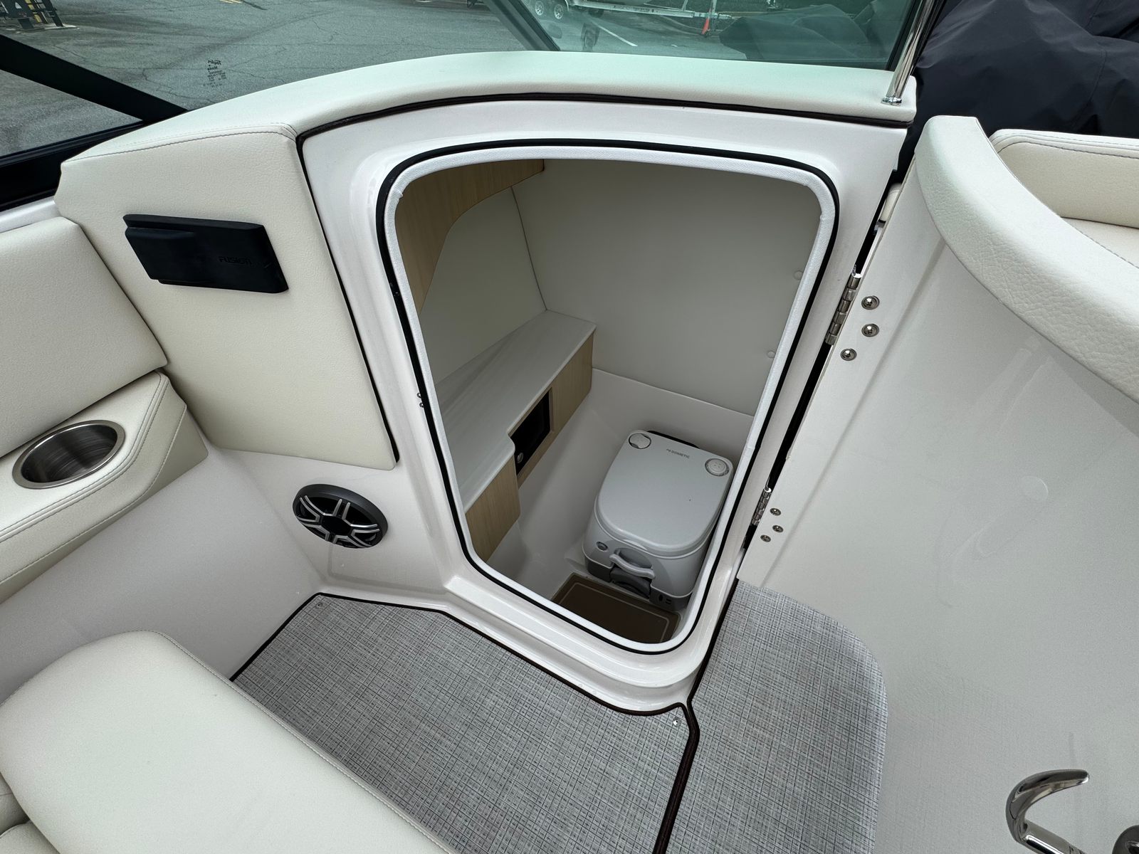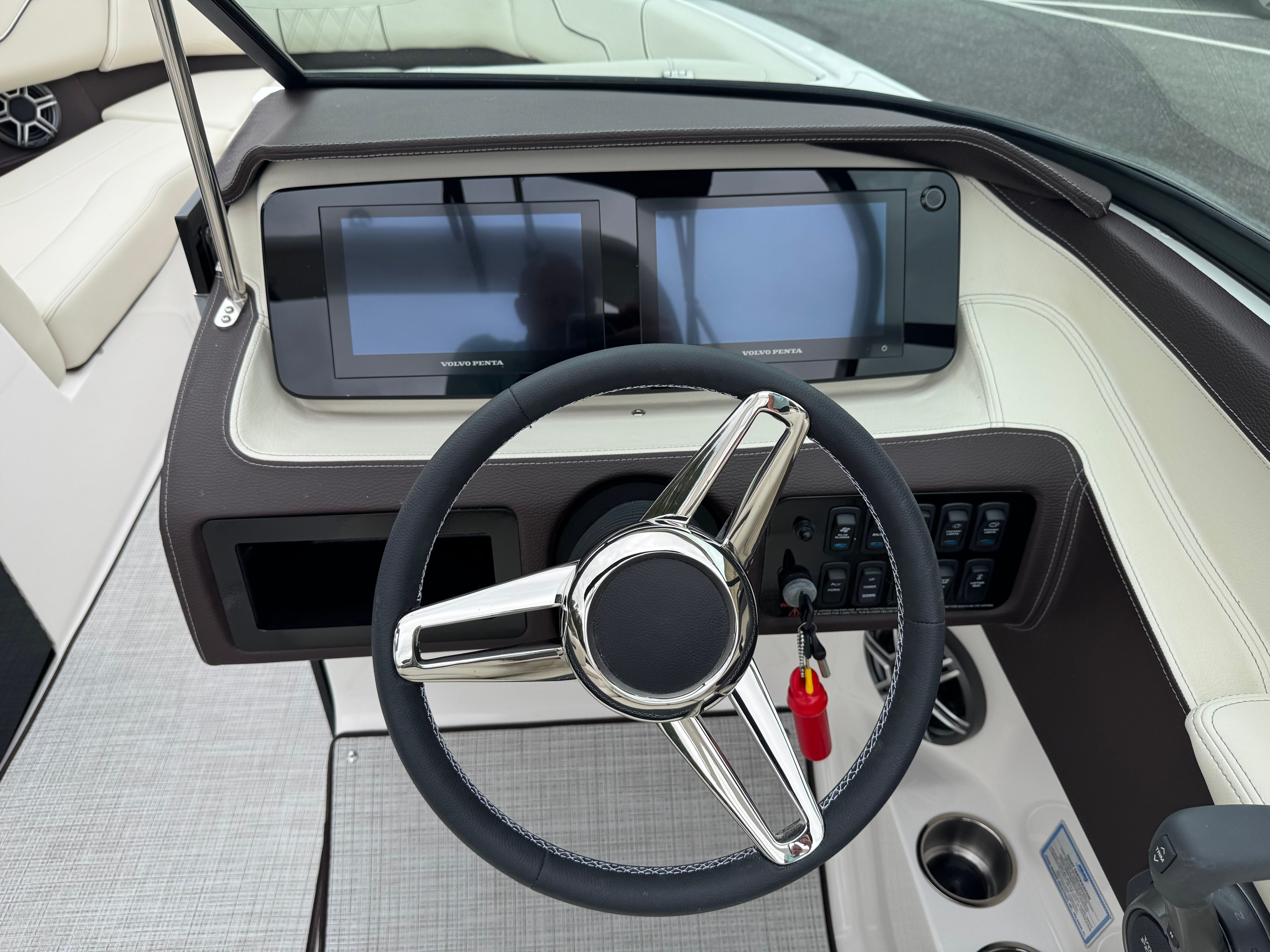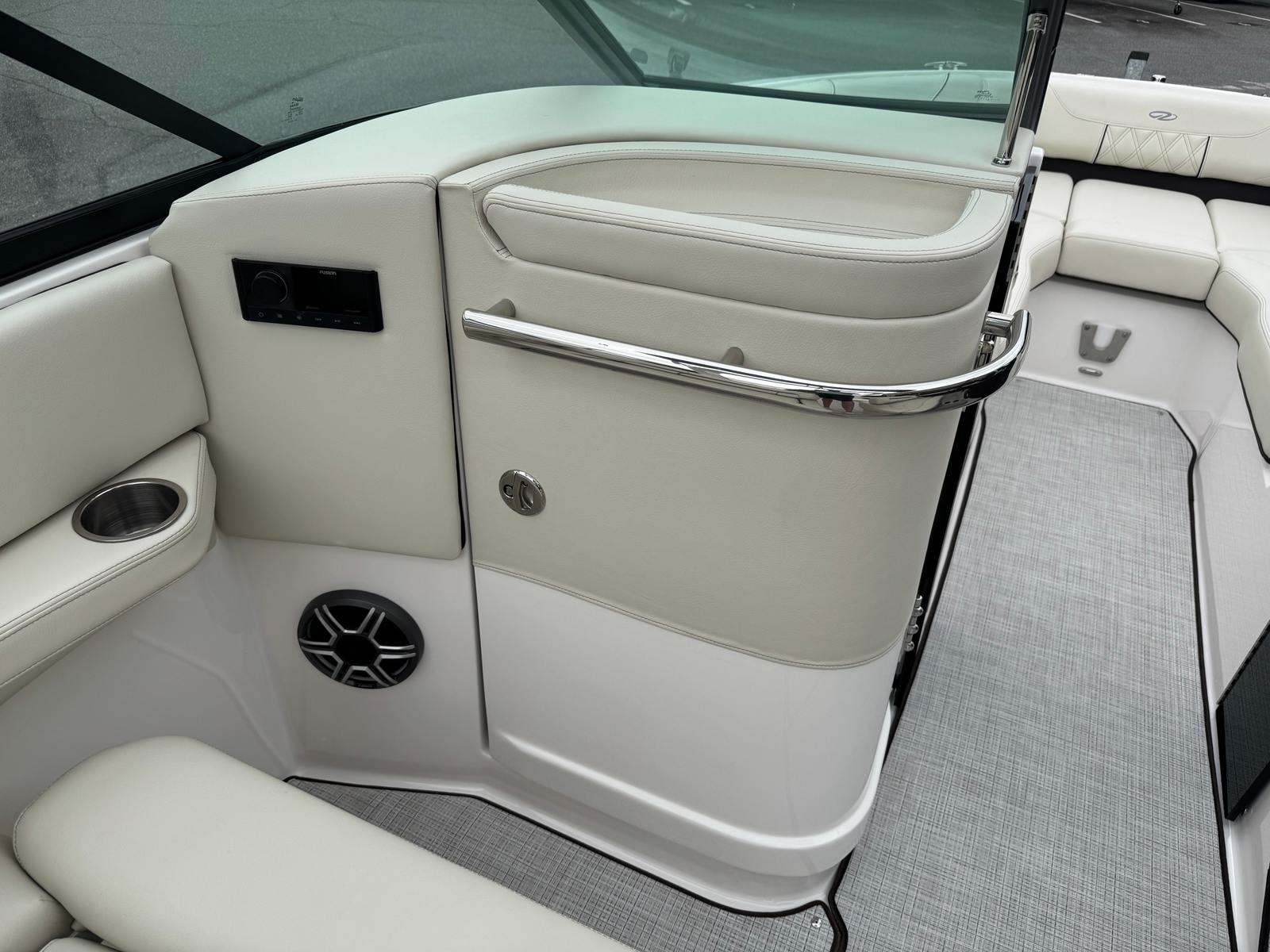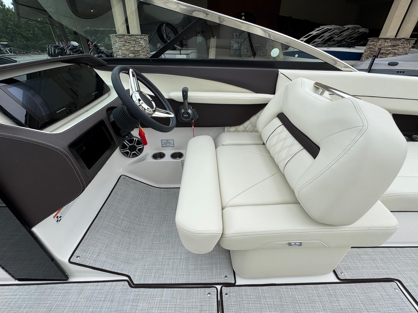 The Regal LS6 Bowrider is as practical as it is luxurious. Its generous length provides ample storage for gear, water toys, and personal items, keeping the deck clutter-free and organized. The PowerTower makes docking and storing the boat easier, while the dual battery system ensures you have reliable power for extended outings. The efficient Volvo V8 engine offers excellent fuel economy, so you can spend more time enjoying the water and less time refueling.The Cockpit Seagrass Mat not only adds comfort but is also easy to clean, making maintenance a breeze. The boat’s thoughtful layout allows for easy movement and access to all areas, so you can focus on having fun without worrying about logistics. Whether you’re planning a day trip or a weekend adventure, the LS6 is equipped to handle your needs with style and ease.