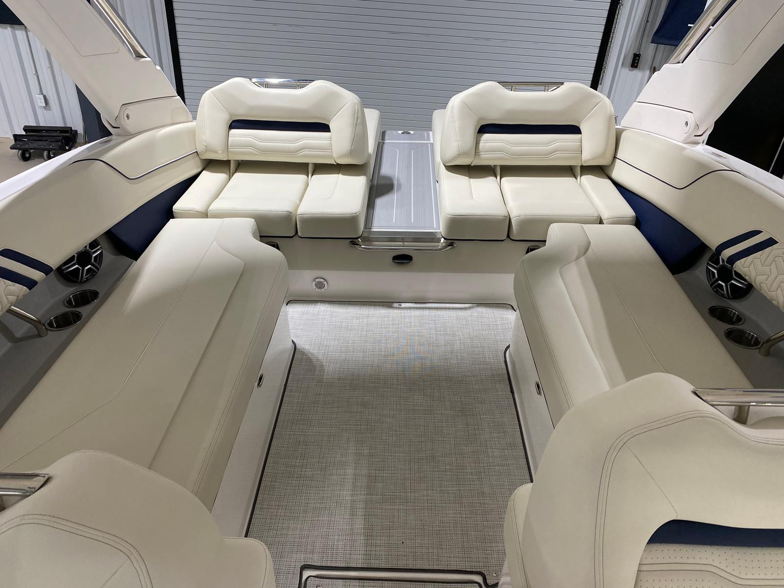 The 2026 Regal LS6 is packed with features that enhance both its appearance and functionality. The hull side in Steel Gray, complemented by the Tahiti Beach White bootstripe and Mediterranean Blue hull bottom, creates a striking visual impression. The white swim platform provides a convenient and stylish entry point for swimming, lounging, or water sports activities. The interior zones—Zone 1, Zone 2, and Zone 3—are finished in Vista White, offering a clean and inviting atmosphere, while Zones 4 and 5 feature Mediterranean Blue - Chil accents for a touch of sophistication. These carefully selected color combinations not only elevate the boat’s aesthetic appeal but also create a relaxing and enjoyable environment for all on board.