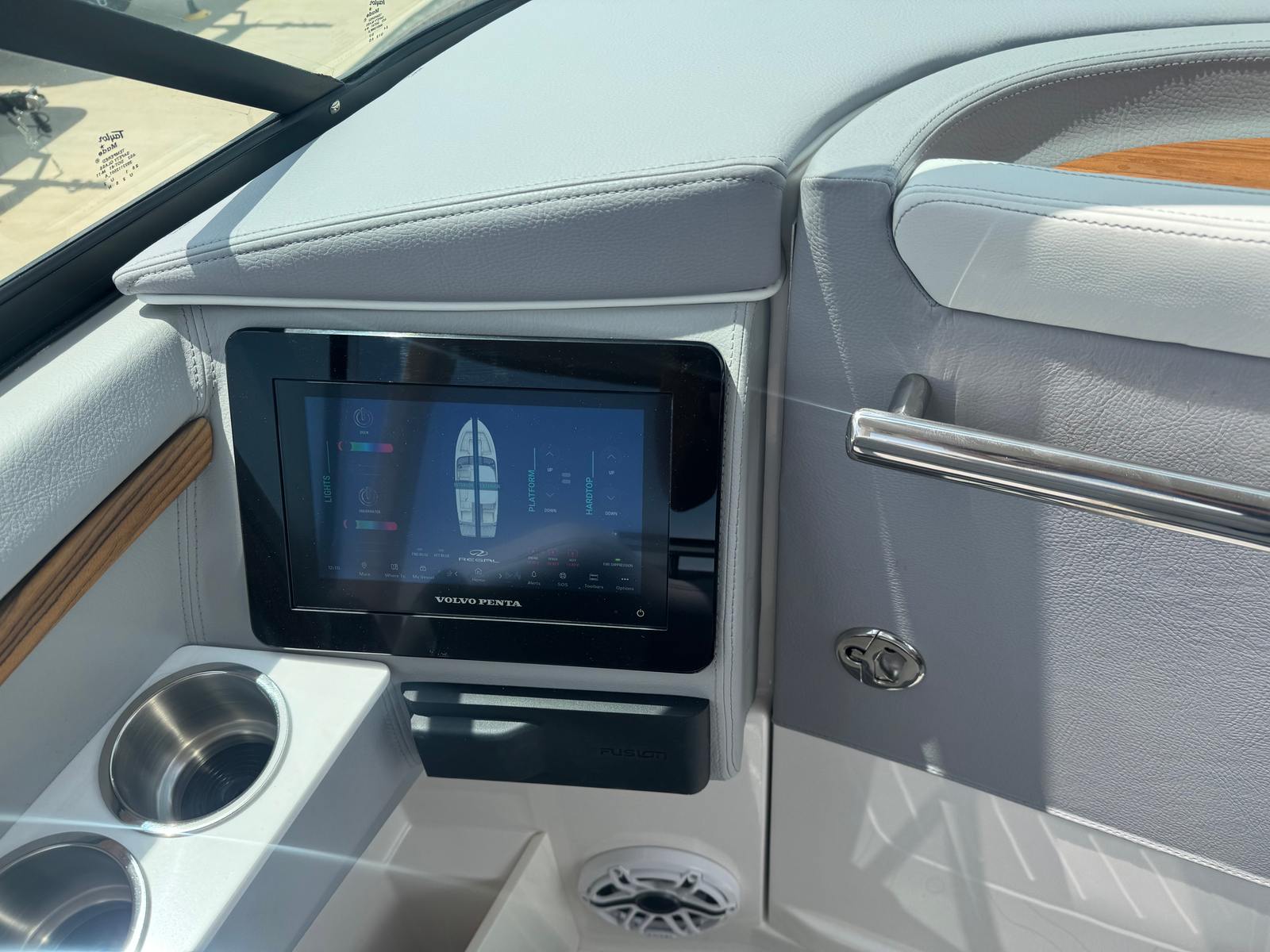 The Regal LS9 Surf is loaded with features designed to maximize your enjoyment on the water. The Volvo V8 430 FWD EVC2 DP CAT engine is the centerpiece of its performance, offering both power and efficiency. The hull’s Steel Grey color, paired with the Tahiti Beach White bootstripe and bottom, gives the boat a distinctive and elegant look. Inside, the combination of Lunar Grey - Chil, Graphite - Chil, and Pure White materials creates a luxurious and comfortable environment for passengers. Every detail, from the upholstery to the finishes, reflects Regal’s dedication to quality and style.