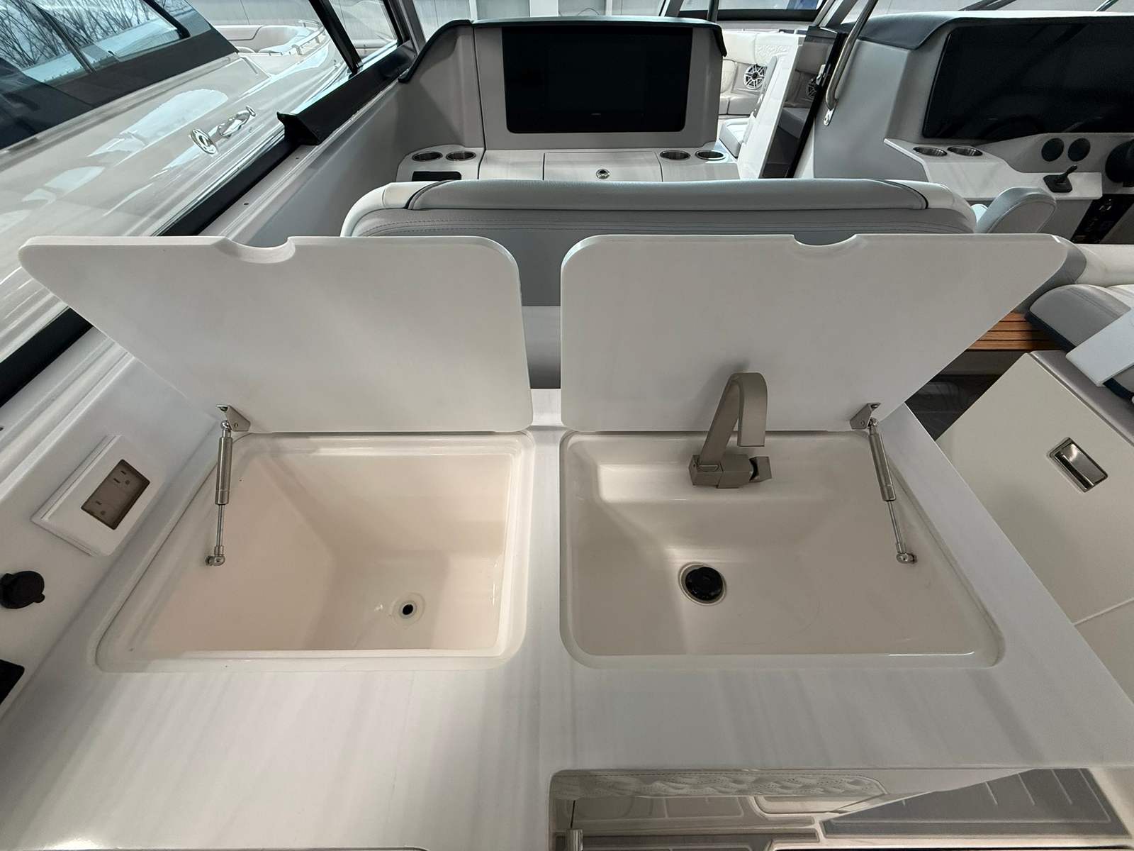 Owning the Regal LX36 bowrider is about more than just having a boat—it’s about embracing a lifestyle of fun, relaxation, and adventure. The spacious layout offers ample seating and room to move, making it ideal for socializing, sunbathing, or simply enjoying the view. The luxurious finishes and thoughtful amenities create an inviting atmosphere, whether you are hosting a lively gathering or seeking a peaceful retreat on the water.The advanced features of the LX36 not only enhance comfort but also provide peace of mind. The Palm Beach Enclosure keeps you protected from unexpected weather changes, while the Bow Thruster and Anchor Windlass simplify handling and anchoring, allowing you to focus on enjoying your time on board. The cockpit refrigerator and teak table make entertaining effortless, ensuring every outing is memorable.