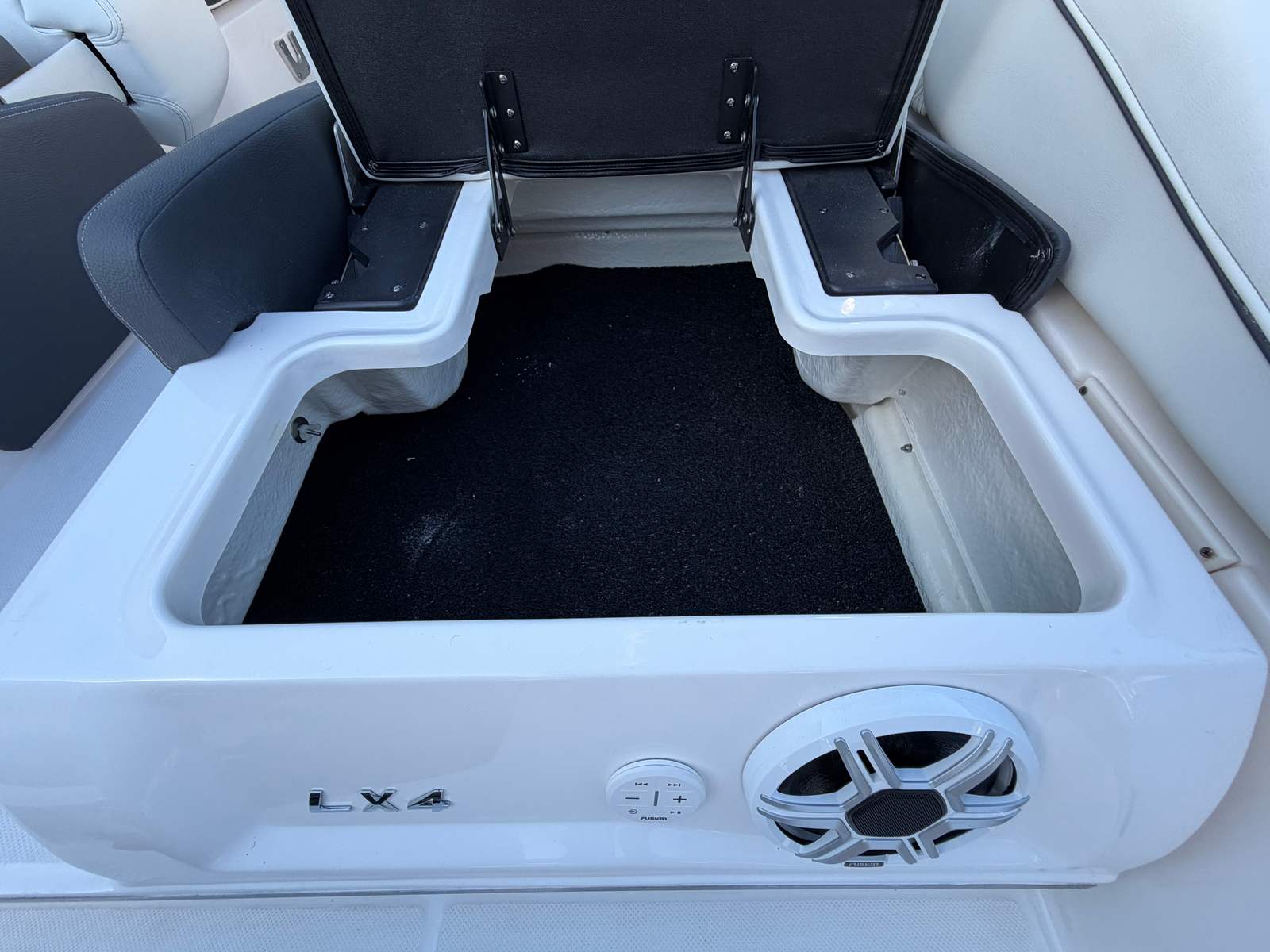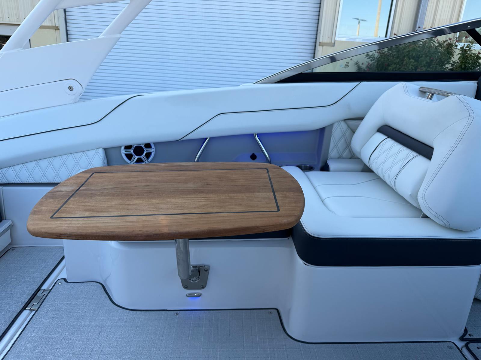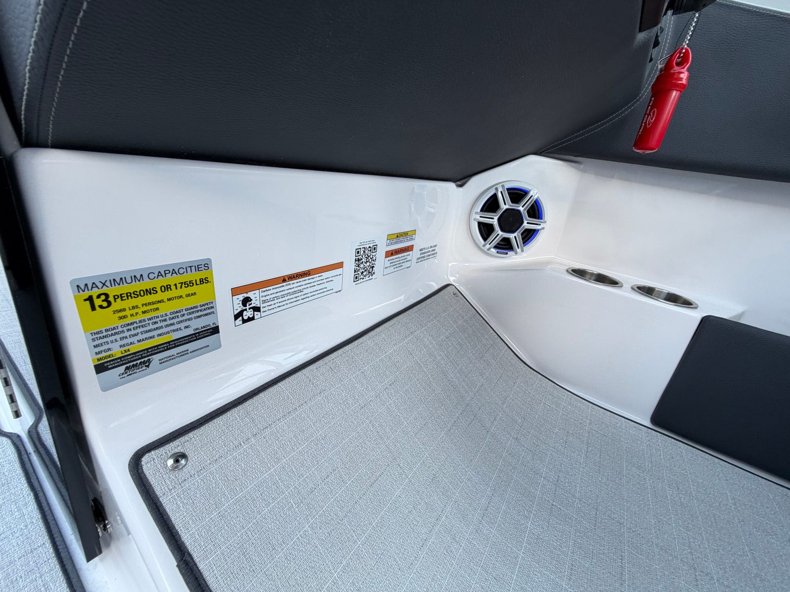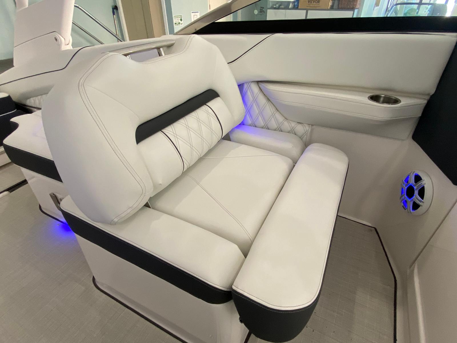 The Regal LX4 is packed with special features that set it apart from other Bowrider boats for sale. The bow thruster provides superior control, allowing you to navigate with confidence in crowded marinas or challenging conditions. Underwater lighting in vibrant blue adds a touch of elegance and creates a captivating ambiance for evening cruises. The port light—half moon design—brings natural light into the cabin, enhancing the overall atmosphere and comfort.A dedicated head compartment offers convenience for longer outings, ensuring that you and your guests can enjoy extended time on the water without sacrificing comfort. The dual battery switch with tray and cables ensures reliable power management, so you can focus on fun without worrying about electrical issues. The stainless steel upgrade package adds durability and a polished look to key hardware and fittings, while the Mediterranean Blue hull color turns heads wherever you go.Bow walk-thru doors make moving between the cockpit and bow safe and easy, while fender clips simplify docking and protect your investment. The cockpit seagrass mat provides a soft, stylish surface underfoot, enhancing both comfort and aesthetics.